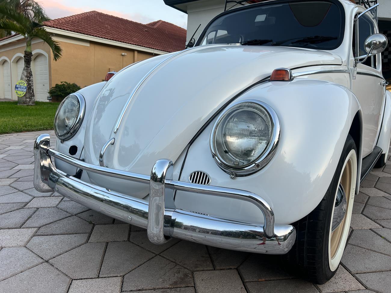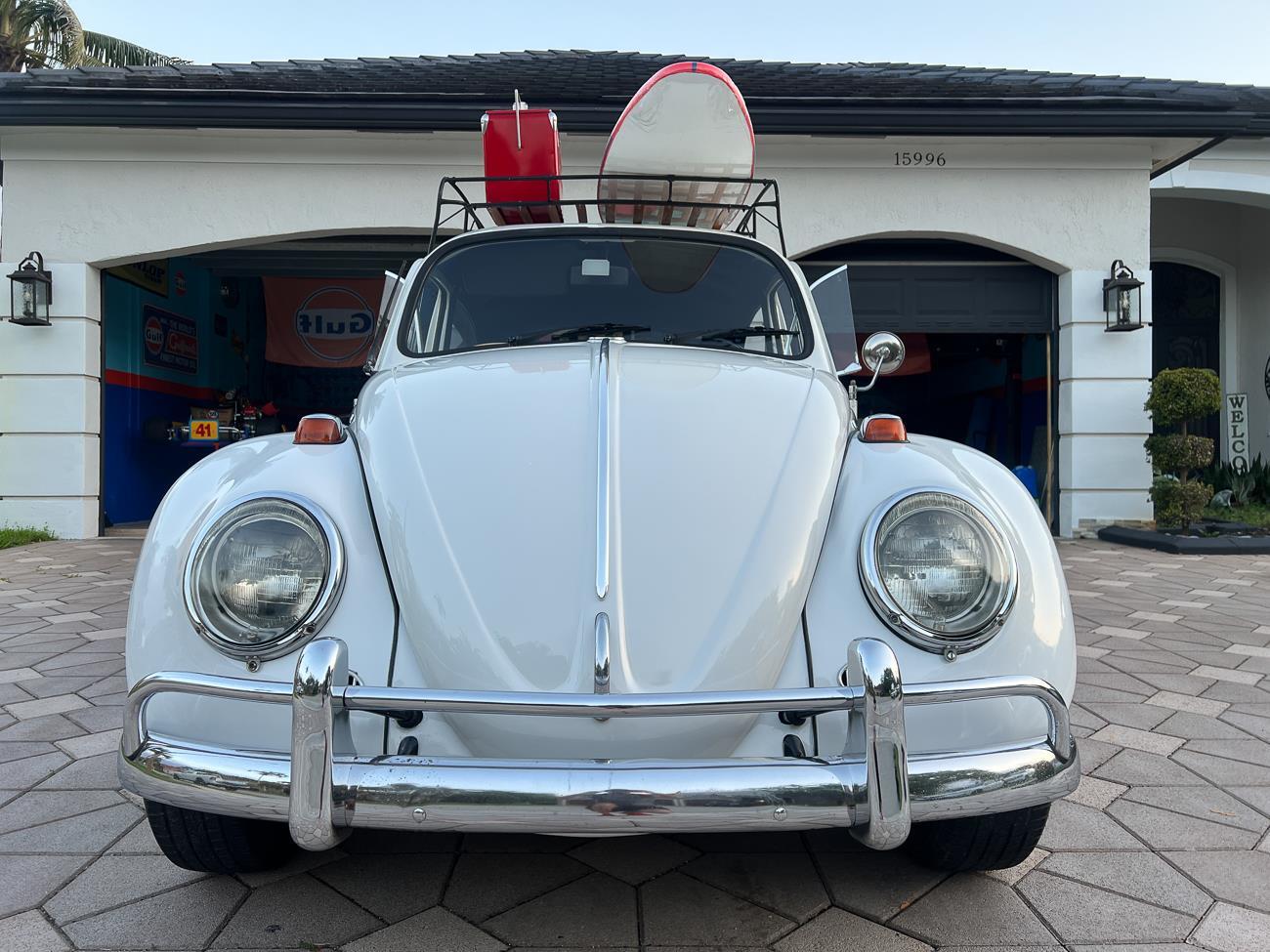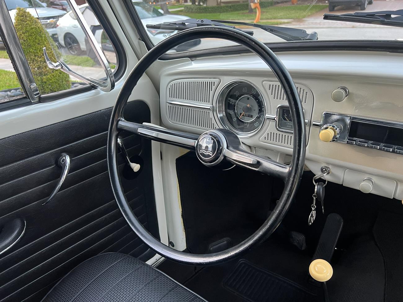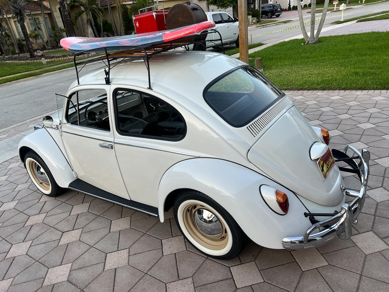 Call me 305-542-5662. Up for sale is my 1965 VW Beetle! German car. Finished in white with black interior! Roof rack! The beetle did receive a restoration by its previous owner, It drives well, you can take it to the car shows & for weekend cruises. Definitely gets a lot of attention & questions at the cars and coffee. The Beetle is powered by it's 1600cc engine, air cooled, It moves pretty good! It has a 4 speed manual transmission. Has a nice exhaust that sounds really nice. See the video. It has always been garage kept and well taken care. All the exterior chromes, trim, latches, bumperettes are all good. Underneath the floor pans are in great shape, everything was properly restored and looks good! It was fitted with steel wheels with chrome hubcaps and white wall, looks good.