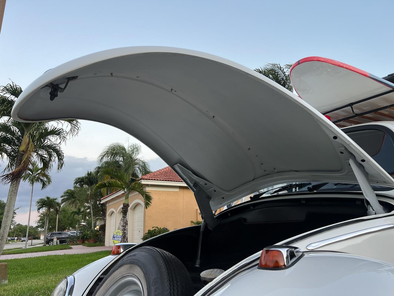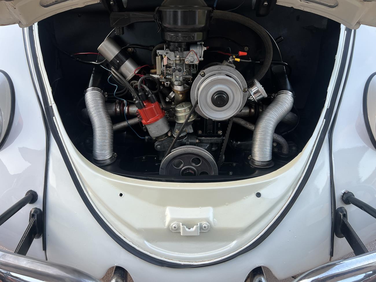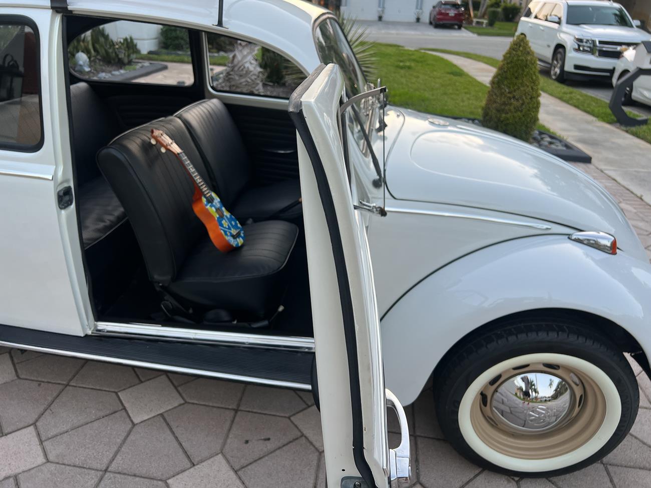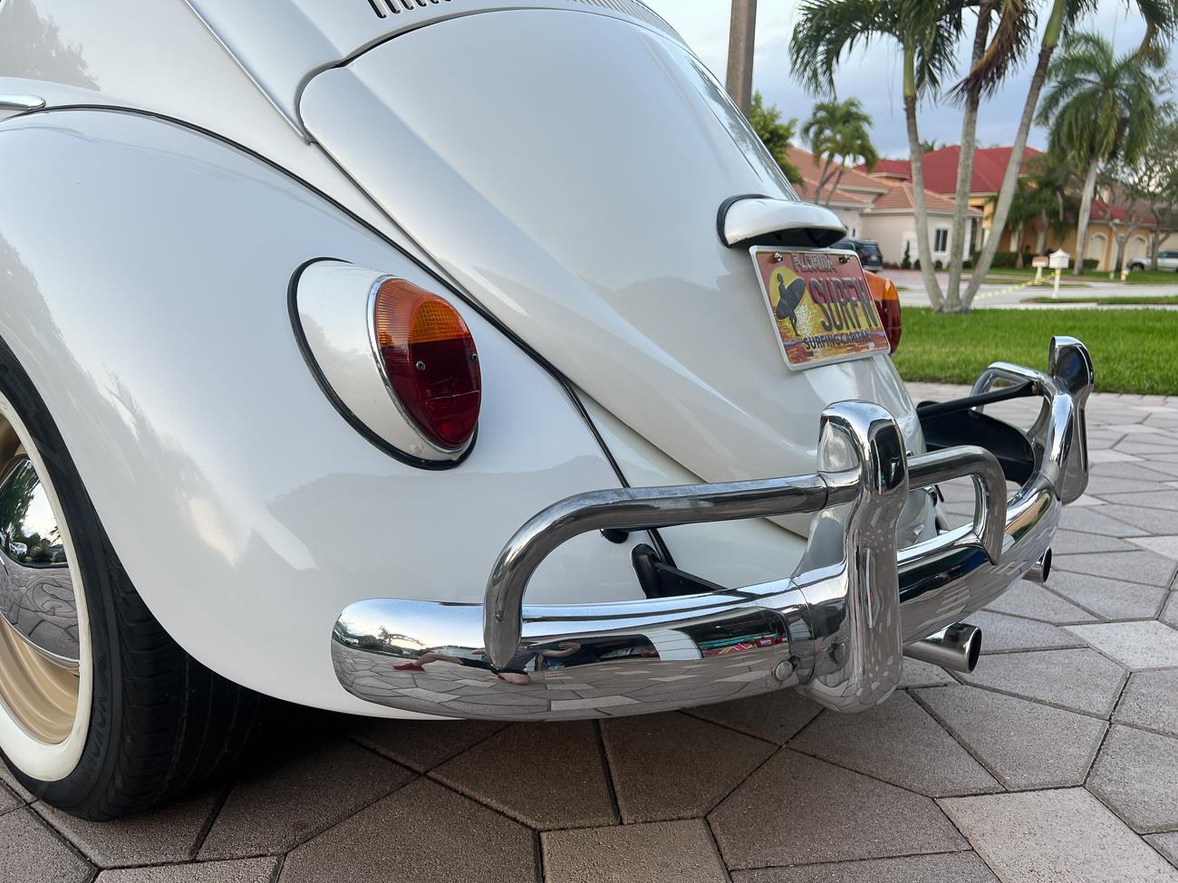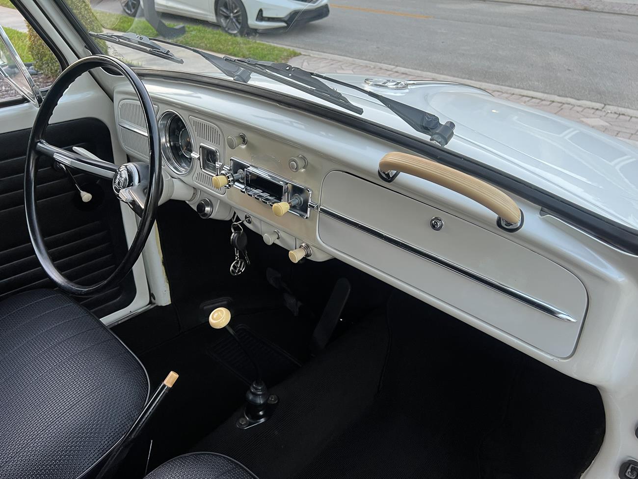 Call me 305-542-5662. Up for sale is my 1965 VW Beetle! German car. Finished in white with black interior! Roof rack! The beetle did receive a restoration by its previous owner, It drives well, you can take it to the car shows & for weekend cruises. Definitely gets a lot of attention & questions at the cars and coffee. The Beetle is powered by it's 1600cc engine, air cooled, It moves pretty good! It has a 4 speed manual transmission. Has a nice exhaust that sounds really nice. See the video. It has always been garage kept and well taken care. All the exterior chromes, trim, latches, bumperettes are all good. Underneath the floor pans are in great shape, everything was properly restored and looks good! It was fitted with steel wheels with chrome hubcaps and white wall, looks good.