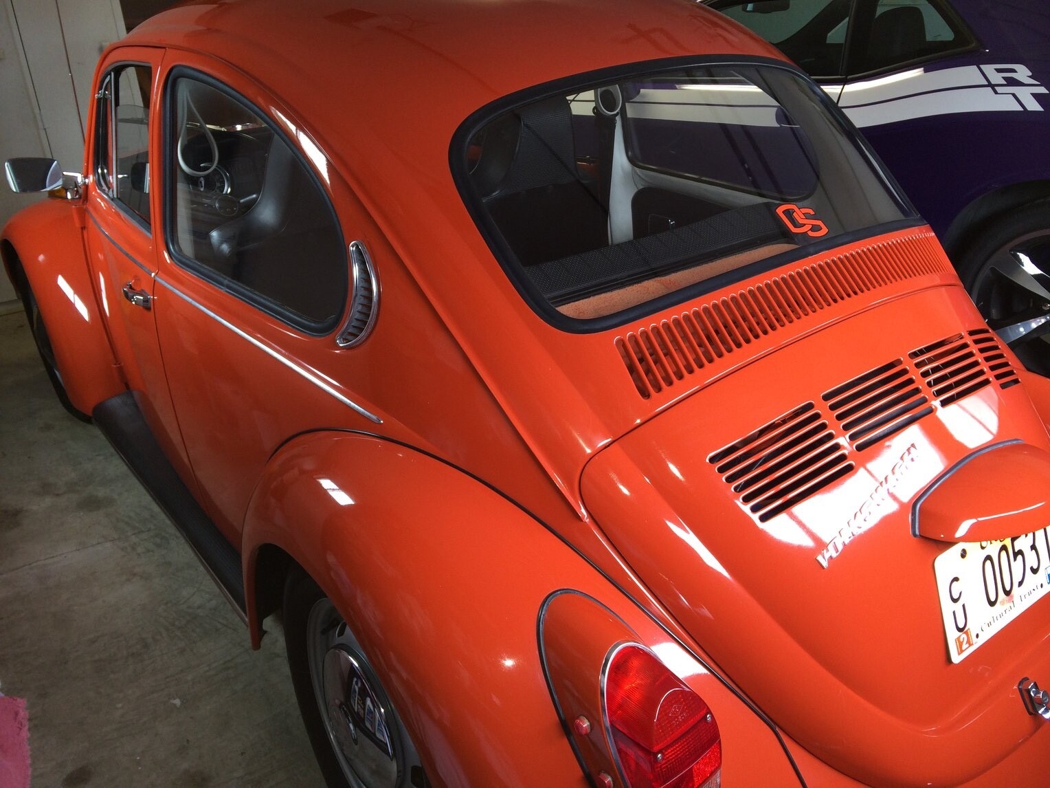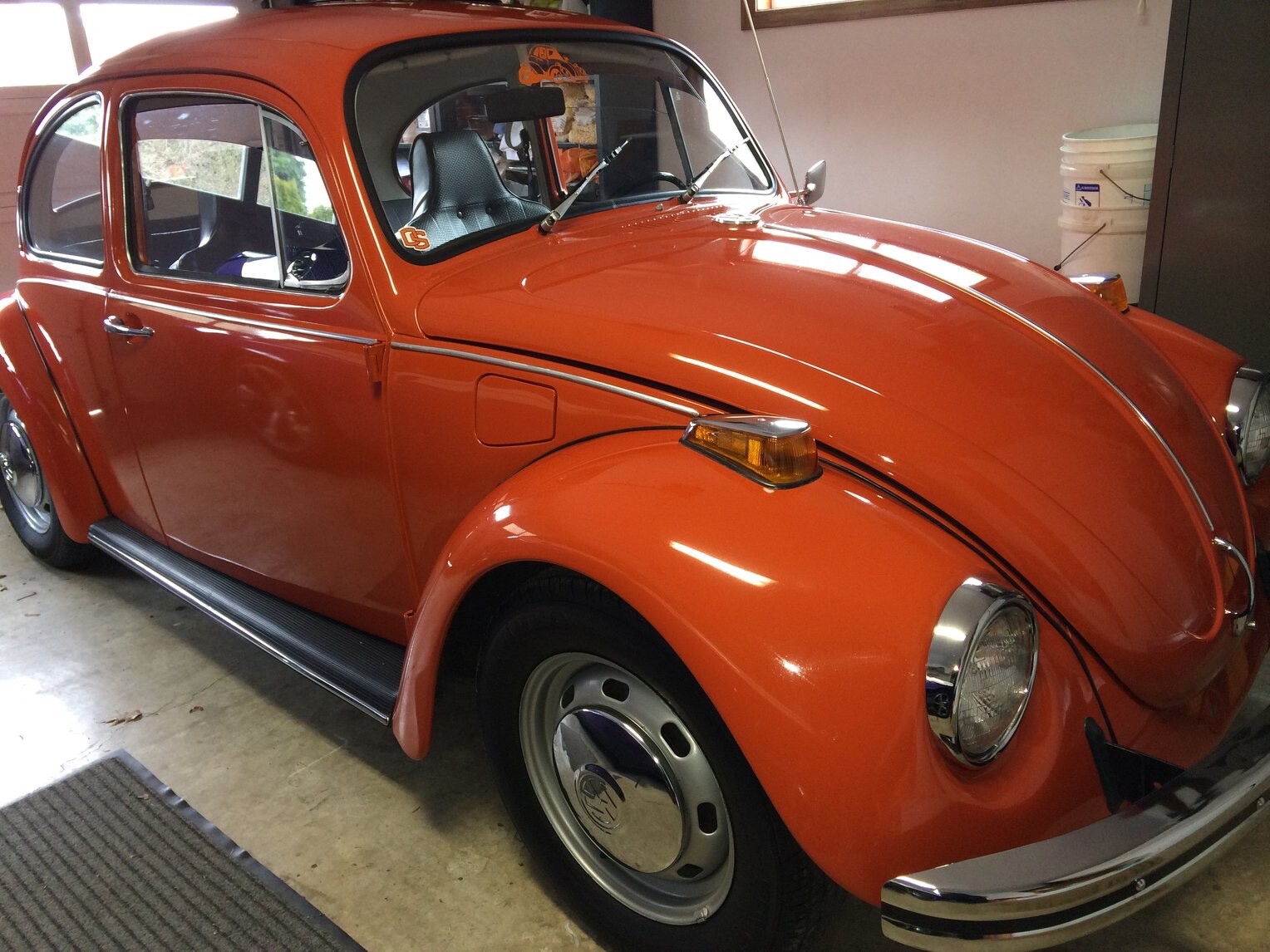 Here is a 1971 VW Beetle that we have owned since 1997. He is in fantastic condition & is all stock except the stereo! Dual port 1600cc rebuilt about 18,000 miles ago, along with transaxle. New everything over the years, like fuel tank, brakes, tires, shocks and much more. Original orange paint was touched up also with stock color. Stored in a heated garage with a cover & battery tender. Comes with many extras, including pumpkin magnet stencils for Halloween. Feel free to contact for more info!