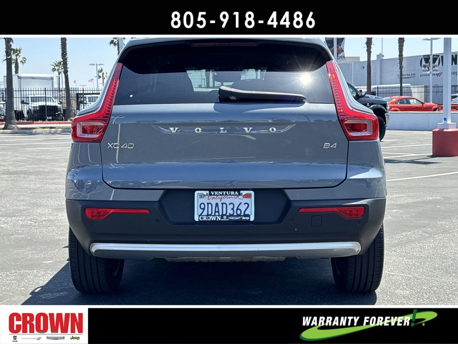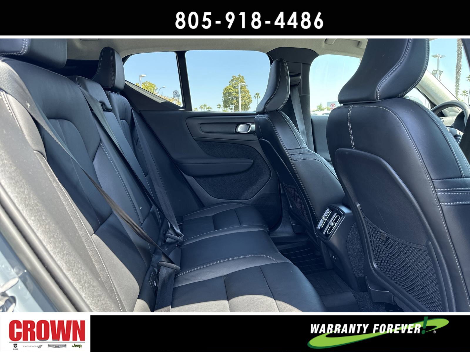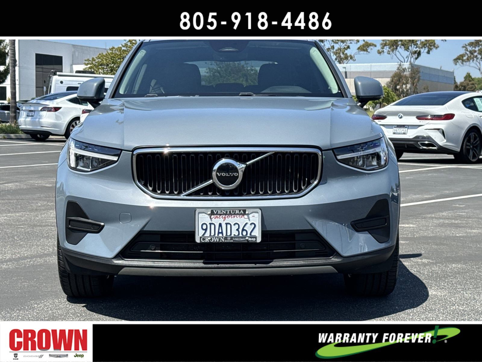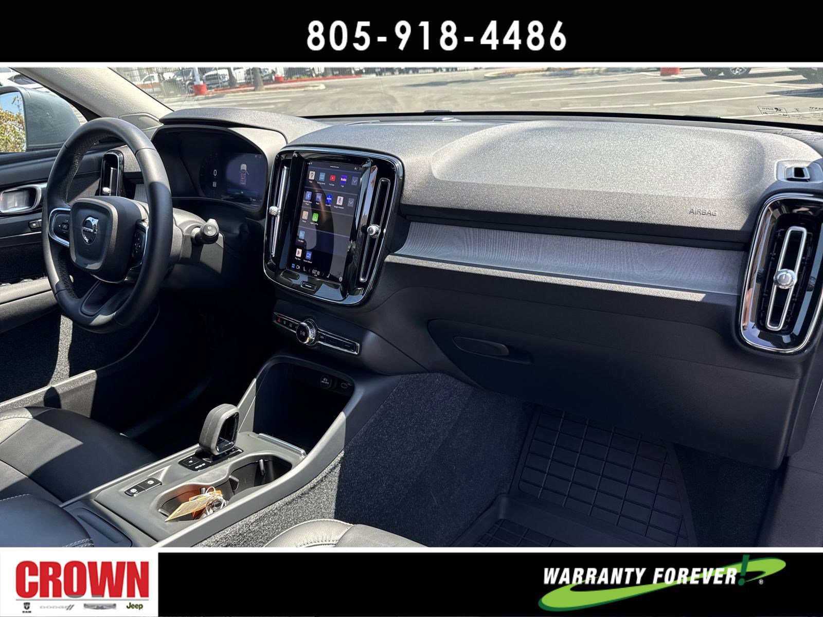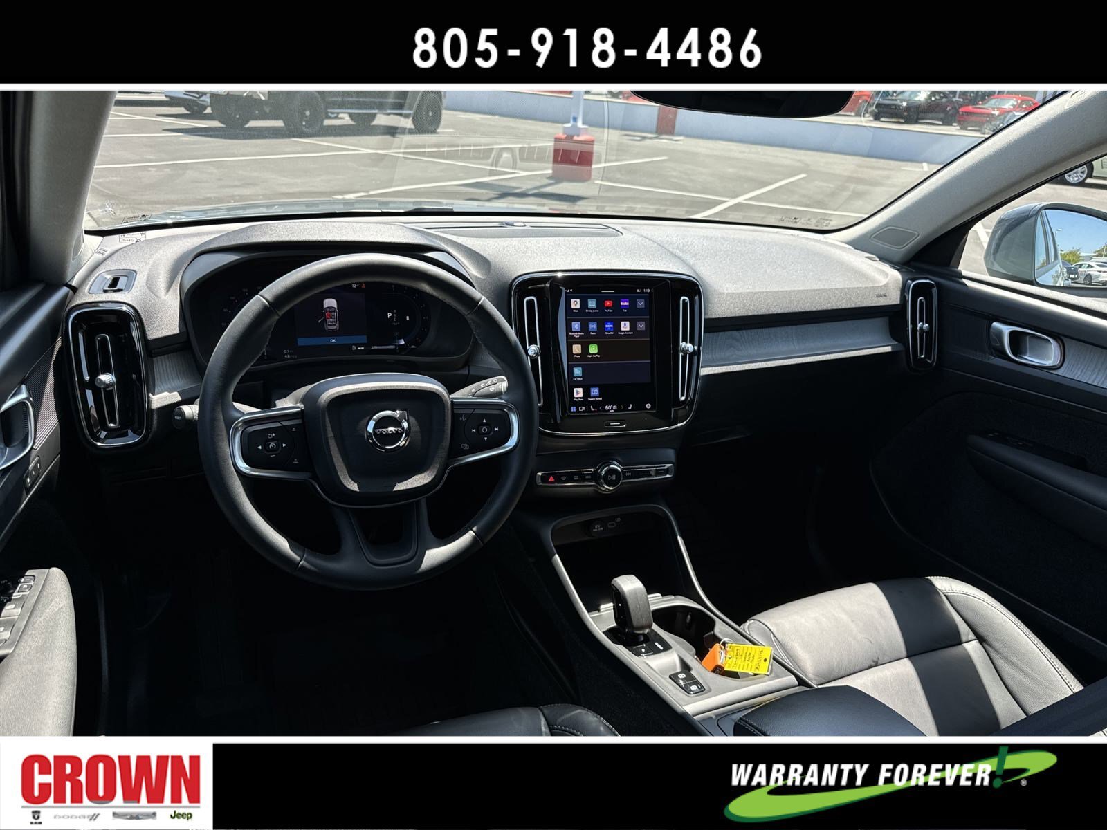 Thunder Gray Metallic 2023 Volvo XC40 B4 Core FWD Automatic with Geartronic 2.0L I4 Turbocharged DOHC 16V LEV3-ULEV70 ** 1 Owner Clean CarFax **, Under Factory Warranty, AM/FM radio: SiriusXM, Apple CarPlay, Automatic temperature control, City Block Textile Seating Surfaces, Convenience Package, Exterior Parking Camera Rear, Front dual zone A/C, Fully automatic headlights, Heated door mirrors, Heated front seats, HomeLink Garage Door Transmitter, Internet access capable: Digital Services Package w/ 4 Year Subscription, Keyless Entry & Drive w/Illuminated Door Handles, Memory seat, Navigation System, Power door mirrors, Power driver seat, Power Operated Tailgate, Power Passenger Seat, Premium audio system: Sensus Connect, Rear fog lights, Rear window defroster, Remote keyless entry, Security system, Split folding rear seat, Spoiler, Steering wheel mounted audio controls, Wheels: 18 5-Double Spoke Black Diamond Cut Alloy.Here at Crown Dodge Chrysler Jeep RAM, we believe that great service means more than just offering our new Dodge, Chrysler, Jeep, and RAM lineup. We believe that great service also includes helpful advice, friendly car financing, and the highest quality parts and repairs for your car. Our staff works hard to make your full automotive experience at our car dealership in Ventura, CA enjoyable, and we look forward to helping you today! All vehicles at Crown Dodge have our SWAT security system $995,Clear Shield $395, Pulse $395, Wheel Locks $395, Windshield Protection $995, Nitro Fill $499, Screen Protector $395 and $1295 Paint/Fabric Protection pre-installed. Prices on the website do not include dealer-added equipment. Discounts include $2,000 Trade-In Dealer Assist Cash. Must trade in a 2015 or newer vehicle on a retail purchase. Trade-in must have less than 15,000 miles on average per year stated on Carfax Report, clean title, and Clean vehicle history report. Expires 02/19/2024. Expires 02/29/2024.
