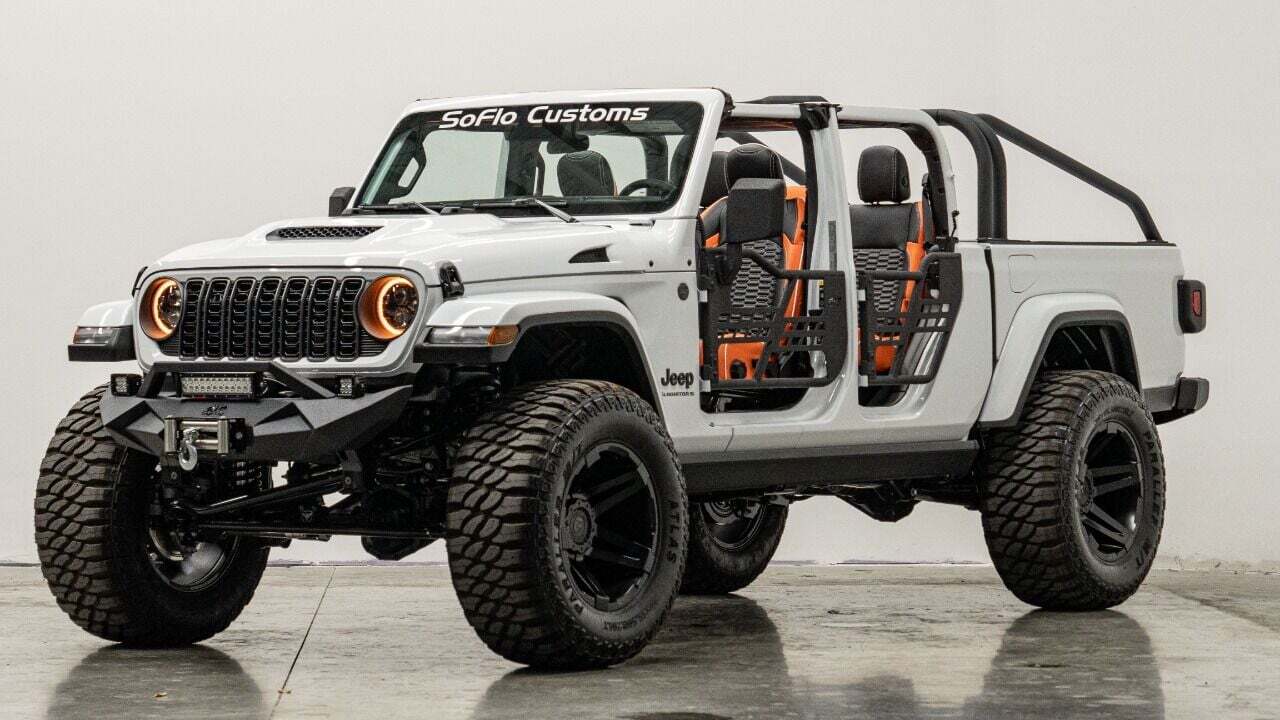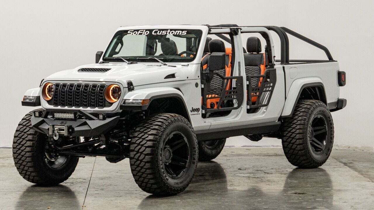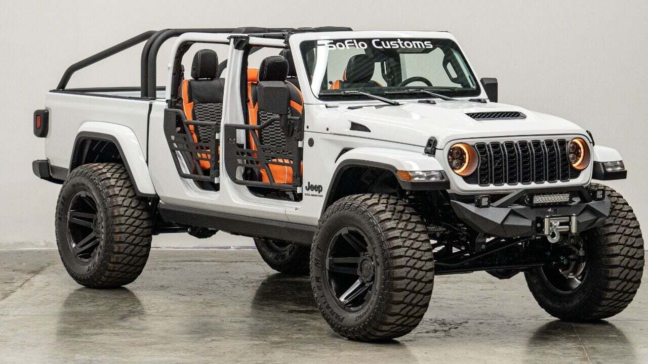 *****$3,000 PRICE DROP 6/1****** YEAR: 2024 COLOR: High Gloss White TRIM: SoFlo Custom LIFT: 4” TIRES: 38 RIMS: 20 Black SFJ HOOD: Raider BUMPER: SoFlo Stubby Steel with Winch SIDESTEPS: Steel HEADLIGHTS: 9” Halo SPECIAL FEATURES: Aluminum Rollcage Covered in Kevlar, Steel Rear Bumper WEATHERPROOF INTERIOR: Cheetos (Black and Orange) WHAT MAKES THIS TRUCK SPECIAL: 2023 Gladiator built to look awesome and drive even better. This beast comes with that insane Cheetos look that is sure to get attention. CALL US OR COME SEE THESE CUSTOM TRUCKS IN PERSON Location 1: 1430 W Broward, BLVD Fort Lauderdale, FL 33312 855-873-7632 Location 2: 2720 Okeechobee BLVD West Palm Beach, FL 33406 855-873-7632 NEW E-PURCHASE SYSTEM - Customers never have to leave the comfort of their home couch to purchase a SoFlo Jeeps or Apocalypse 6x6 truck. We offer online payment, financing and video walkarounds. We ship our trucks worldwide to any and every location. Have a trade-in? Not a problem at all, as WE ACCEPT TRADE-INS NATIONWIDE AND YOU NEVER PAY TO SHIP IT. We make buying and receiving your dream truck beyond simple. ****ALL PIPE DOORS ARE EXTRA AND NOT INCLUDED IN PRICE OF THE TRUCK**** ****ALL VEHICLES COME WITH ORGINAL FACTORY DOORS AND ROOF****