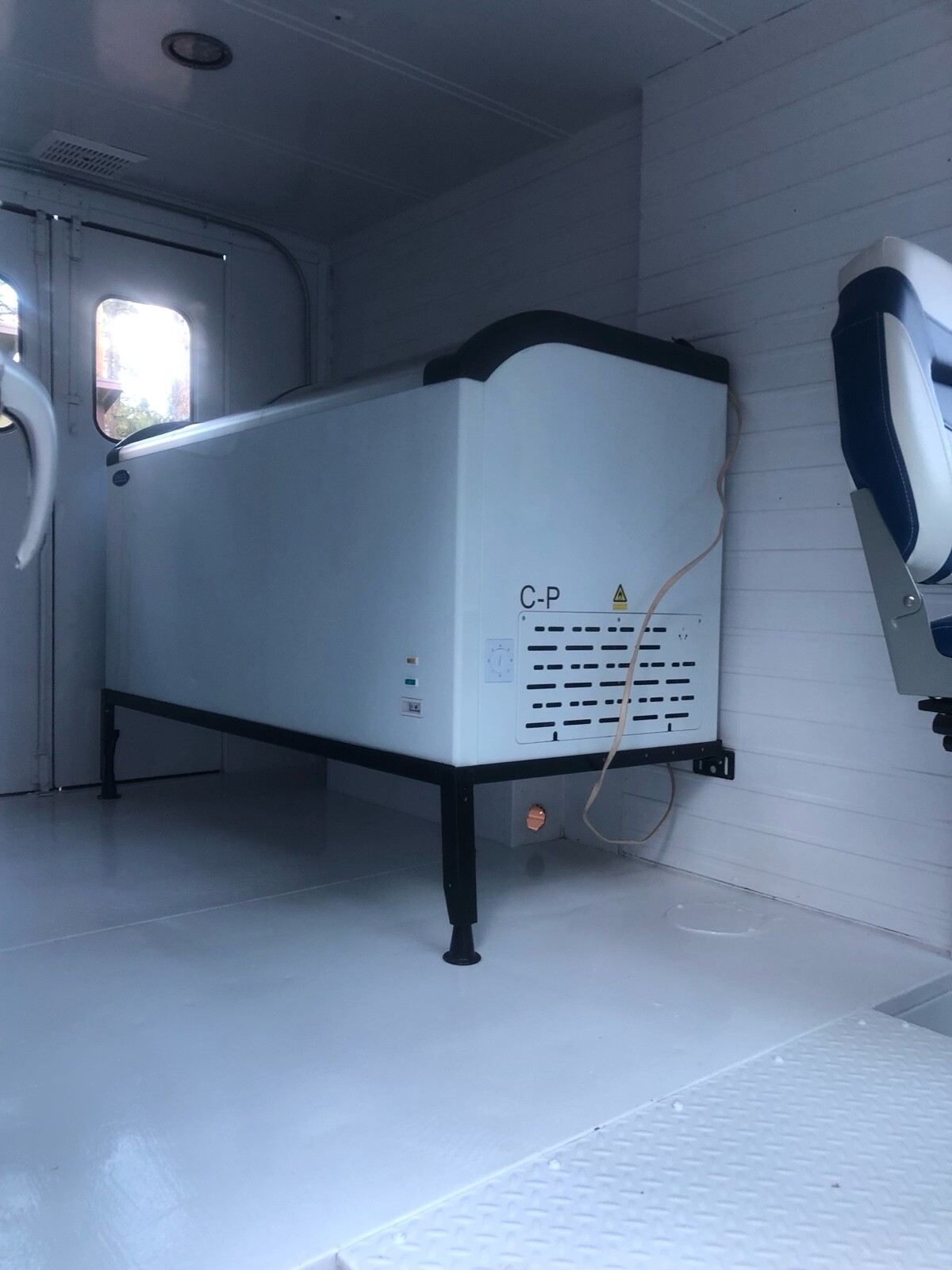 Interior newly restored and painted. New gauges,new 5ft glass top freezer. New driver seat.