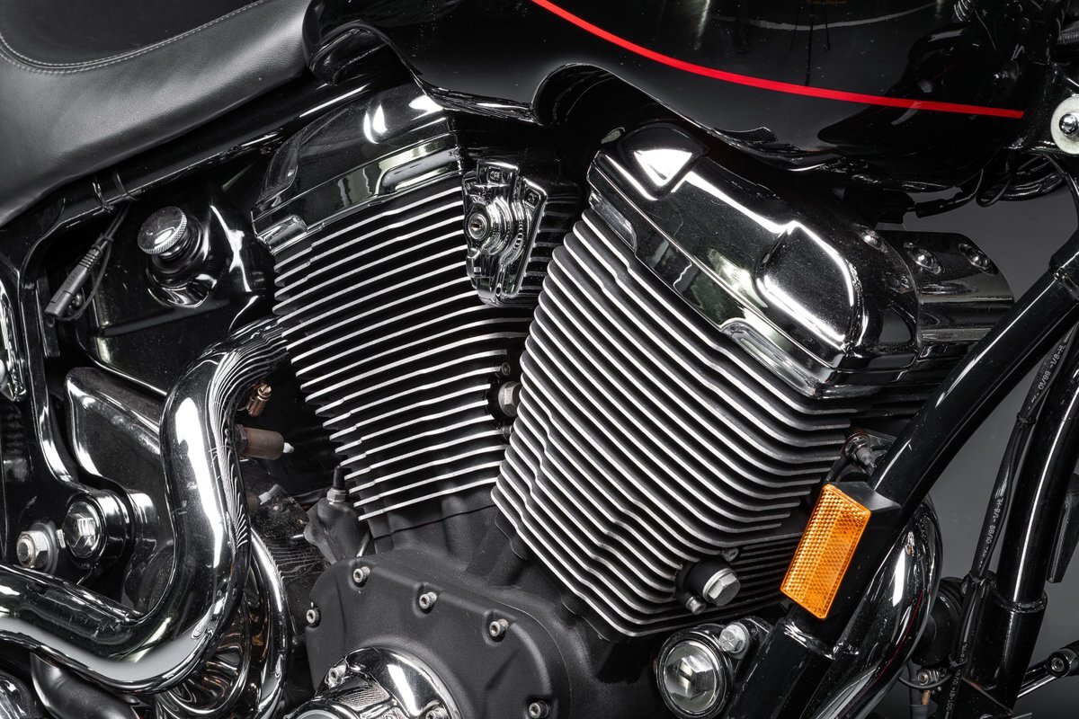 Jamie rebuilt the engine and improved the shifting of the 5-speed transmission by blueprinting the rotating components of the transmission and crankcase and installing premium parts. In addition, he has replaced the problematic wiring harness, updated the ECU with the latest software, and replaced the fuel tank, pump, and pressure regulator. The head has been blueprinted, the air filter has been replaced with a better design, and the intake manifold has been polished to produce a minimum of 73 hp. The bike also has wide white wall tube tires and a supplemental oil cooler installed around 2005. Recently, the bike has undergone an oil change, brake signal switch replacement, and new battery installation. With all the improvements made by Jamie over the years, the bike runs perfectly and undoubtedly rides and drives better than it did when it was new.