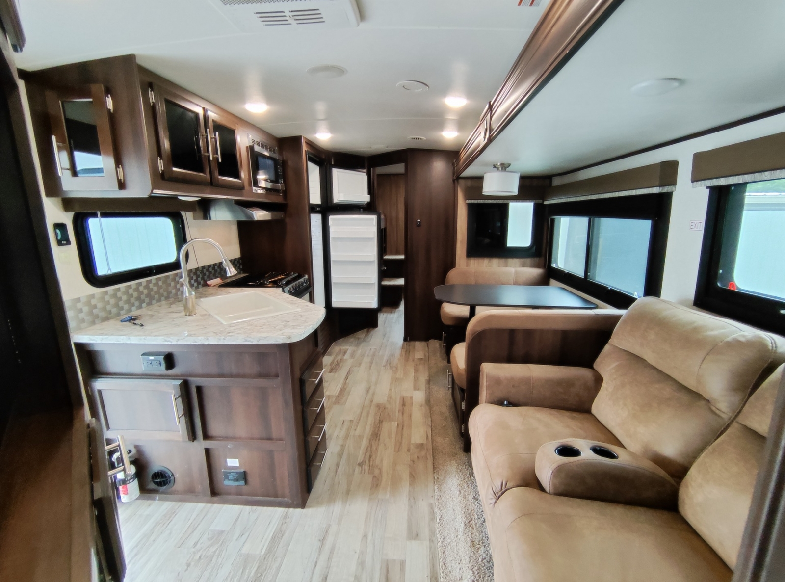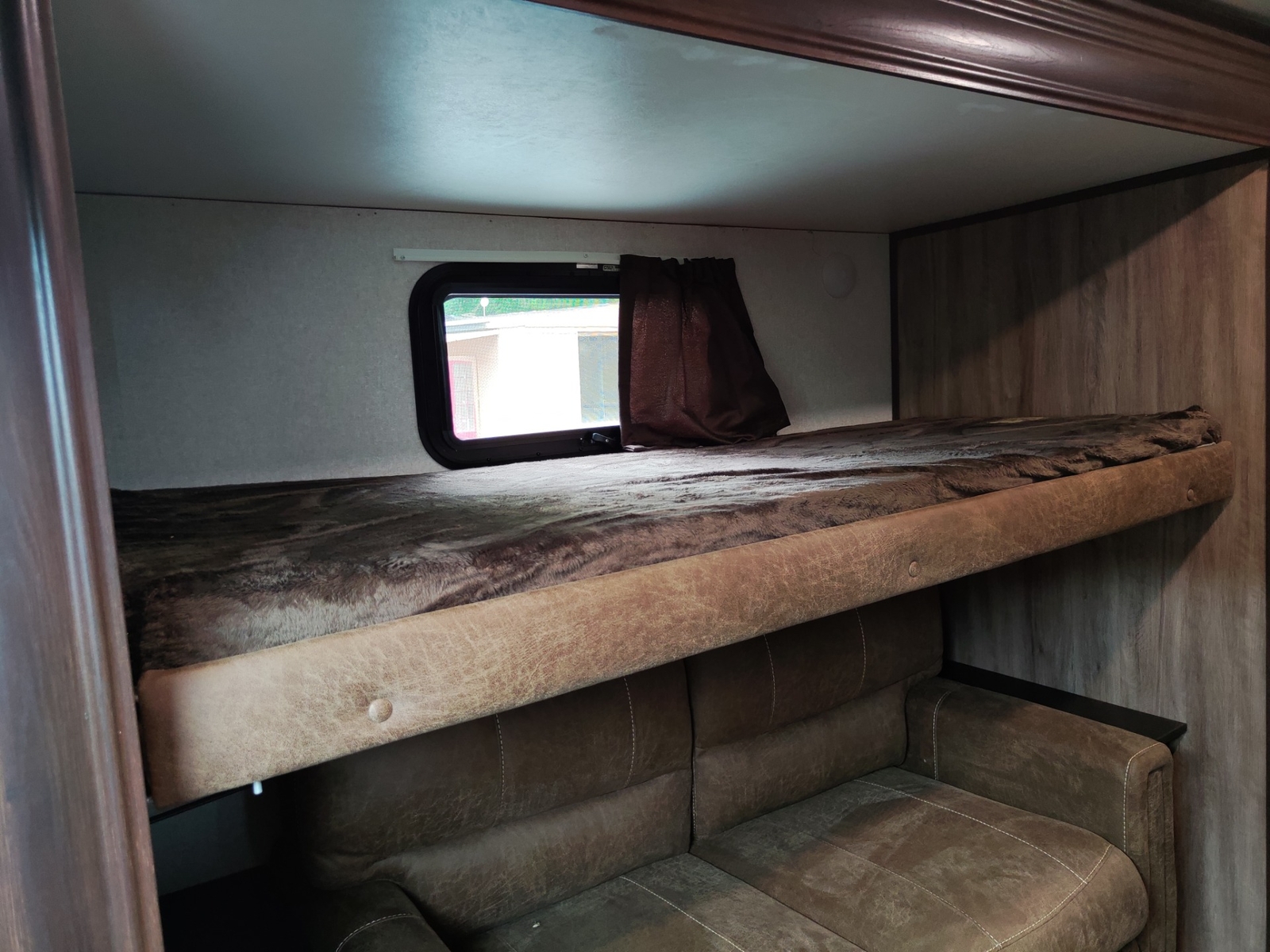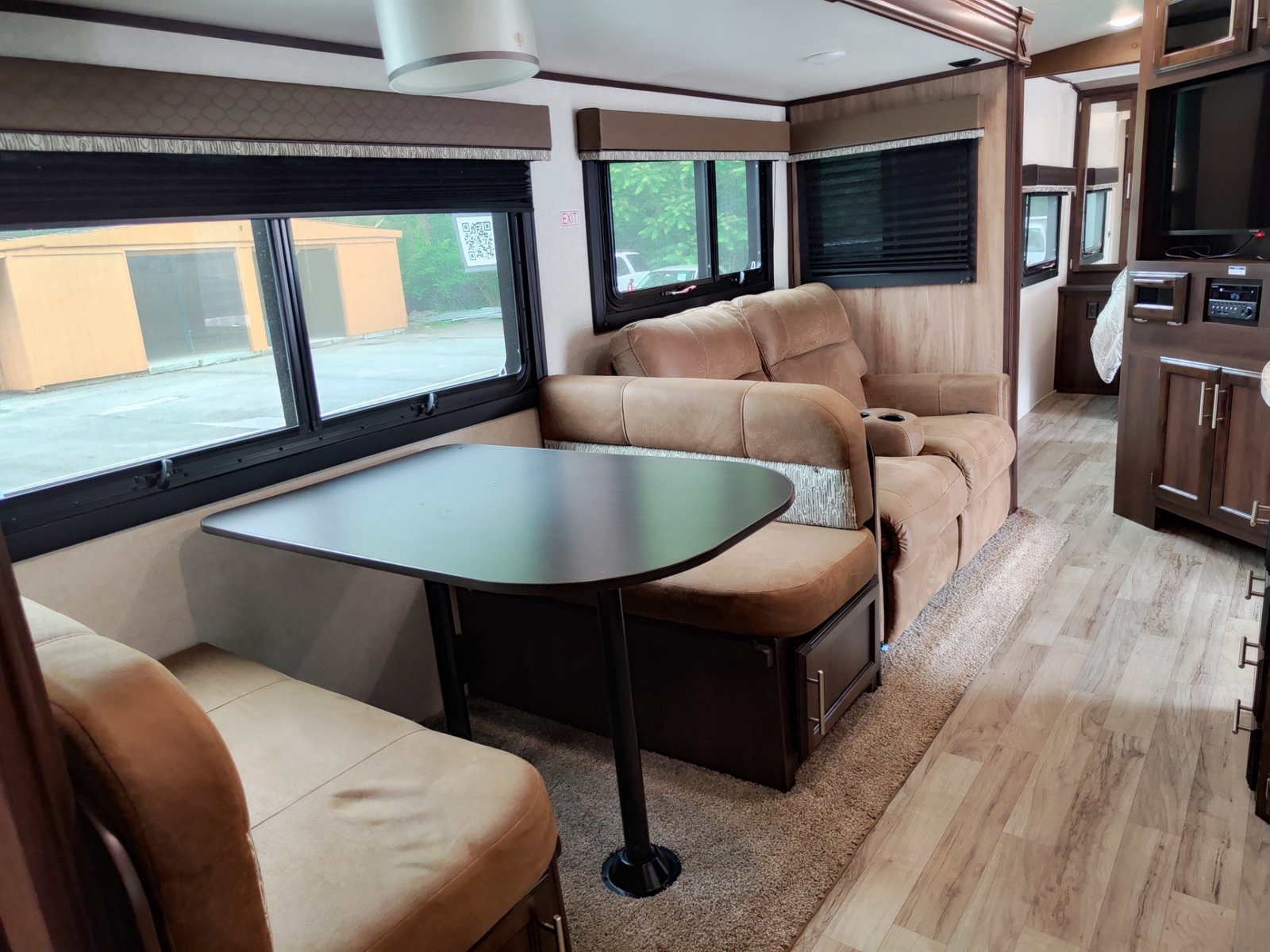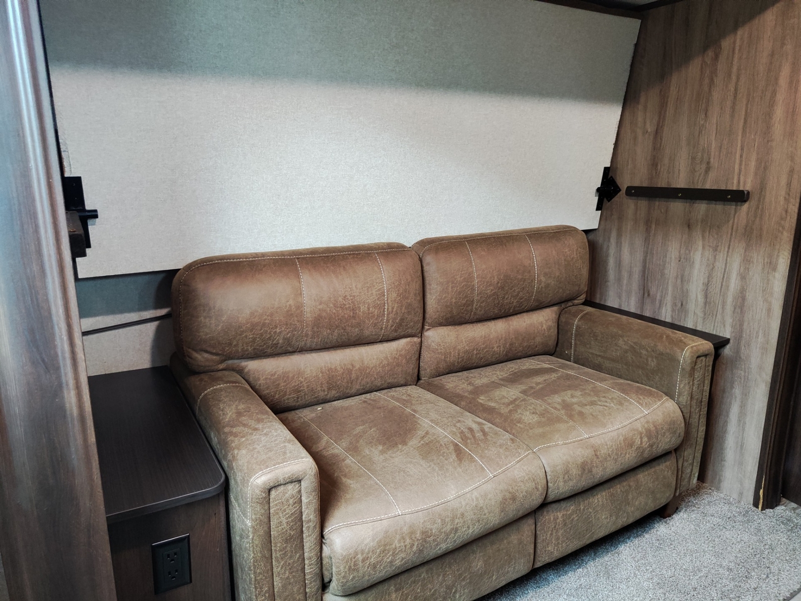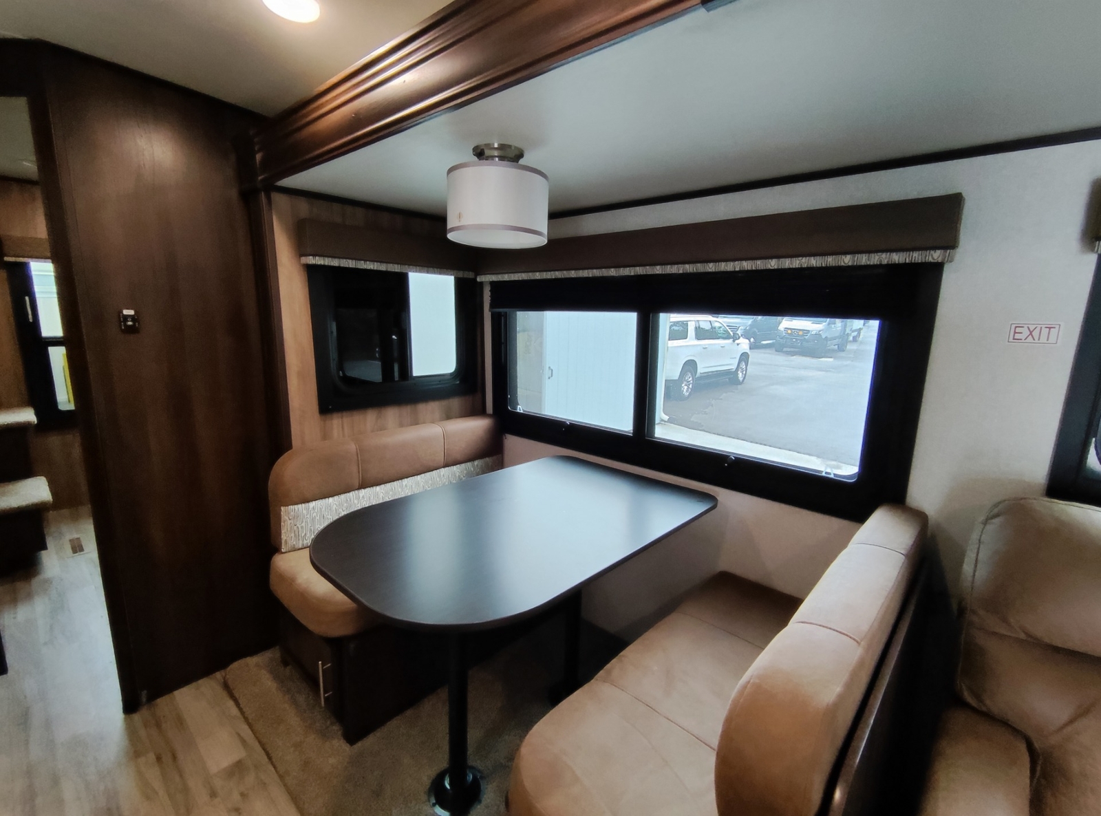 Step inside the luxurious interior of this camper, where you'll be greeted by a sophisticated Black color scheme that exudes elegance and style. The spacious cabin offers ample room for relaxation and entertainment, making it the perfect home away from home.