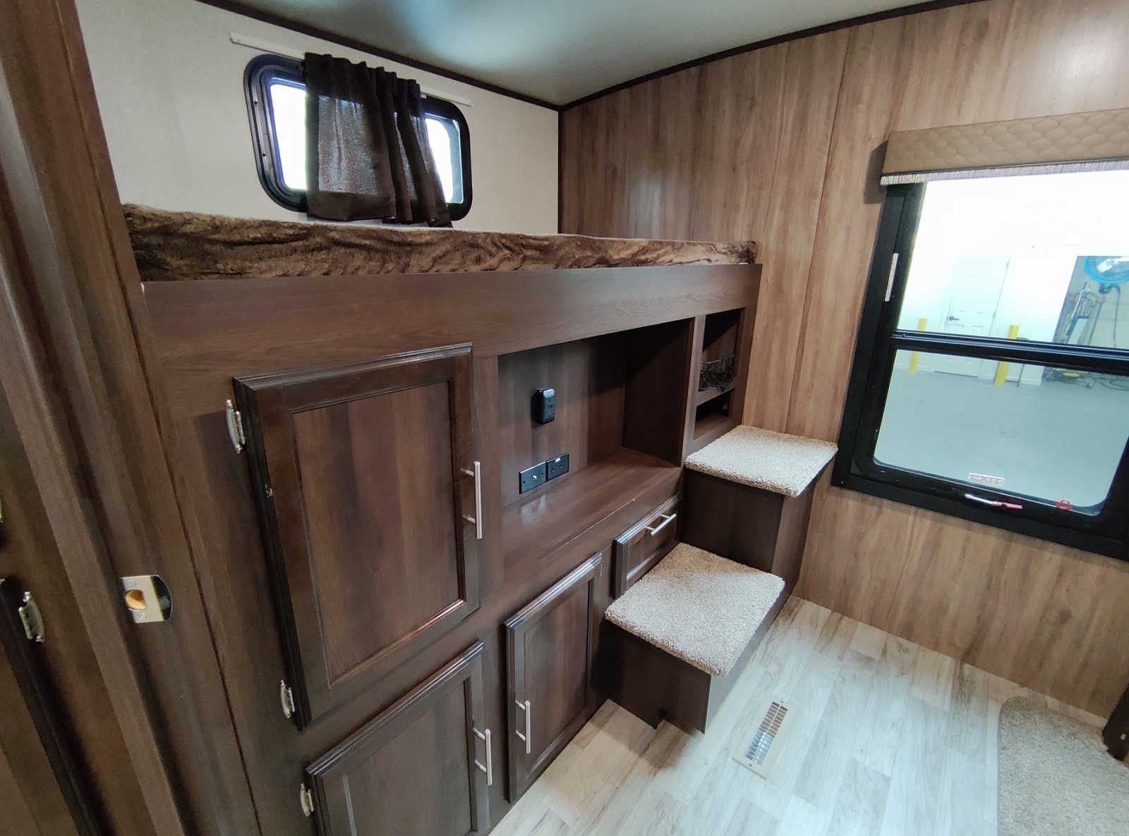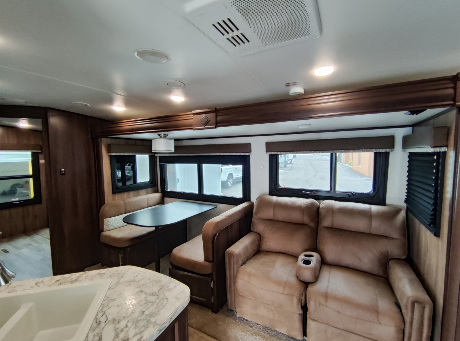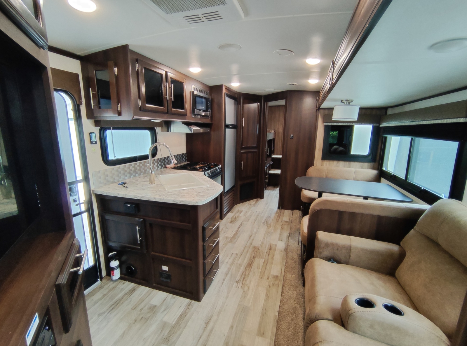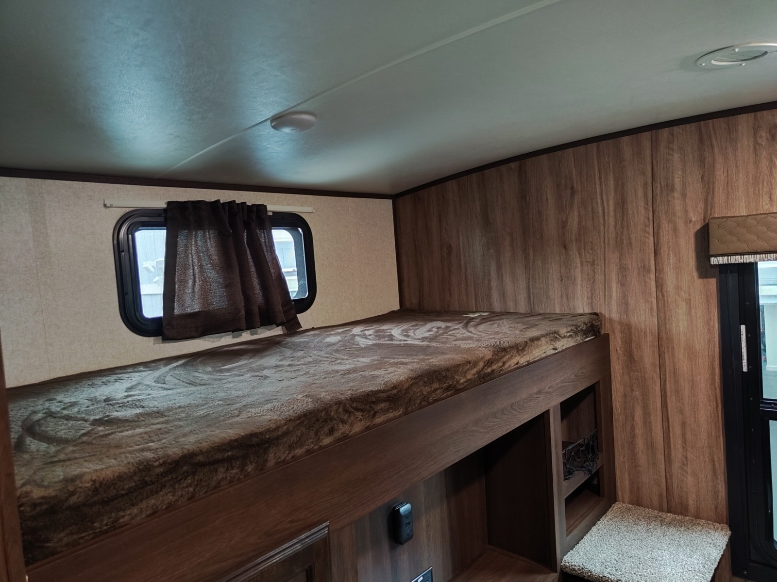 Step inside the luxurious interior of this camper, where you'll be greeted by a sophisticated Black color scheme that exudes elegance and style. The spacious cabin offers ample room for relaxation and entertainment, making it the perfect home away from home.