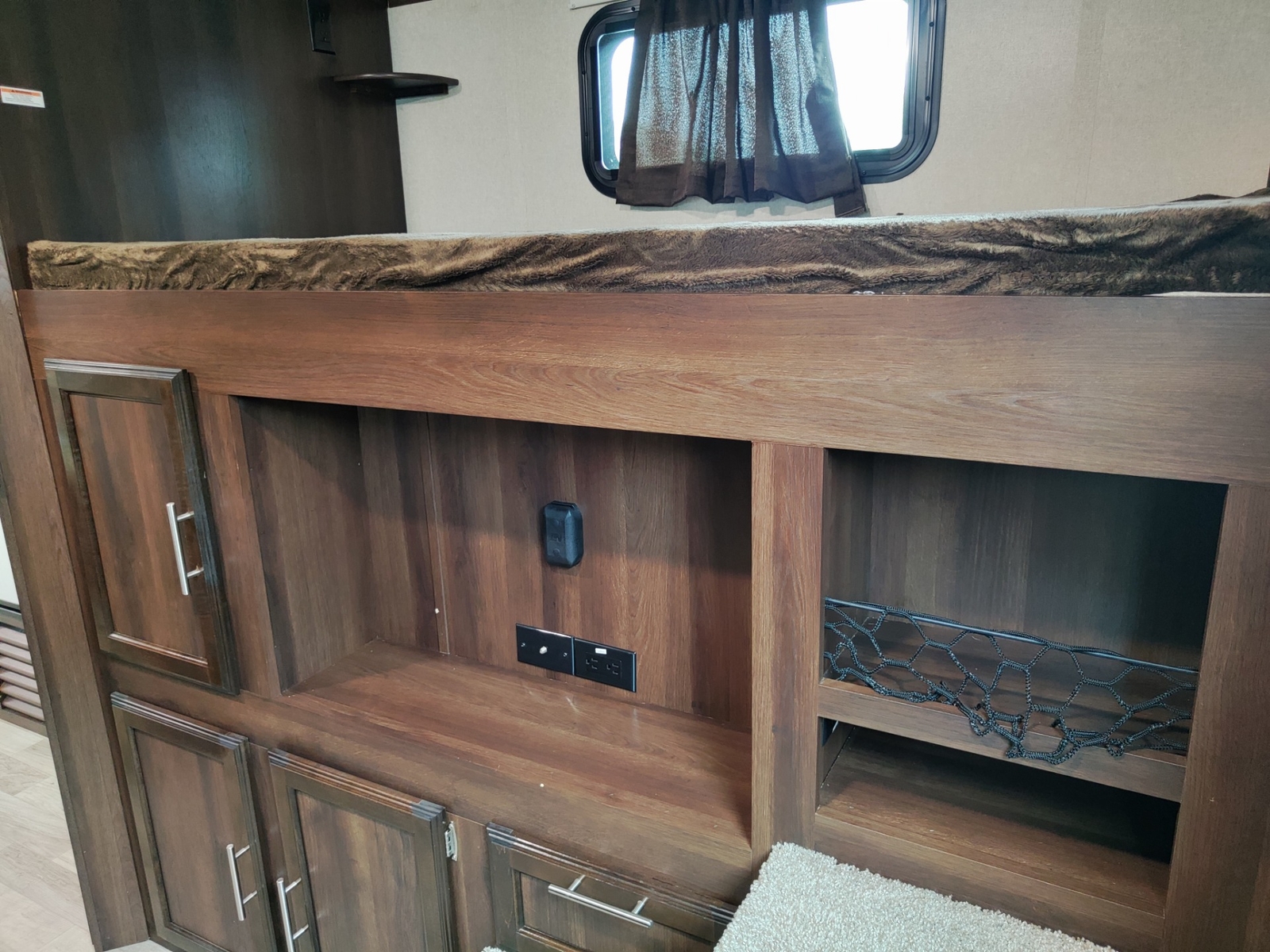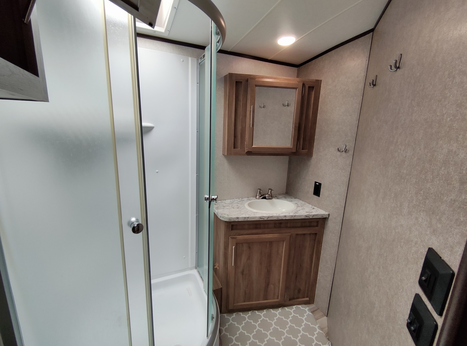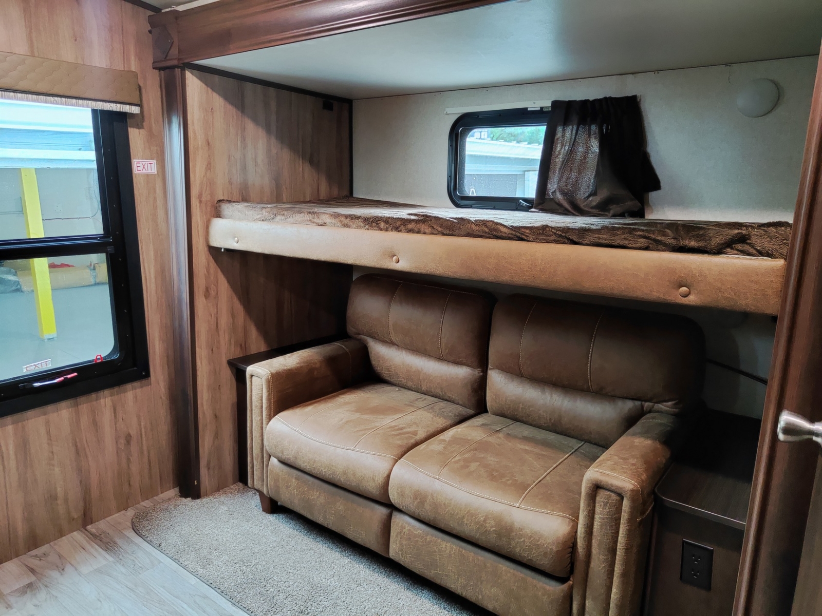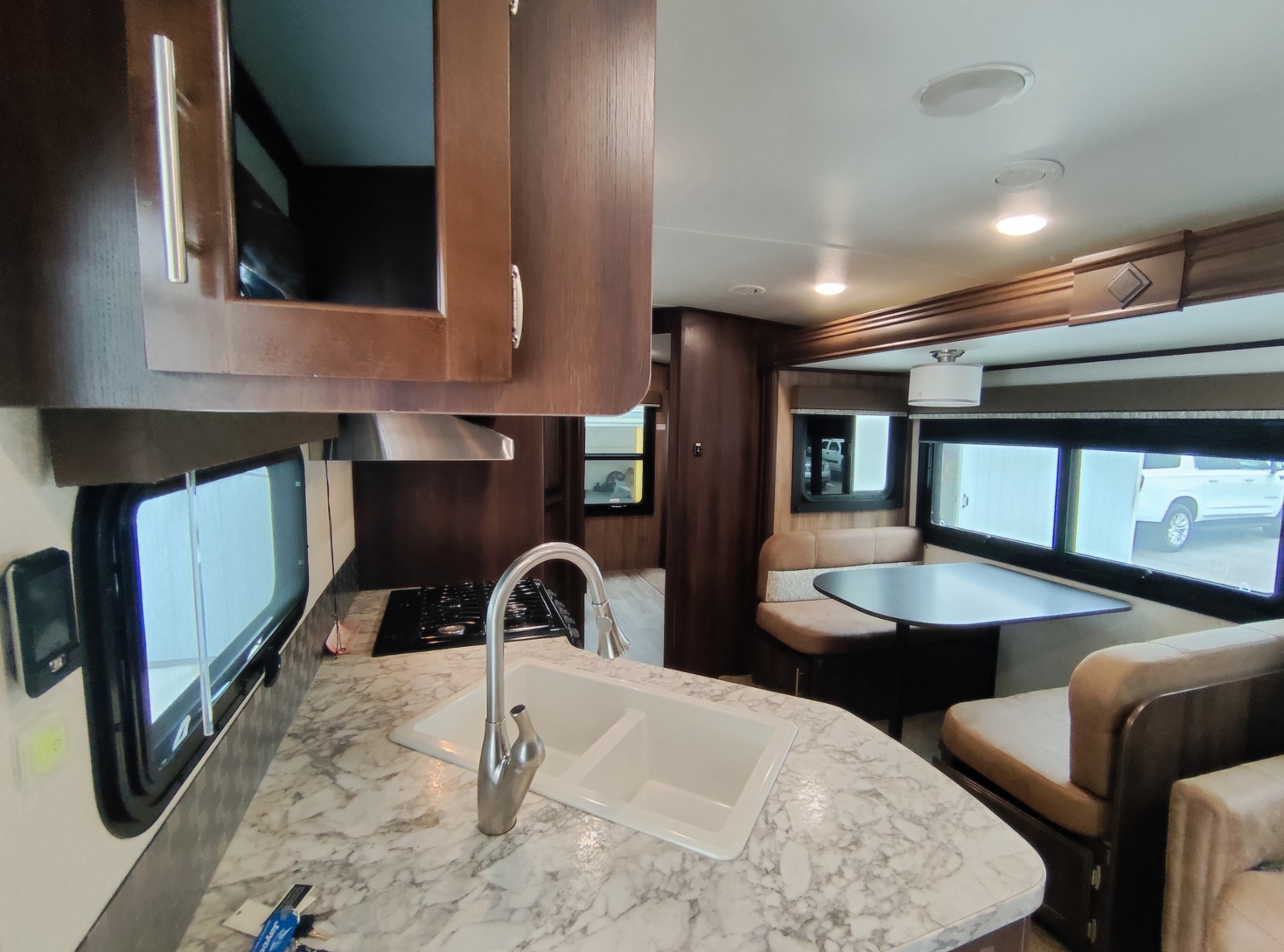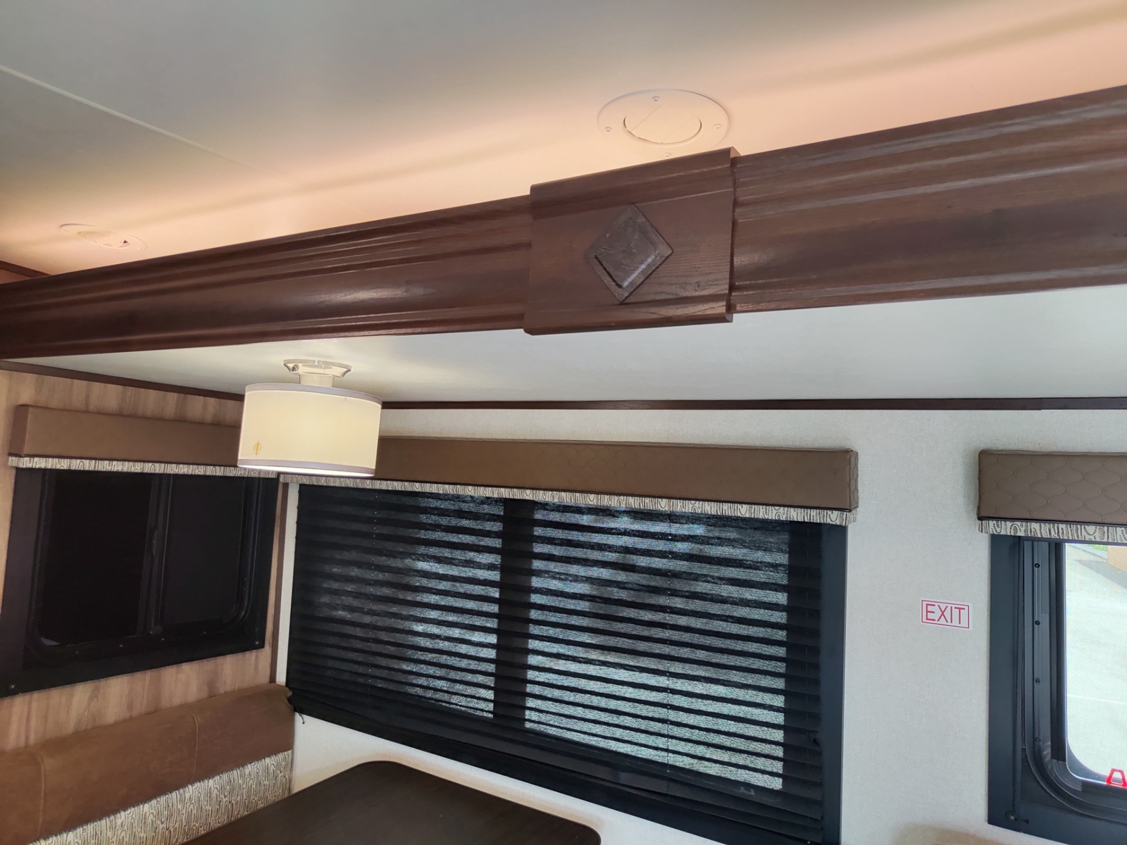 Step inside the luxurious interior of this camper, where you'll be greeted by a sophisticated Black color scheme that exudes elegance and style. The spacious cabin offers ample room for relaxation and entertainment, making it the perfect home away from home.