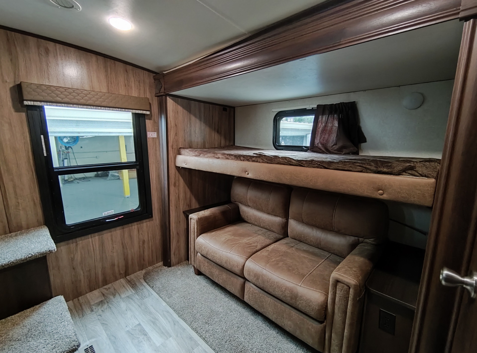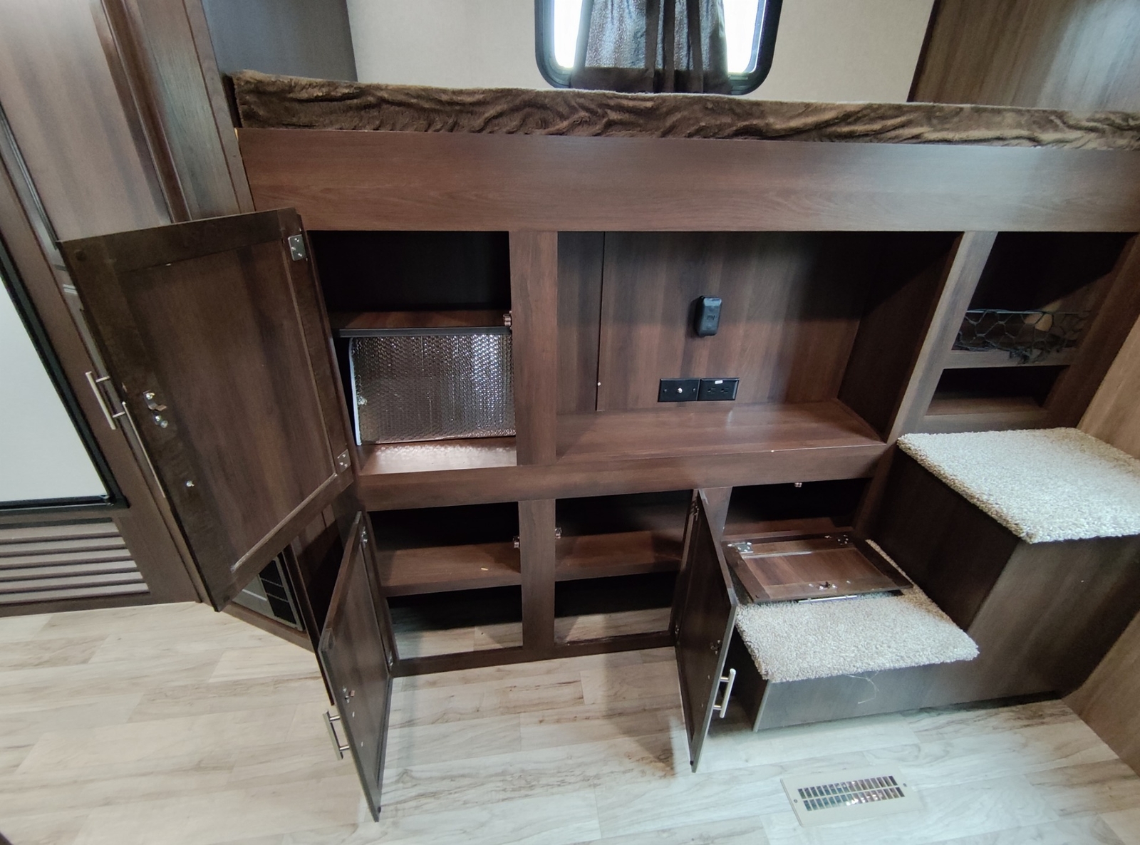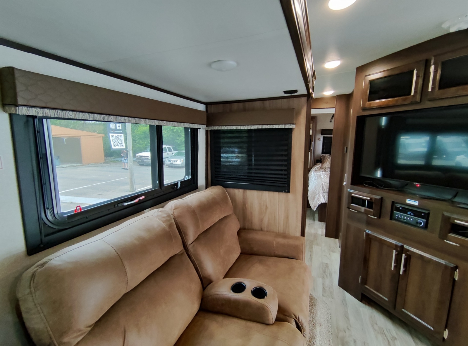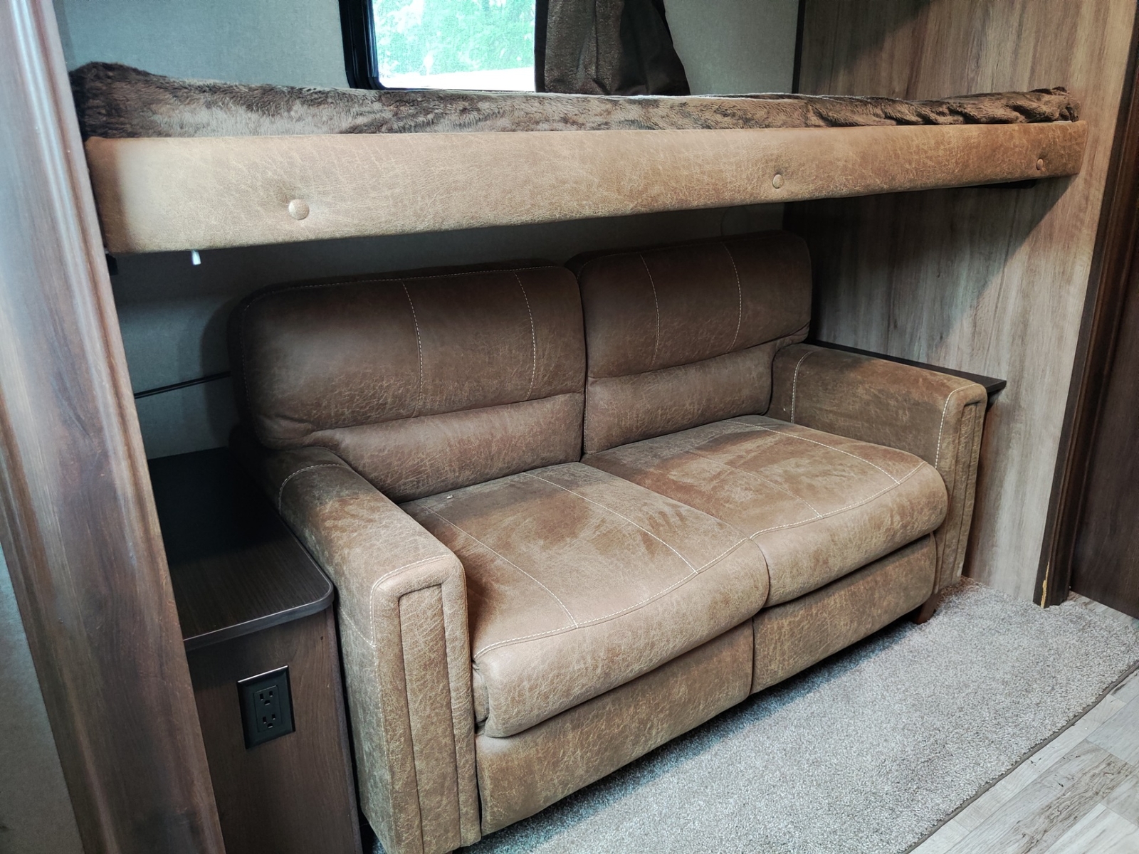 Step inside the luxurious interior of this camper, where you'll be greeted by a sophisticated Black color scheme that exudes elegance and style. The spacious cabin offers ample room for relaxation and entertainment, making it the perfect home away from home.