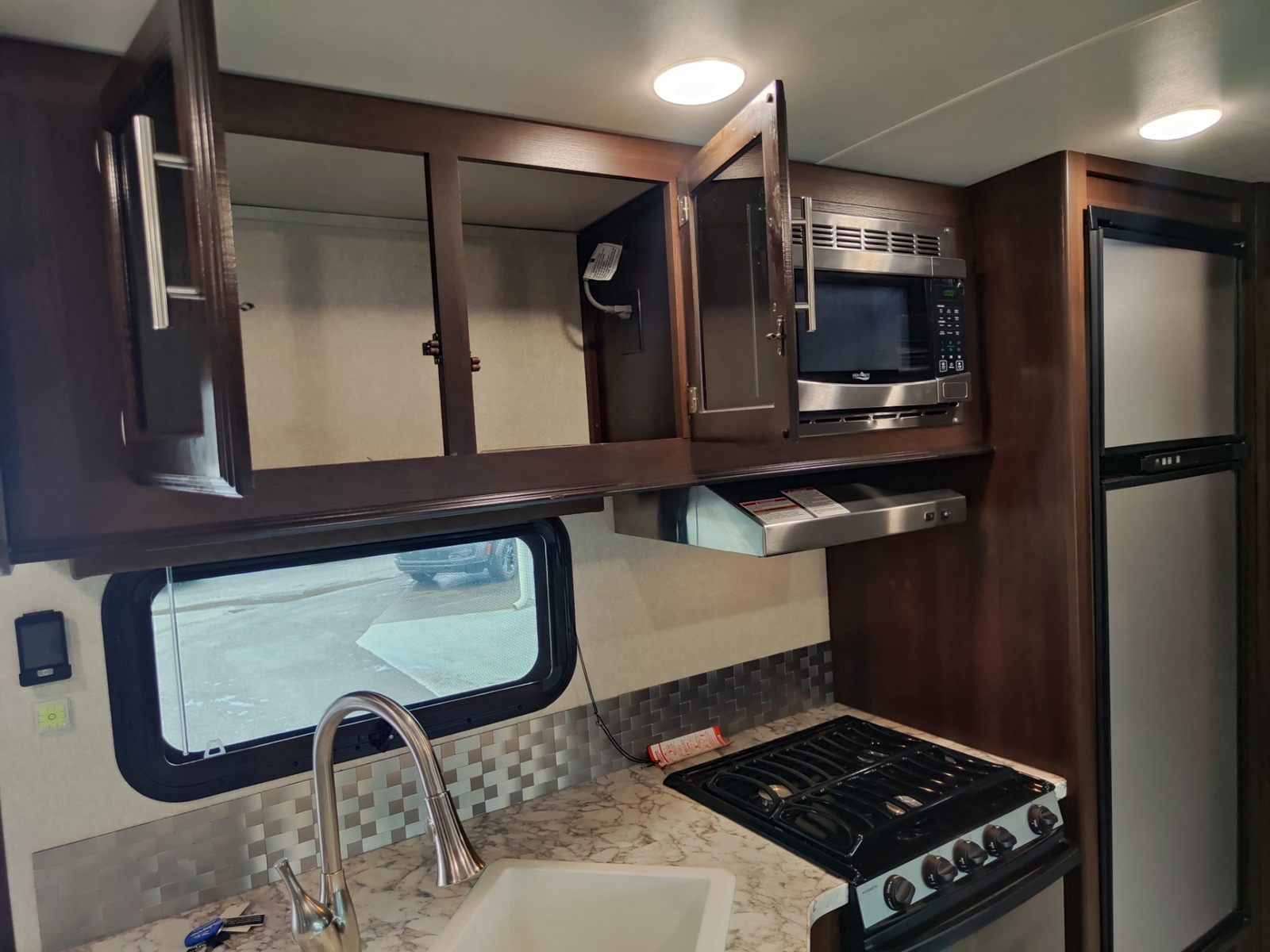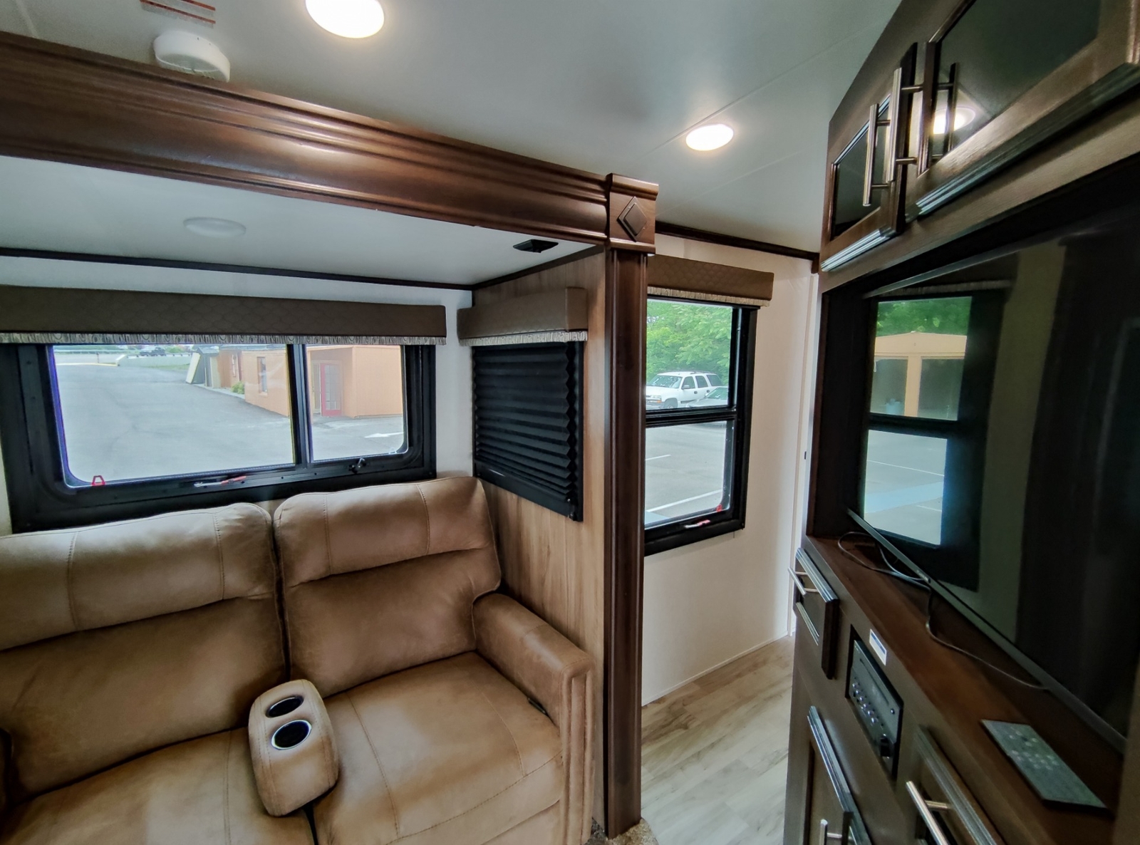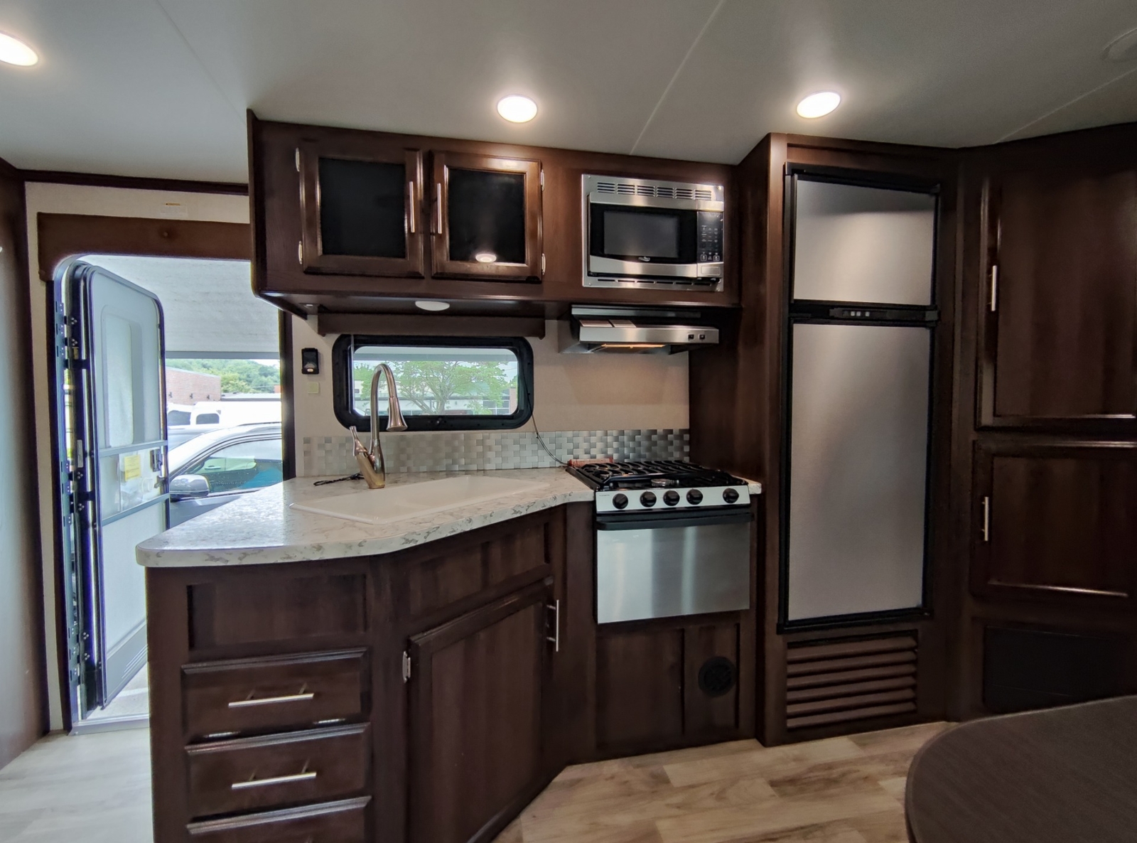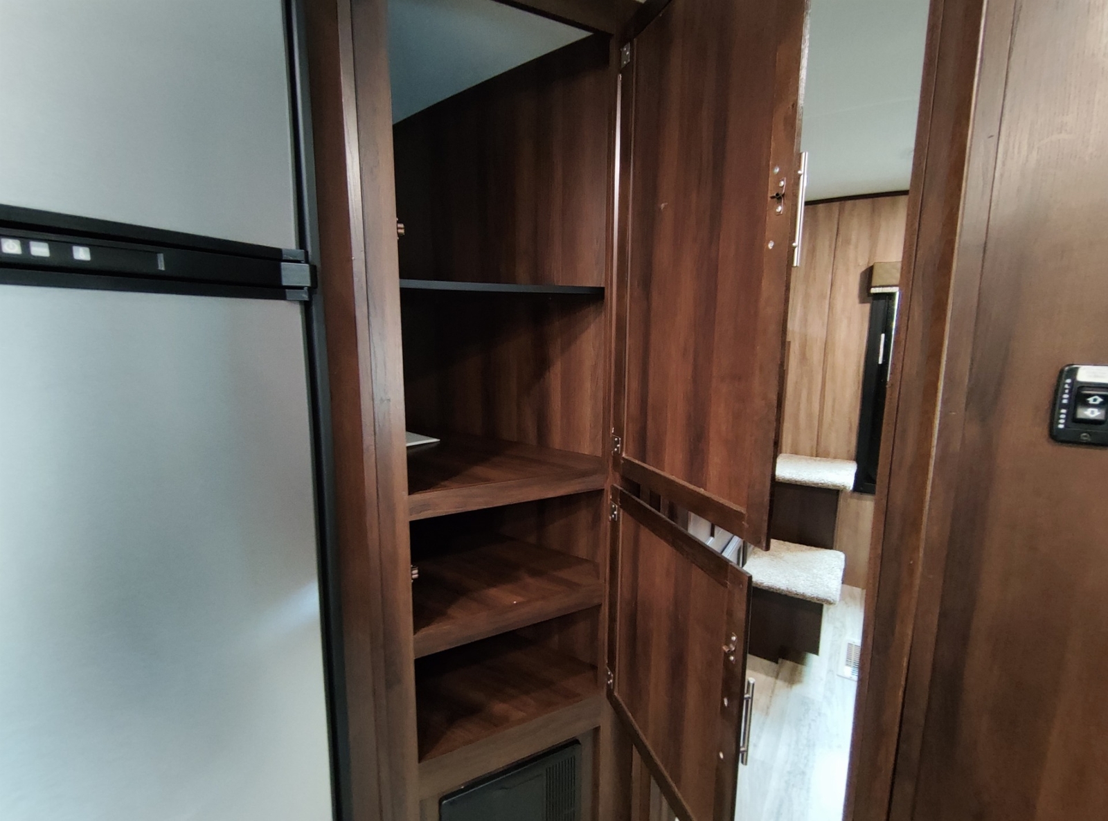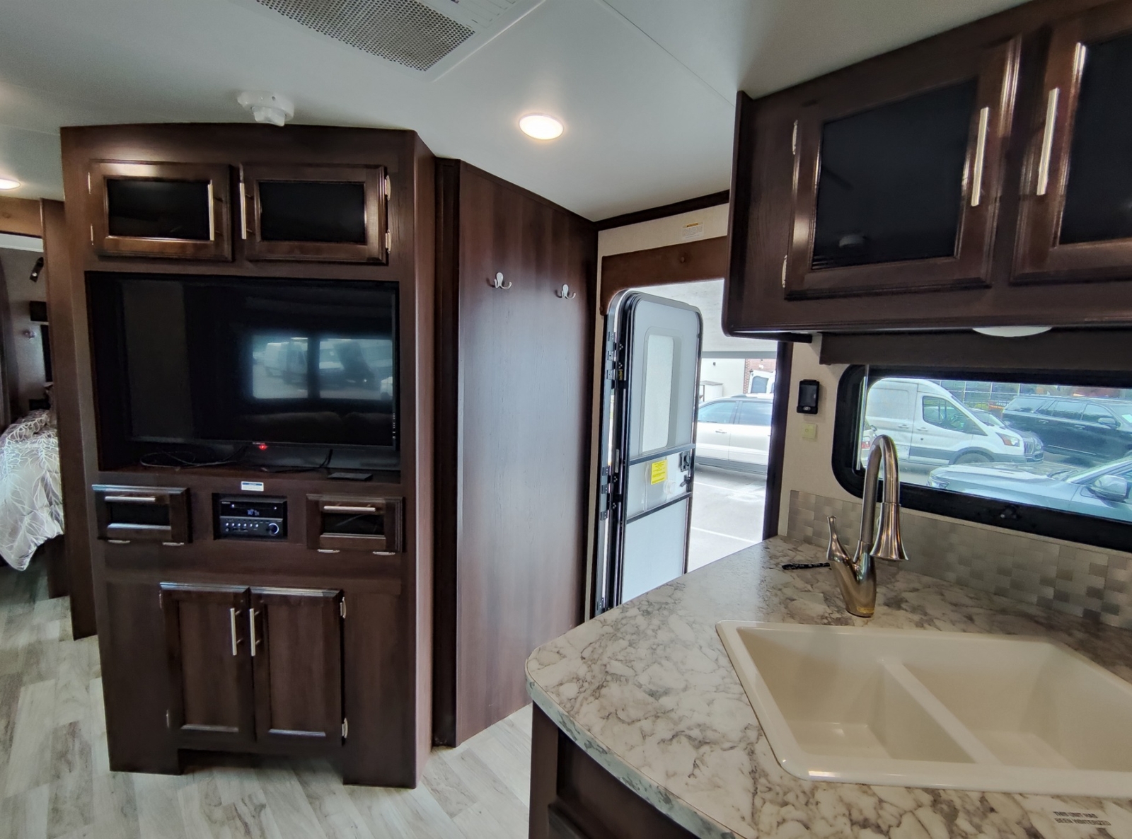 Step inside the luxurious interior of this camper, where you'll be greeted by a sophisticated Black color scheme that exudes elegance and style. The spacious cabin offers ample room for relaxation and entertainment, making it the perfect home away from home.