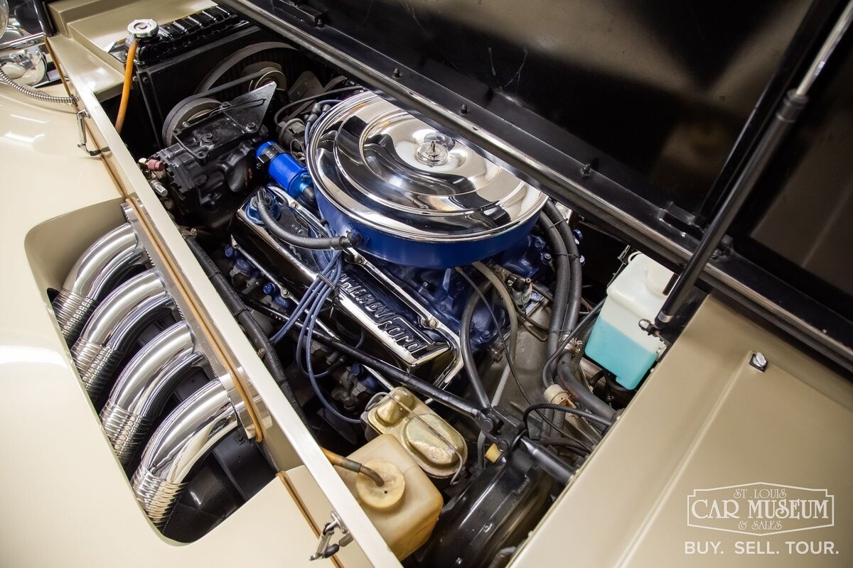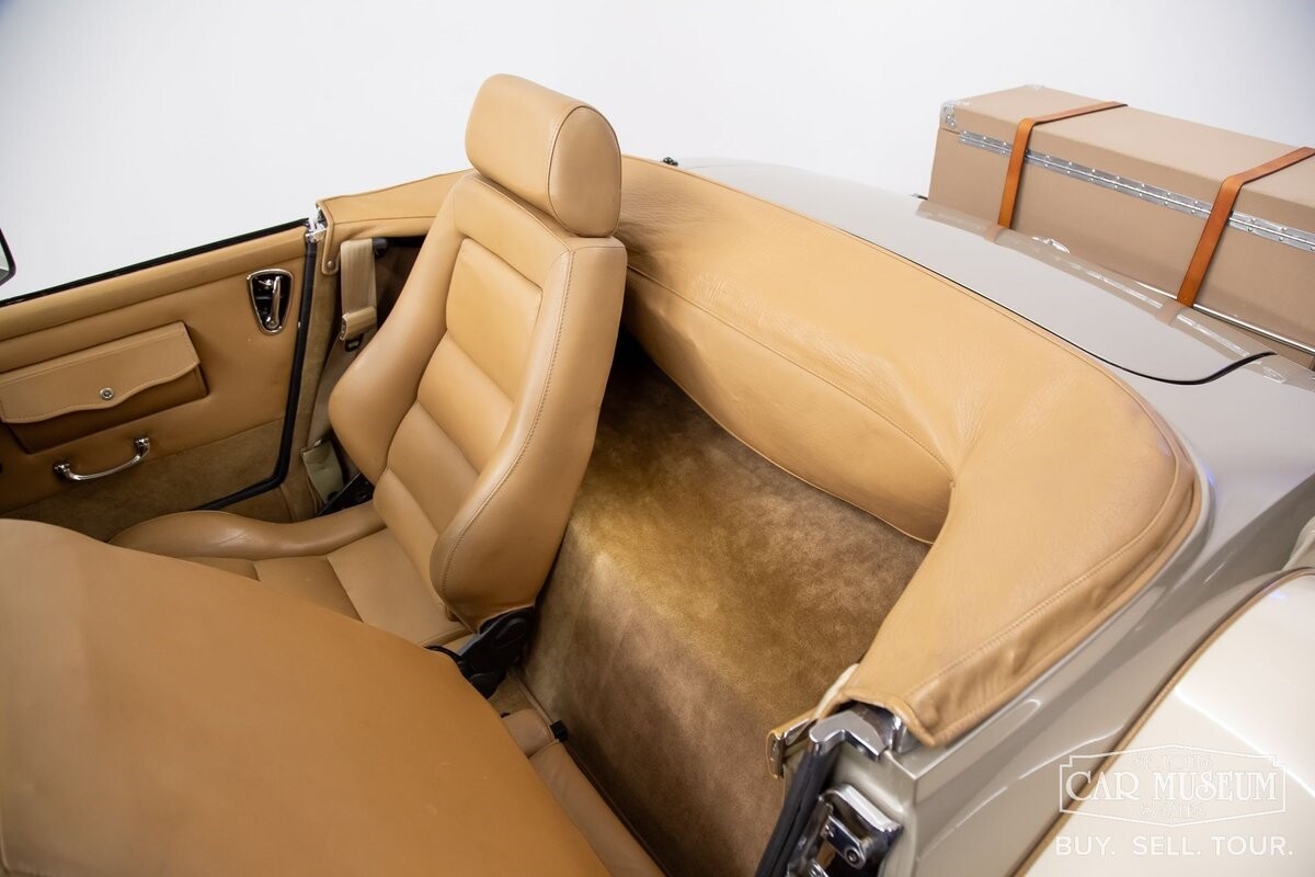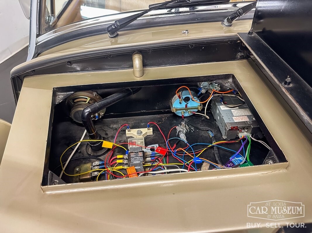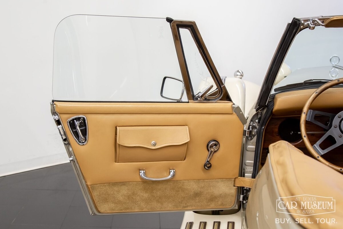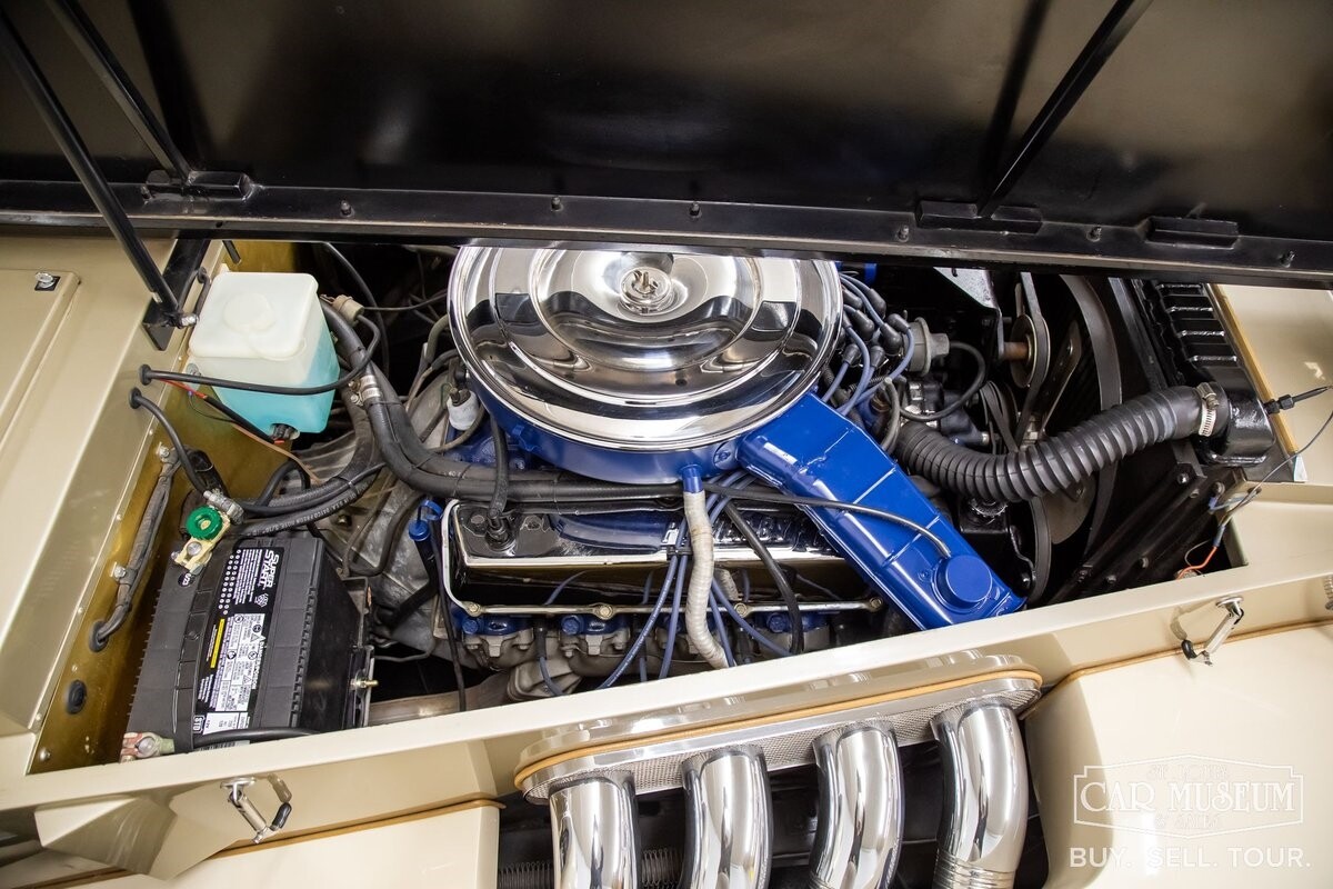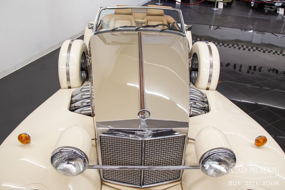 We are excited to offer this beautiful 1988 Corsair "Harlow" Roadster finished in Champagne Gold and Magnolia White two-tone exterior with a Beige Leather interior. Powered by its original Ford 429ci V8-4bbl engine and C6 automatic transmission, this impressive example is equipped with air conditioning, power steering, power front disc brakes, sport seats, VDO instrumentation, solid wood dash, 15" chrome wire spoke wheels, Coker Classic wide whitewall tires measuring 235/75R15, etched vent window glass, reverse lights, locking rear trunk, AFI trumpet air horns, amber fog lamps, dual outside mirrors, chrome faux side exhaust pipes, and triple windshield wiper blades.
