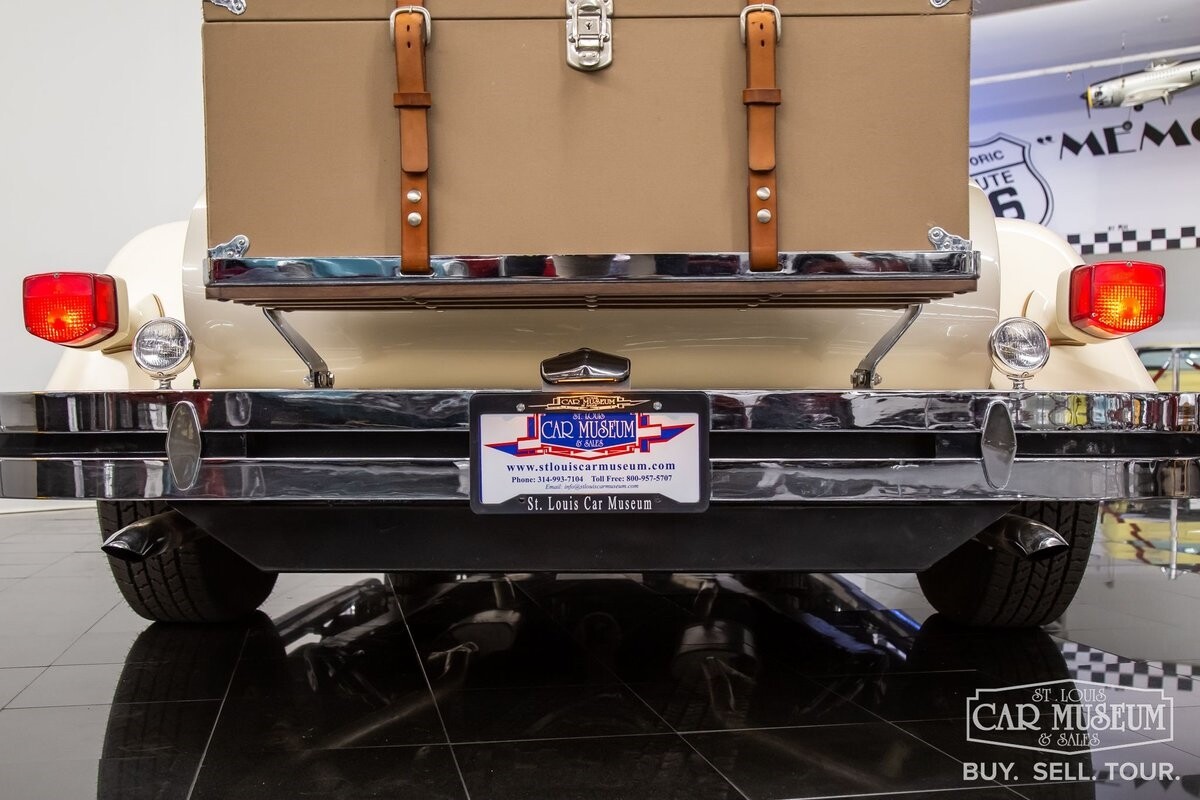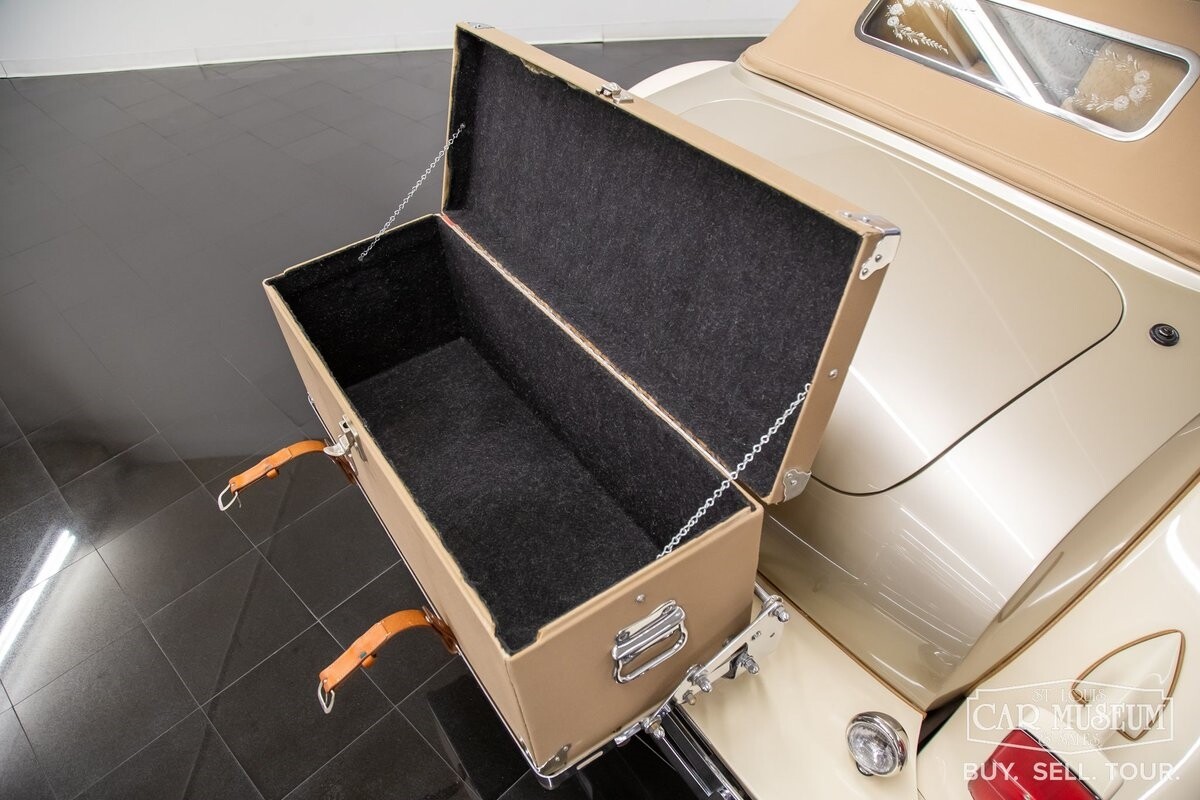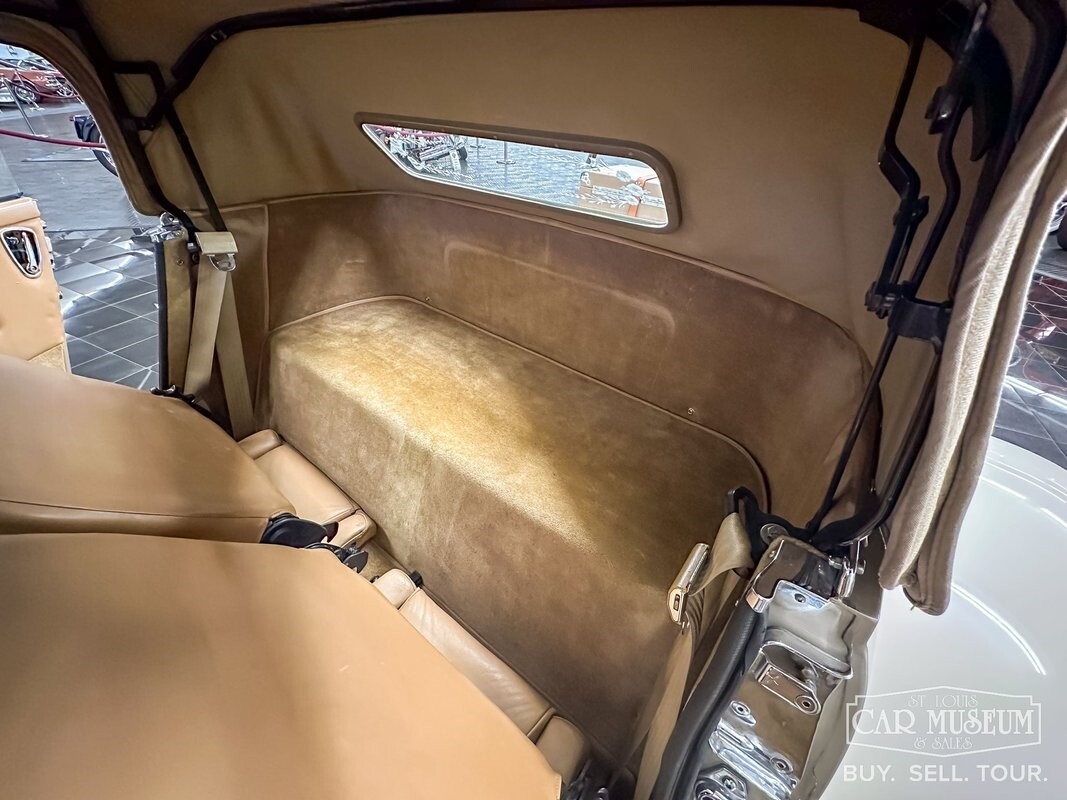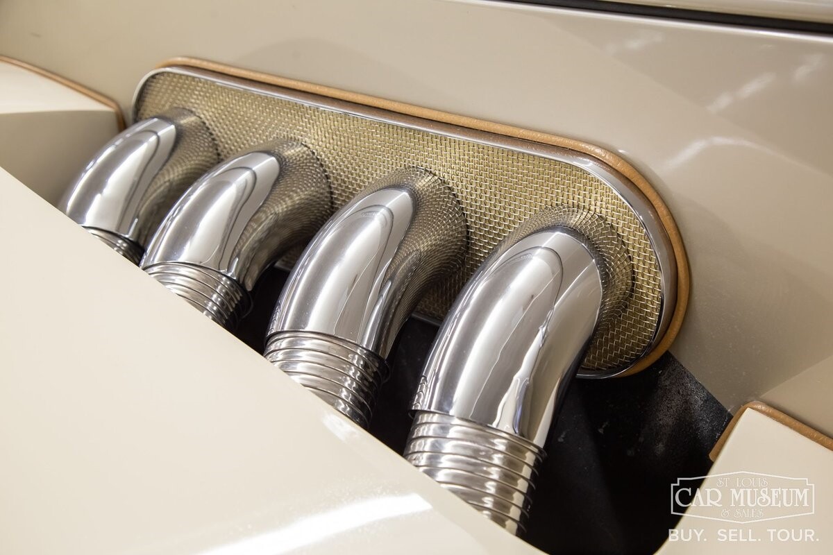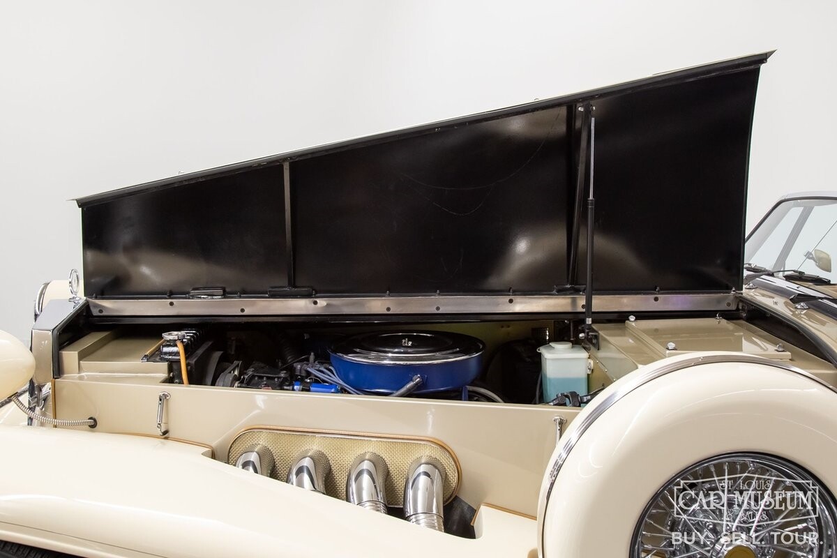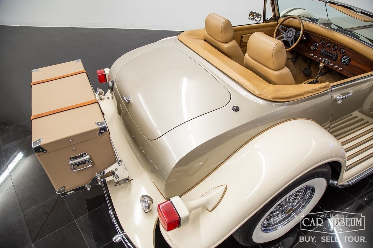 These kits were built in the late-1980's with a vision in mind to set it apart from other neo-classic examples on the market. This project became affectionately known as "Harlow", named after the builder's admiration of Gene Harlow, a blonde bombshell actress from the early 1930's known for her bad girl sex appeal. As if built for her personally, the Corsair was treated to special touches not found on any other roadster, most notably, dual side-mounted spare tires with covers, rear-mounted custom rack with removable trunk, and elongated front headlight buckets that are now bar-mounted for a more prominent presentation. The Corsair showcased lowered and more rounded front fenders along with extended and reshaped rear fenders with a traditional imitation bead-rolled edge along the entire length; faux exhaust ports are made more visible with new trim surround, prominent forward air horns, new one piece front bumper with matching rear bumper, lockable storage trunk, revised firewall with sealed hard covers over auxiliary components; hood sides with special venting, Harlow emblems, and hydraulic lifts; and an etched rear window glass in the soft top!