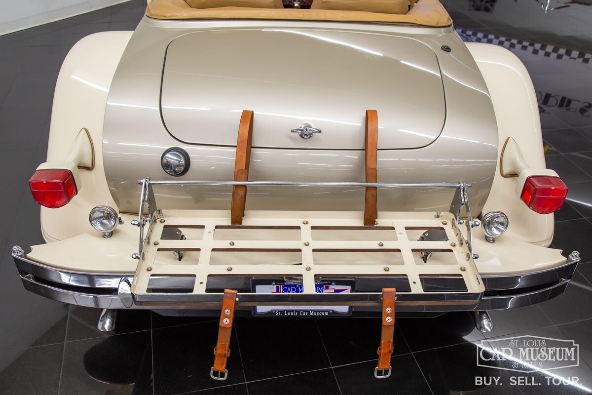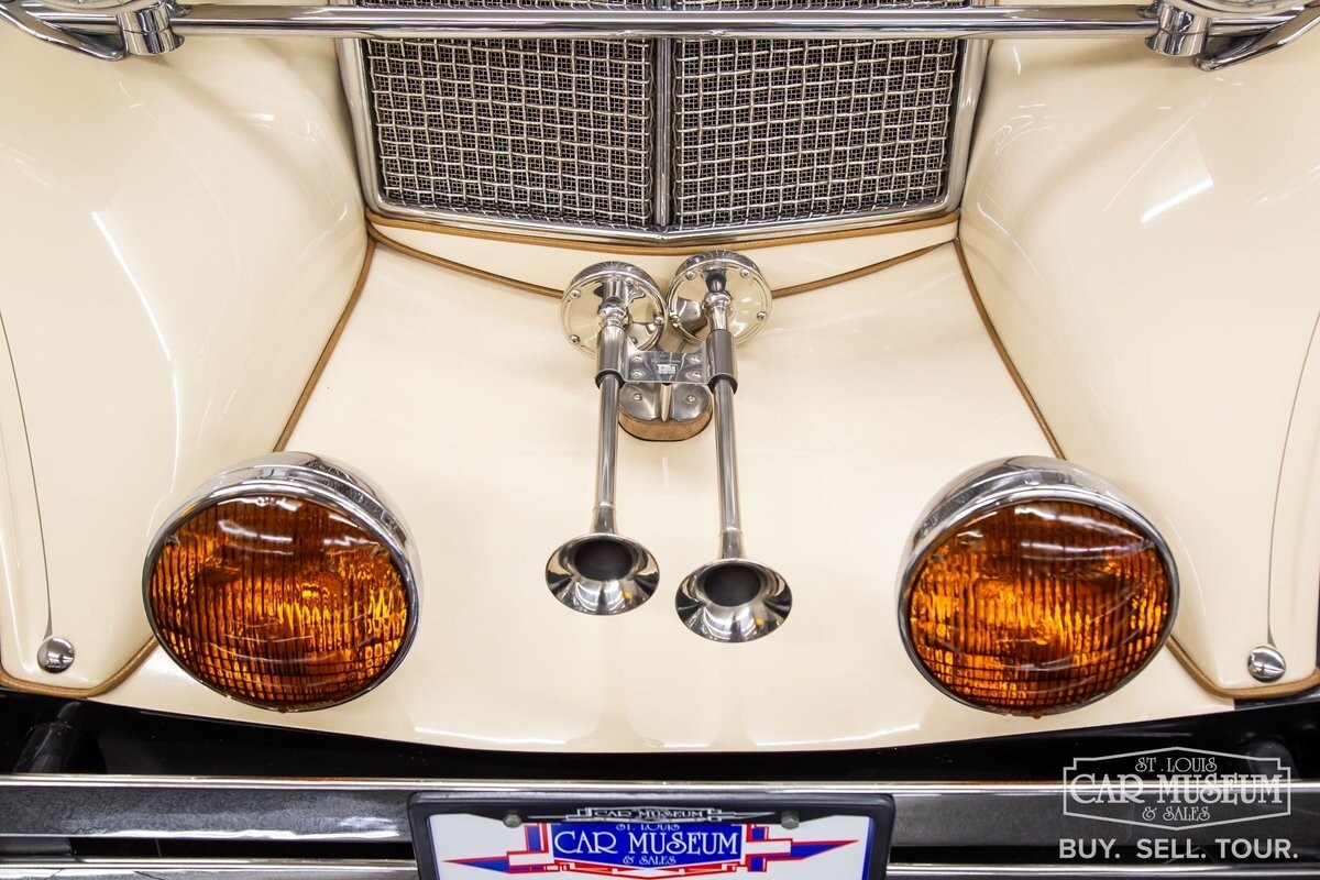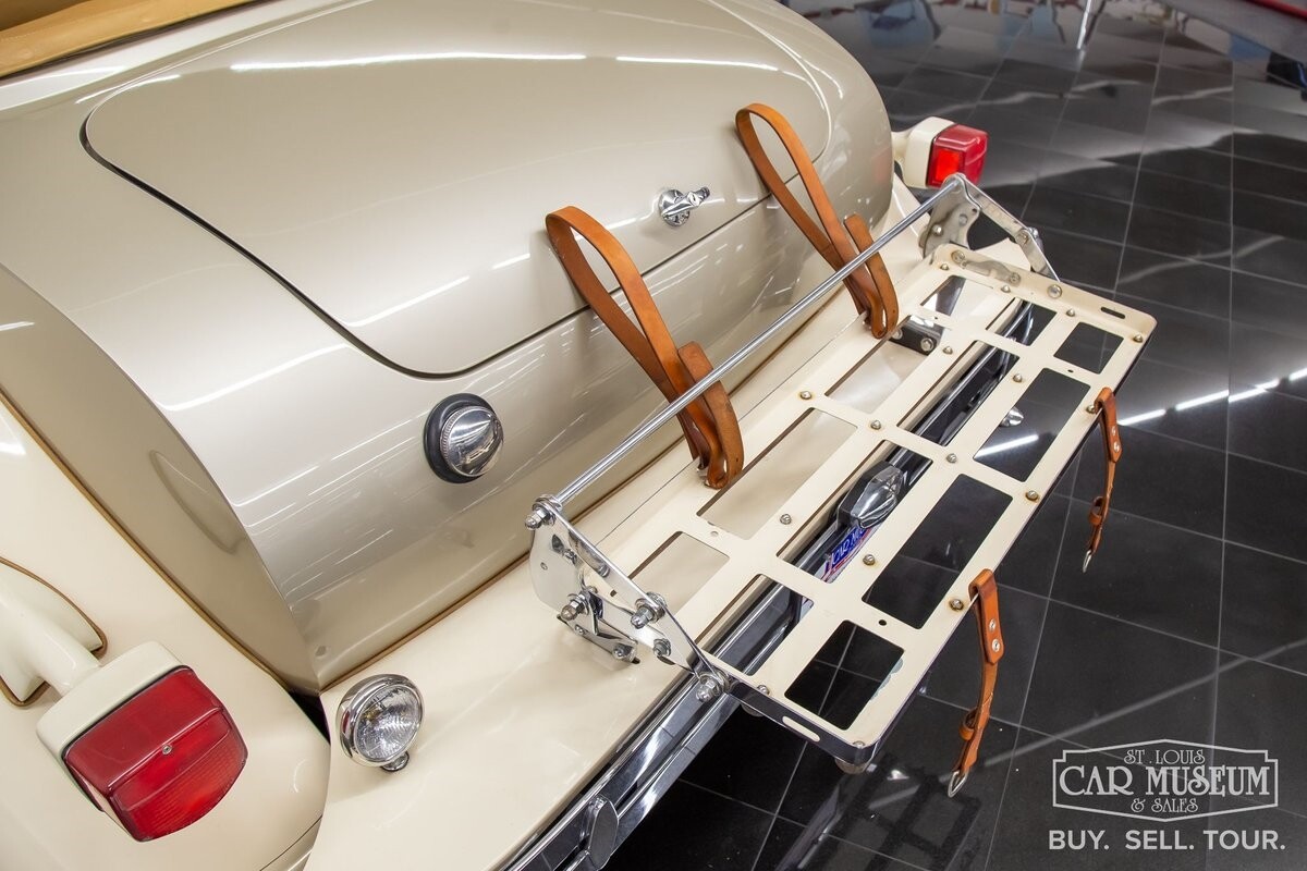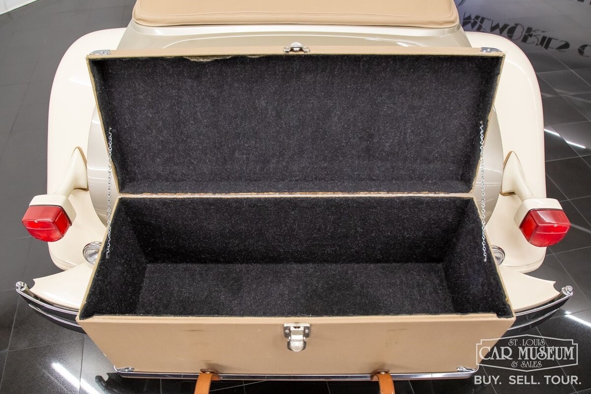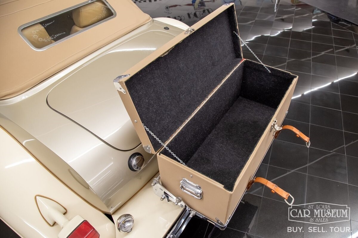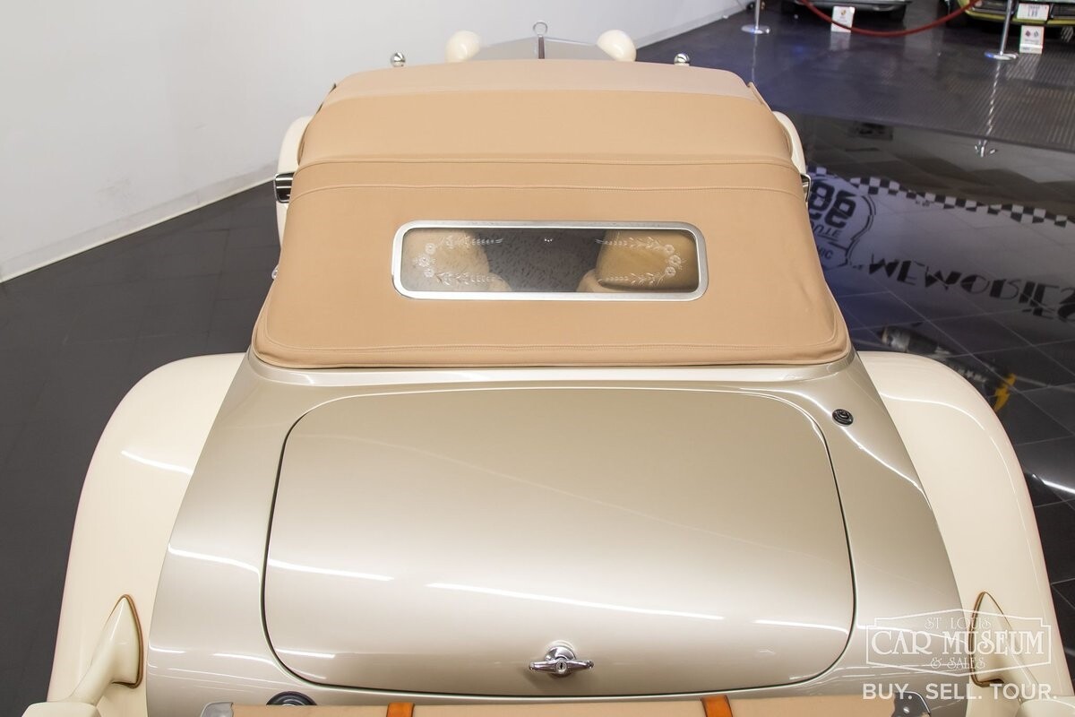 These kits were built in the late-1980's with a vision in mind to set it apart from other neo-classic examples on the market. This project became affectionately known as "Harlow", named after the builder's admiration of Gene Harlow, a blonde bombshell actress from the early 1930's known for her bad girl sex appeal. As if built for her personally, the Corsair was treated to special touches not found on any other roadster, most notably, dual side-mounted spare tires with covers, rear-mounted custom rack with removable trunk, and elongated front headlight buckets that are now bar-mounted for a more prominent presentation. The Corsair showcased lowered and more rounded front fenders along with extended and reshaped rear fenders with a traditional imitation bead-rolled edge along the entire length; faux exhaust ports are made more visible with new trim surround, prominent forward air horns, new one piece front bumper with matching rear bumper, lockable storage trunk, revised firewall with sealed hard covers over auxiliary components; hood sides with special venting, Harlow emblems, and hydraulic lifts; and an etched rear window glass in the soft top!