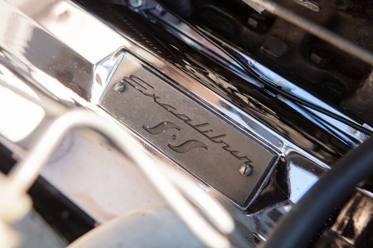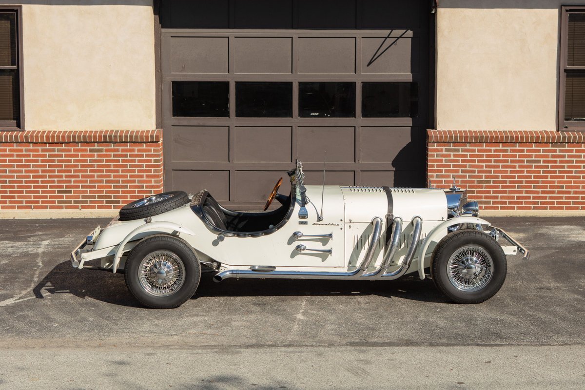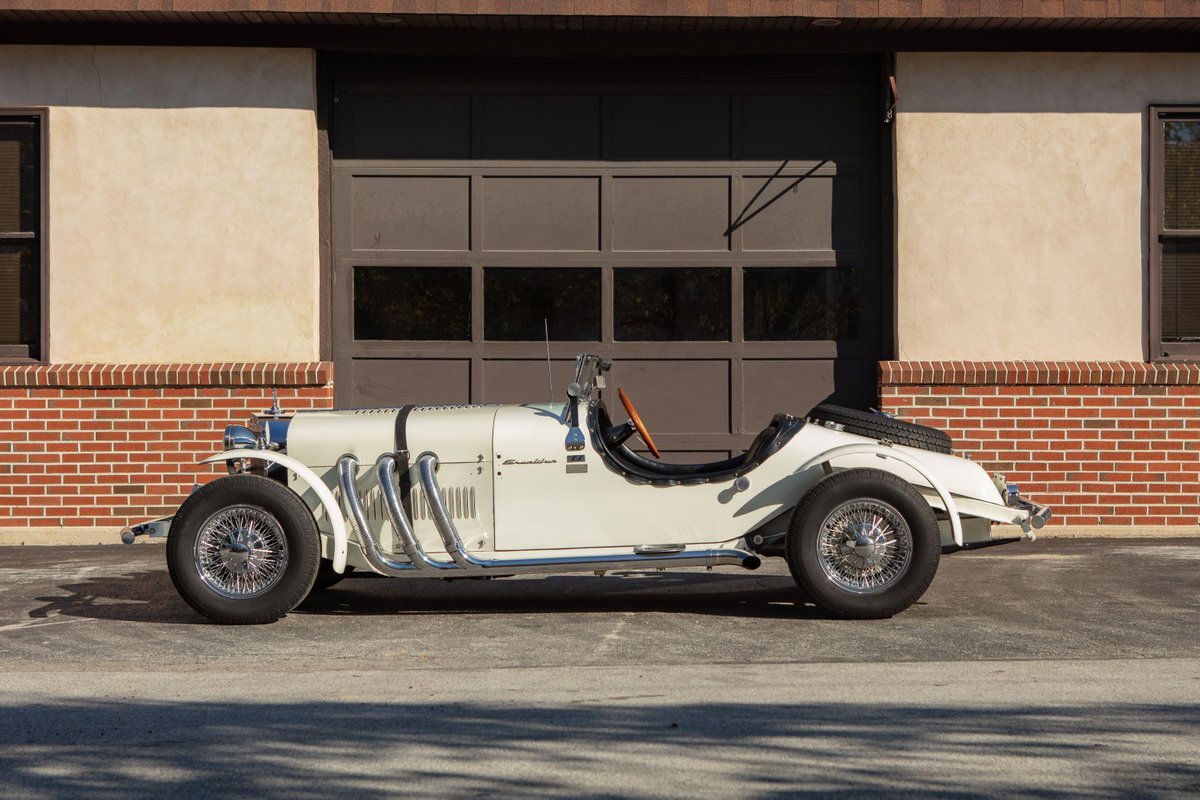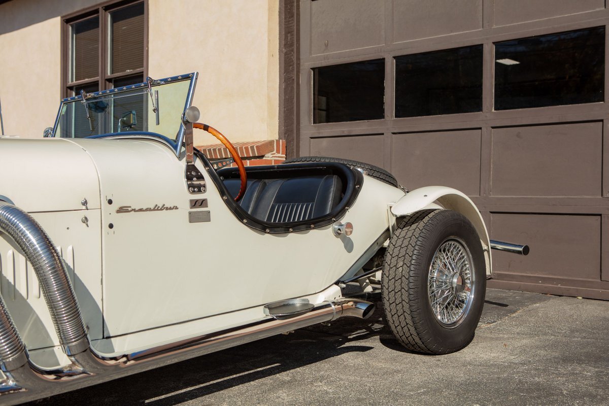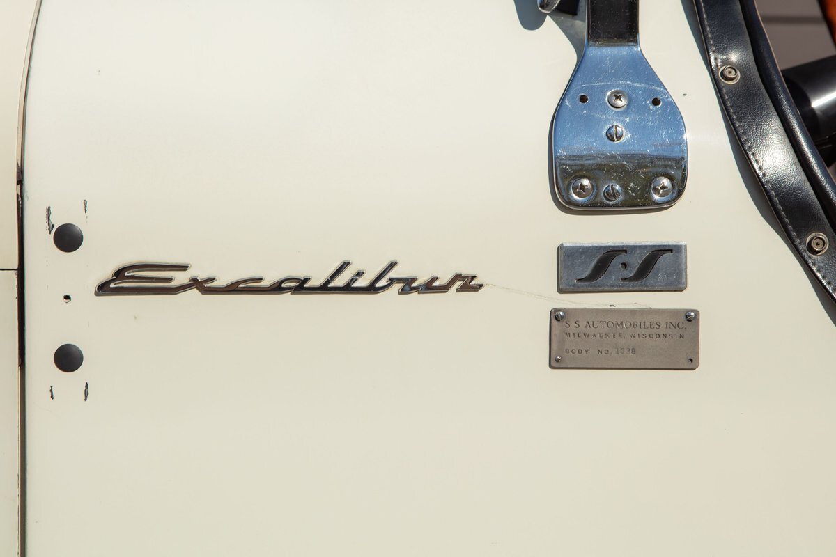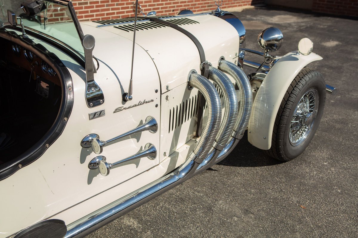 This Excalibur SSK series one-car is the ultimate Excalibur to own. It is the "no door" SSK and is powered by a Chevy 327 V8 engine with a Paxton supercharger, producing 400 HP. This power is transmitted through a Borg Warner four-speed manual transmission. Only 97 Excalibur's were built without doors, and it is believed that only between five and seven cars were factory supercharged.