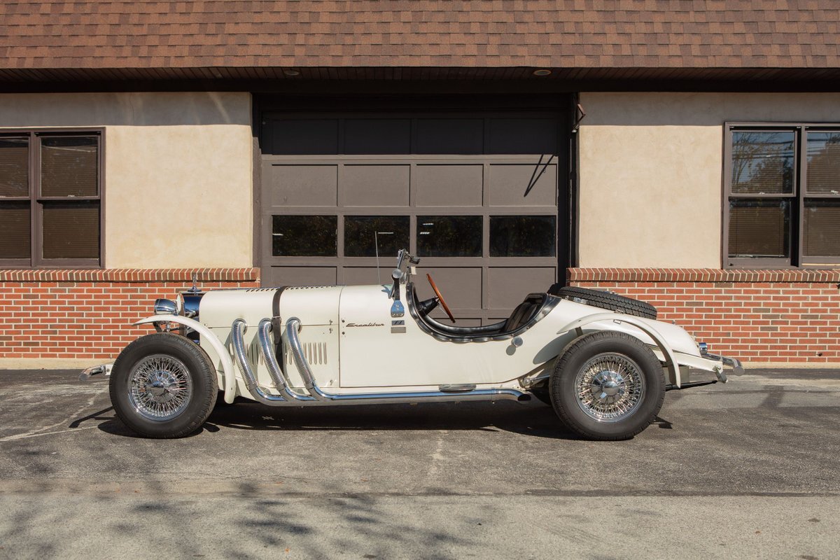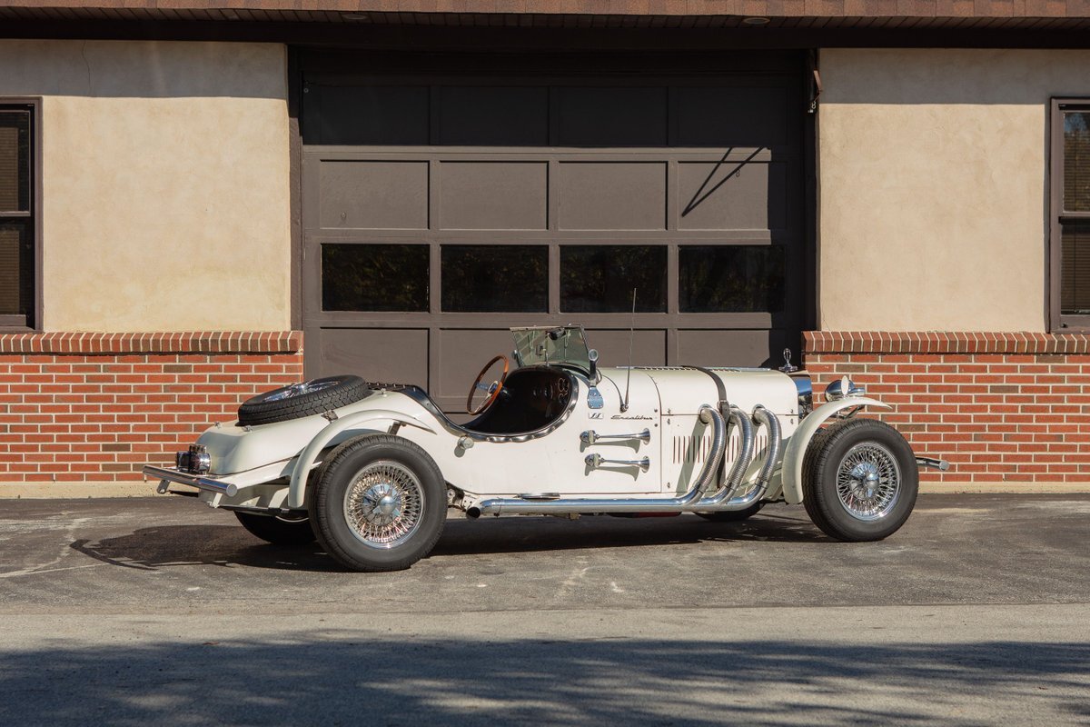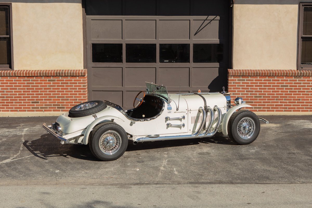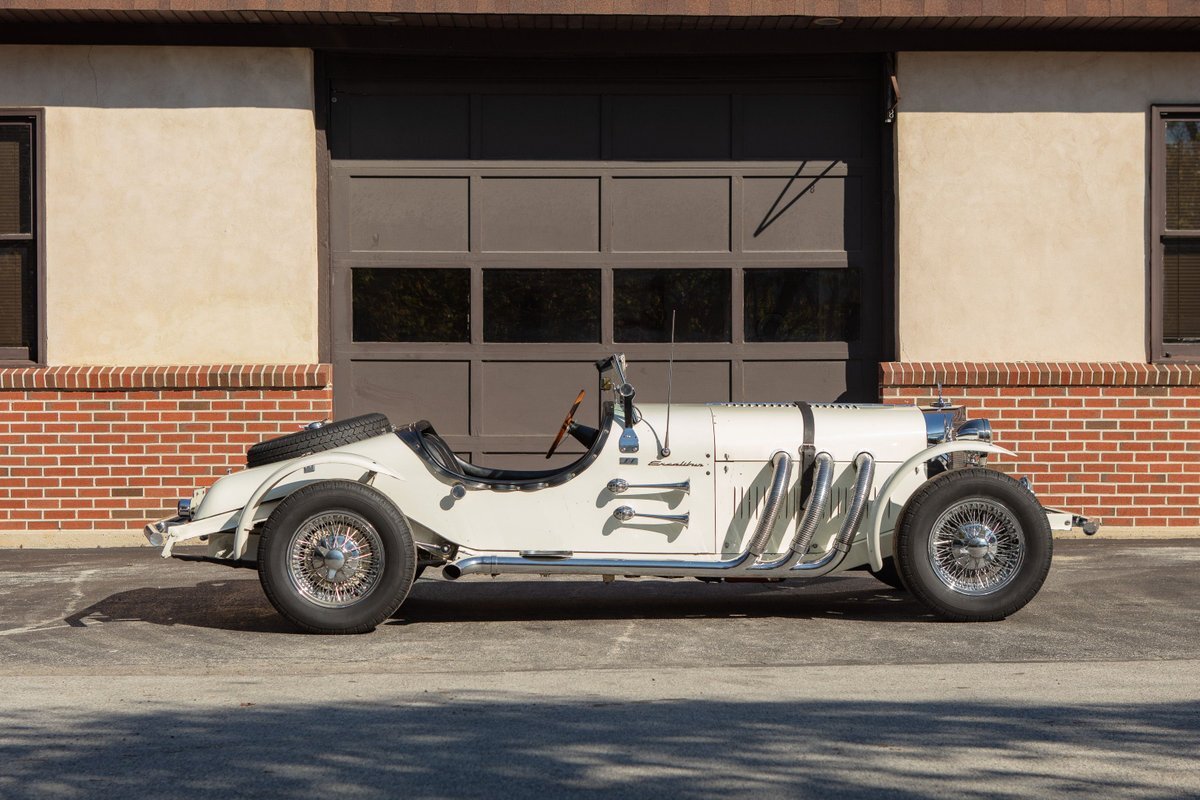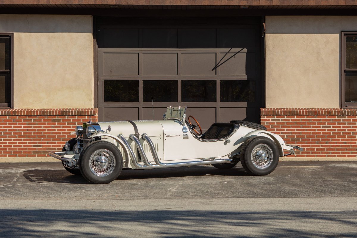 This Excalibur SSK series one-car is the ultimate Excalibur to own. It is the "no door" SSK and is powered by a Chevy 327 V8 engine with a Paxton supercharger, producing 400 HP. This power is transmitted through a Borg Warner four-speed manual transmission. Only 97 Excalibur's were built without doors, and it is believed that only between five and seven cars were factory supercharged.