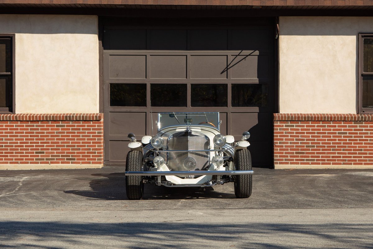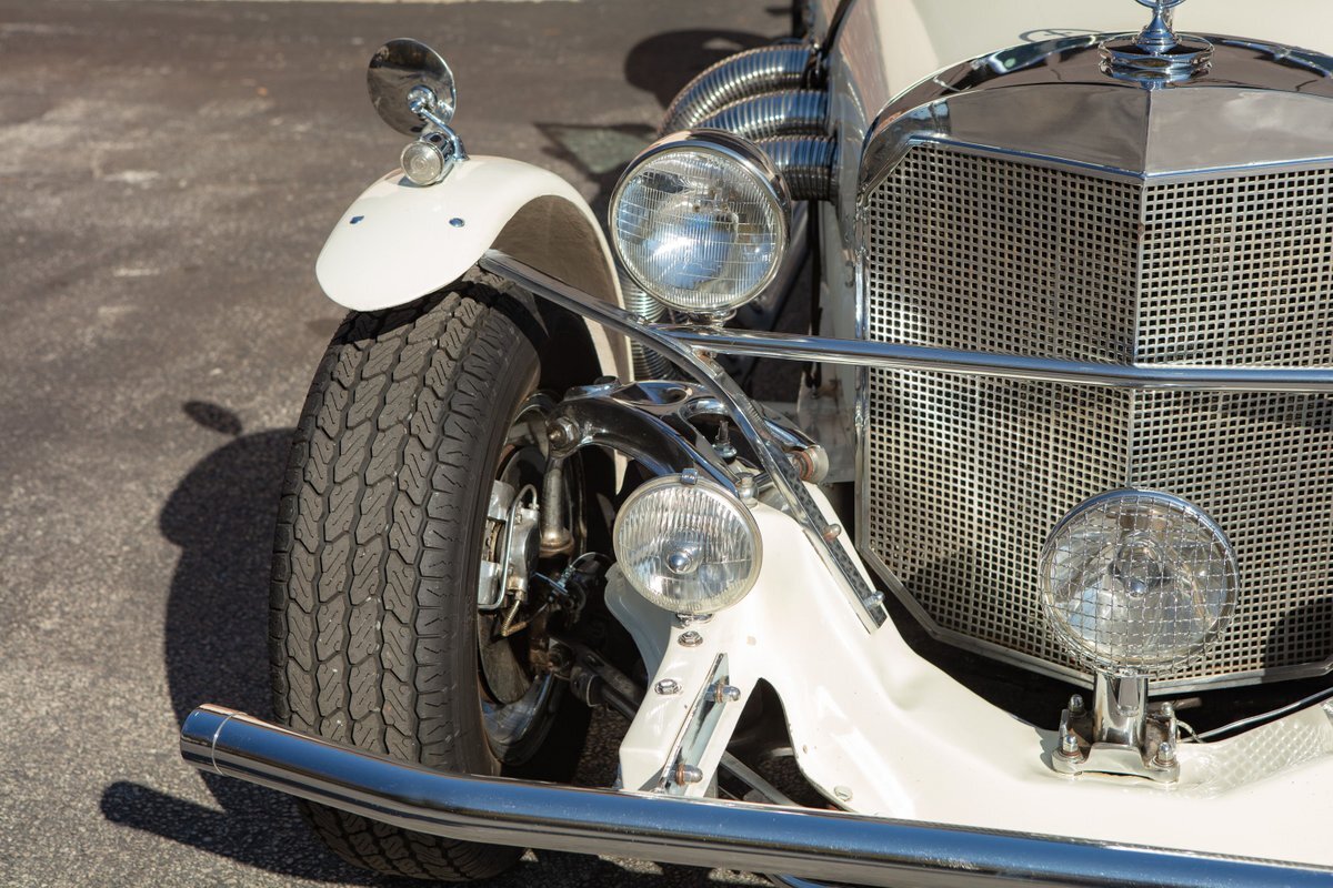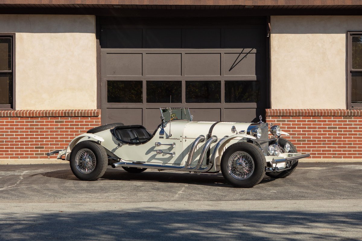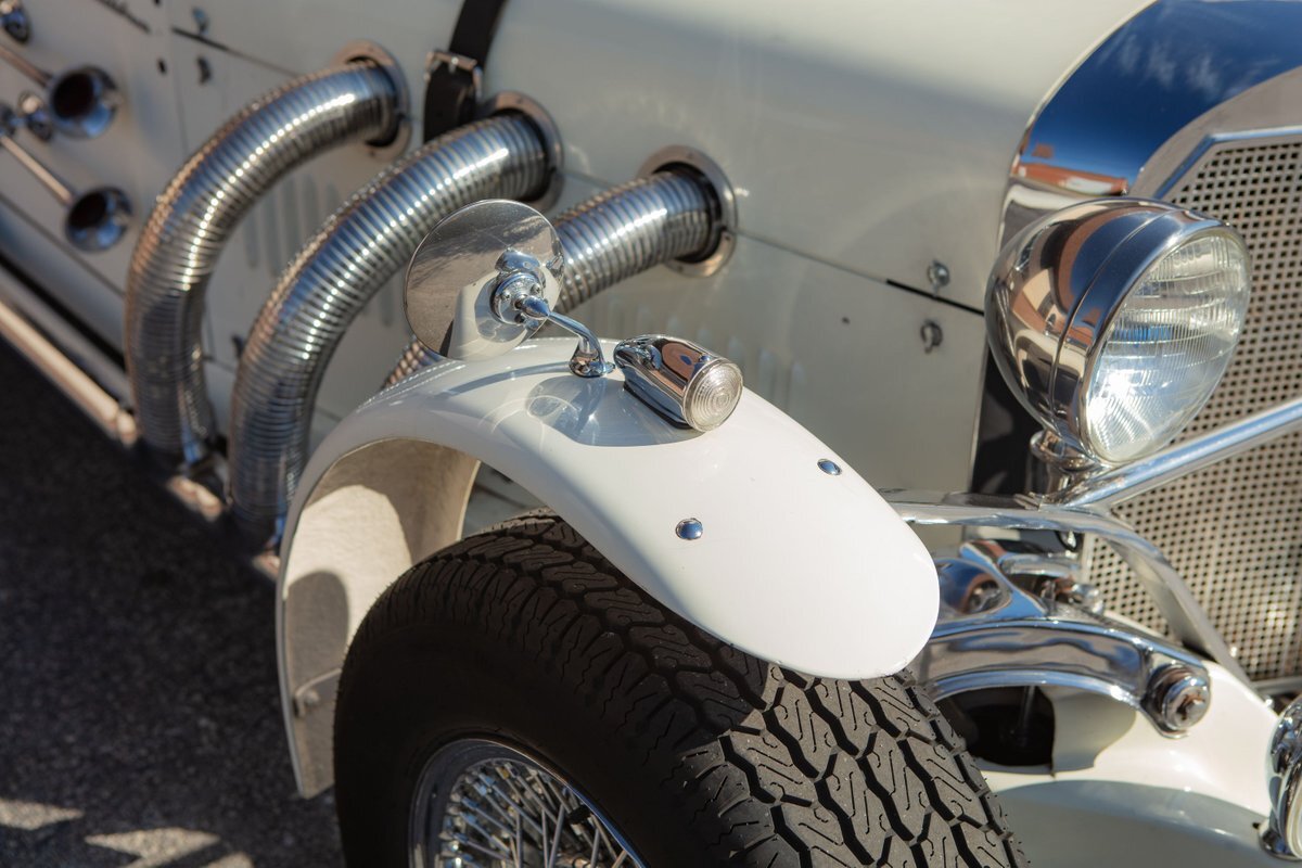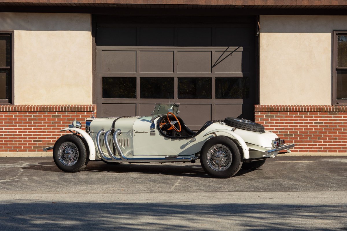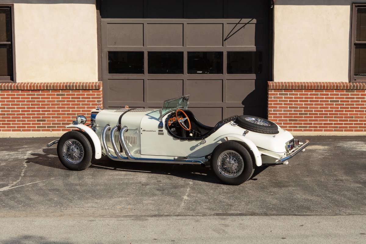 This Excalibur SSK series one-car is the ultimate Excalibur to own. It is the "no door" SSK and is powered by a Chevy 327 V8 engine with a Paxton supercharger, producing 400 HP. This power is transmitted through a Borg Warner four-speed manual transmission. Only 97 Excalibur's were built without doors, and it is believed that only between five and seven cars were factory supercharged.