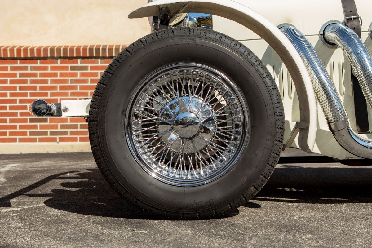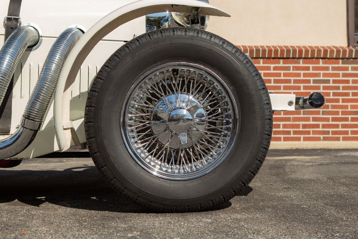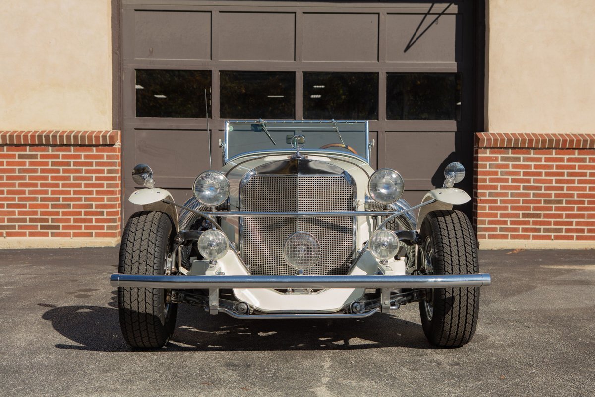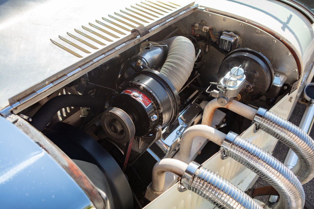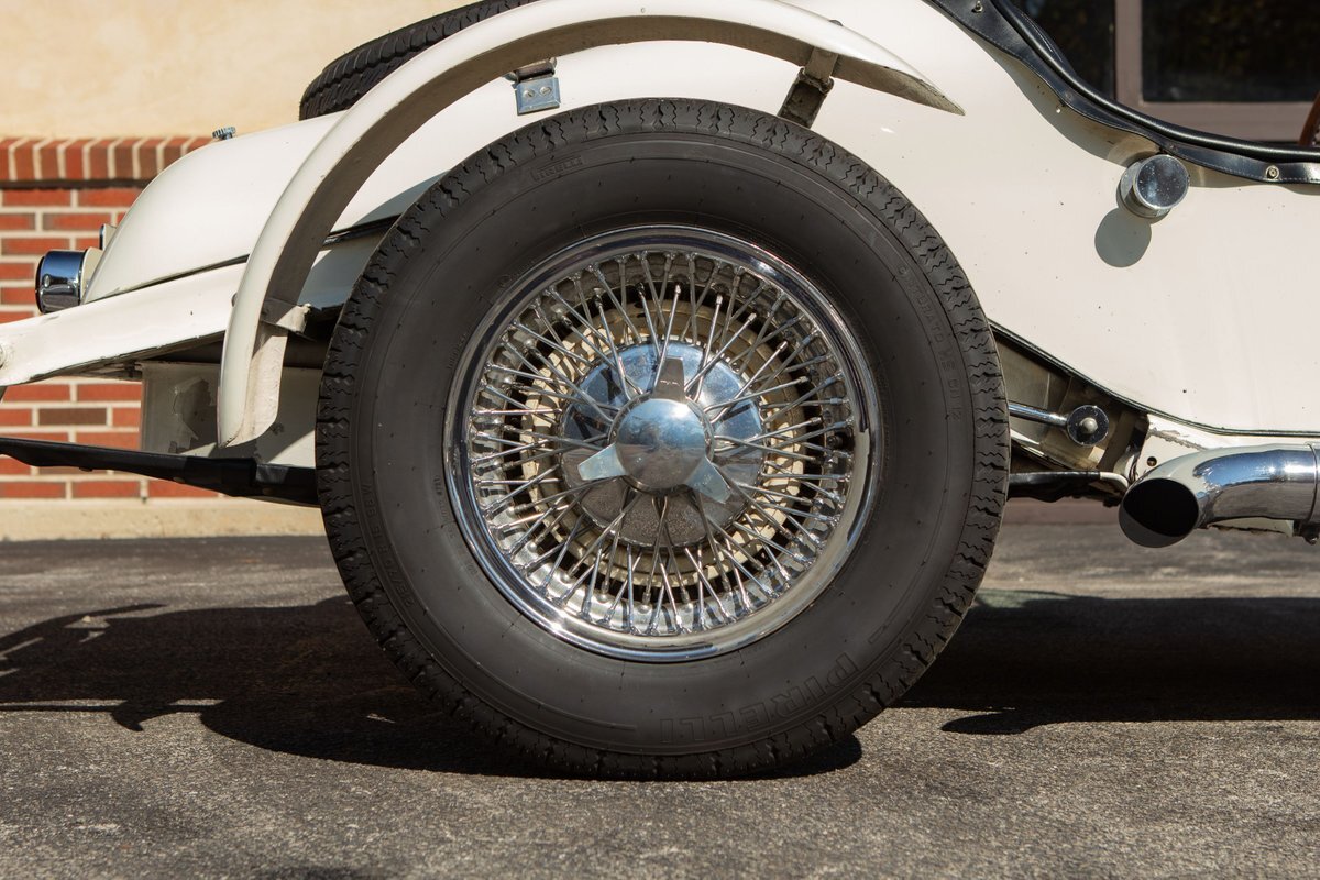 This Excalibur SSK series one-car is the ultimate Excalibur to own. It is the "no door" SSK and is powered by a Chevy 327 V8 engine with a Paxton supercharger, producing 400 HP. This power is transmitted through a Borg Warner four-speed manual transmission. Only 97 Excalibur's were built without doors, and it is believed that only between five and seven cars were factory supercharged.