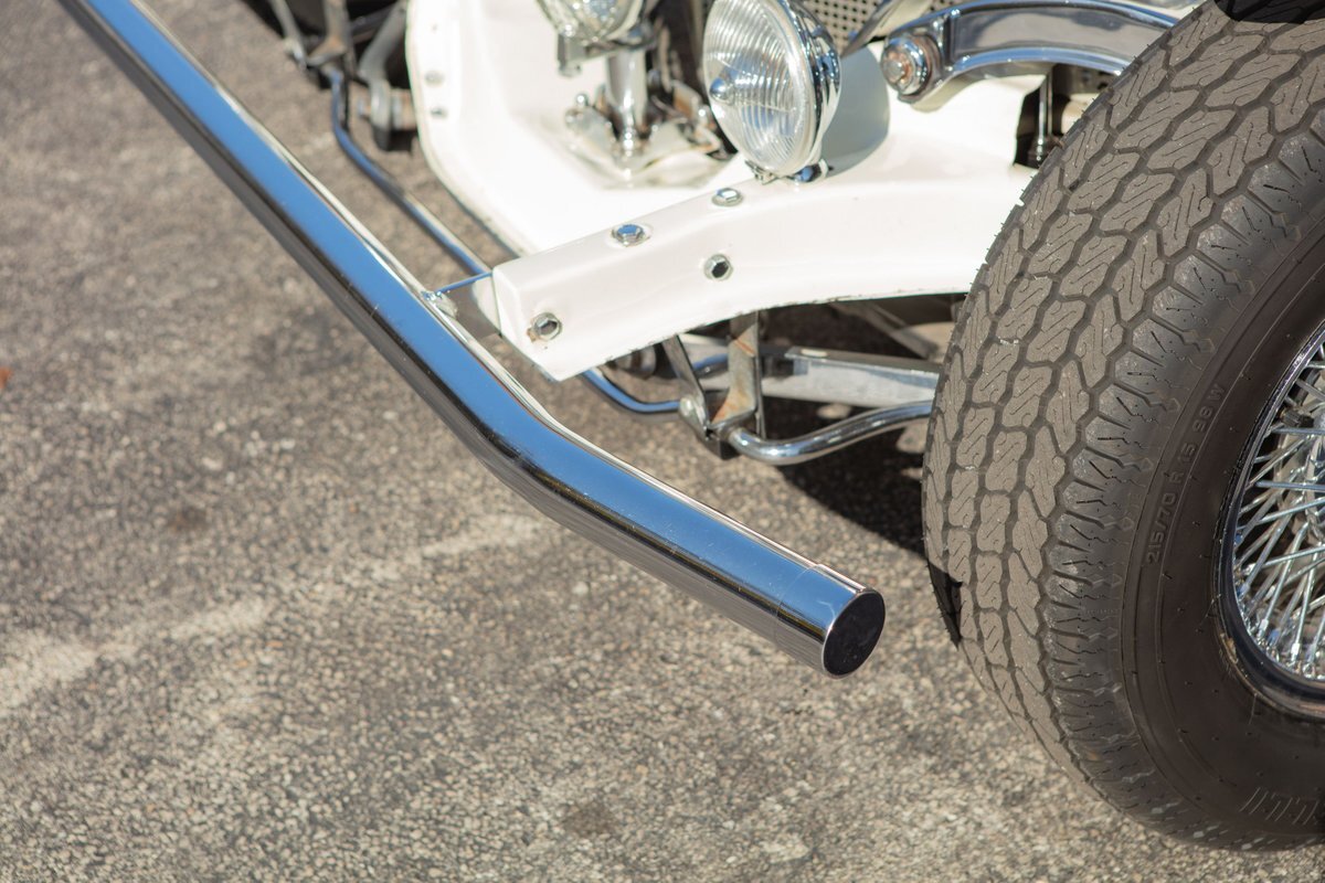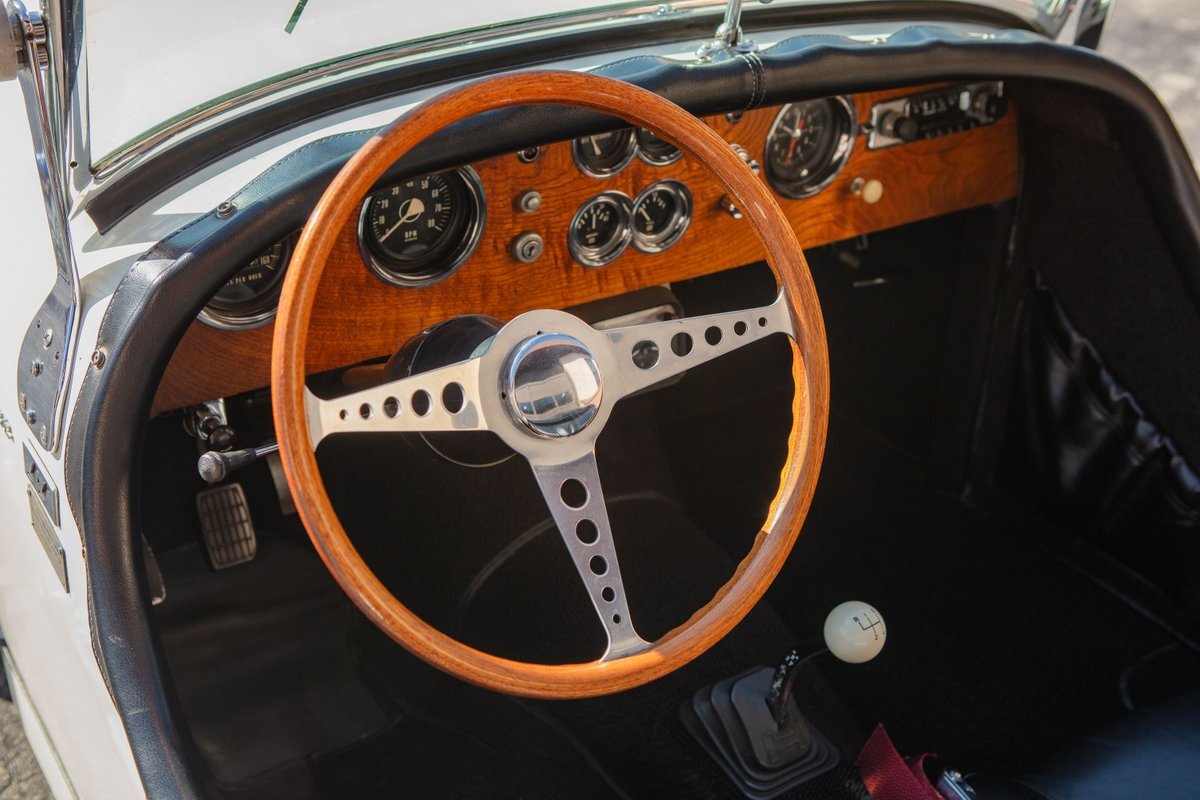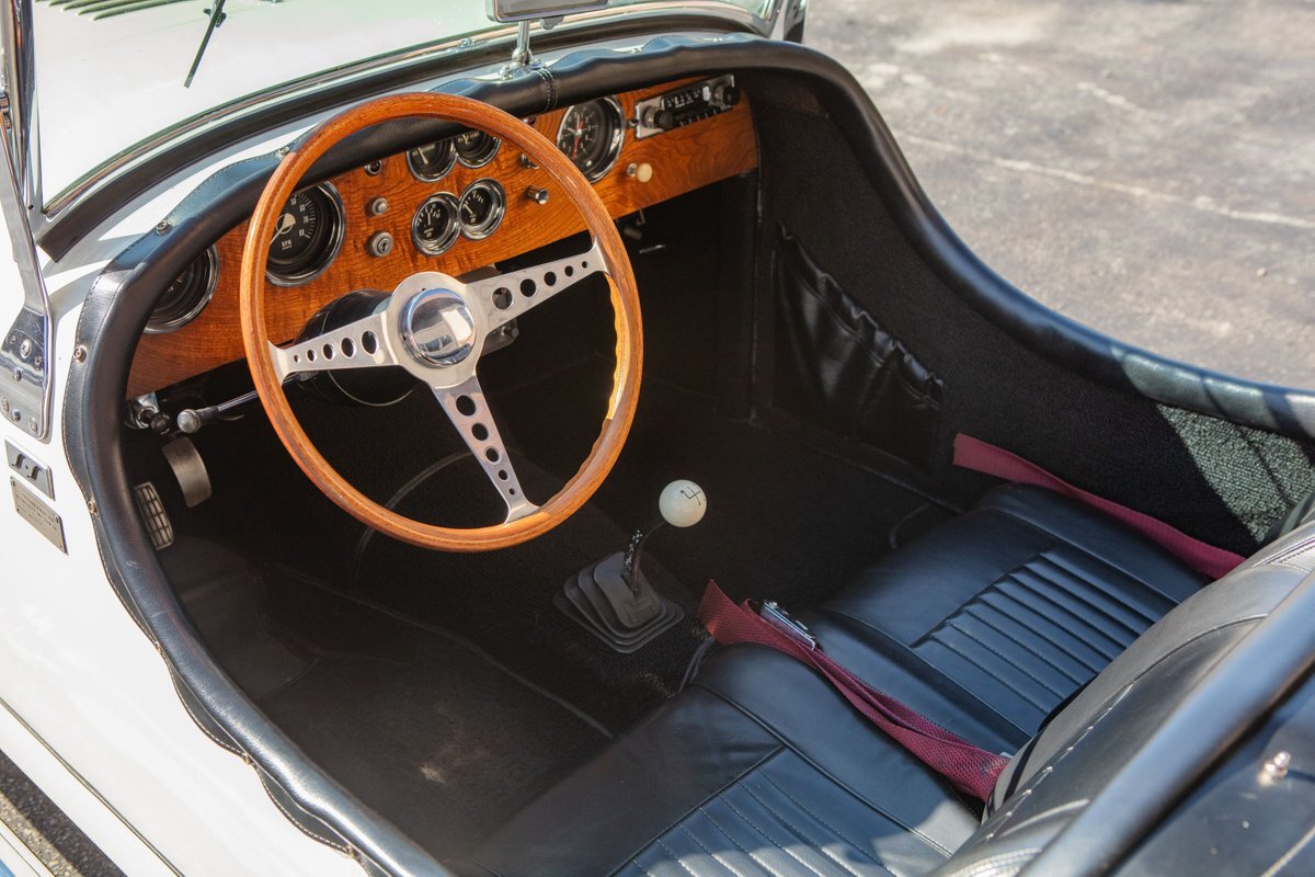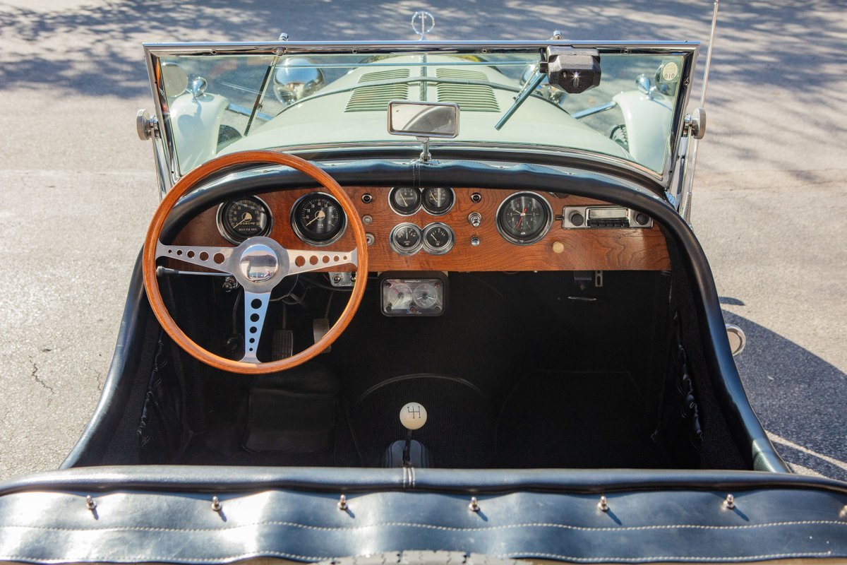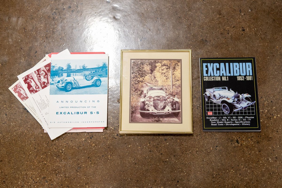 This car was originally purchased by Fred Mc Cauley, a pilot from Denver, CO. Mr. Mc Cauley shared stories of outrunning Shelby Cobras in his day, and after driving this car, we believe it. The car is extremely fast, with a 400hp engine and a weight of only about 2,000 pounds, making for an exhilarating ride. Mr. Mc Cauley also provided us with period photos of the Excalibur and a custom wood steering wheel that was fitted to the car when new. It came equipped with several optional features, including a center driving light, wind wings, air horns, heater, tonneau, tinted visors, radio, and a luggage rack. The luggage rack is included with the car, but not pictured. All of this is backed up by Mr. McCauley and the factory order sheet, with the original list price being about $8,600.
