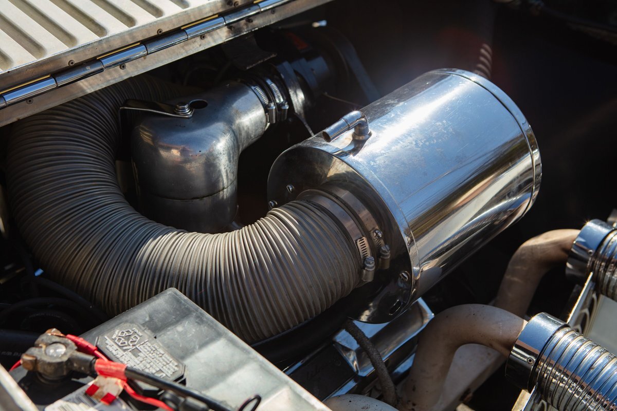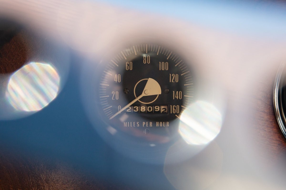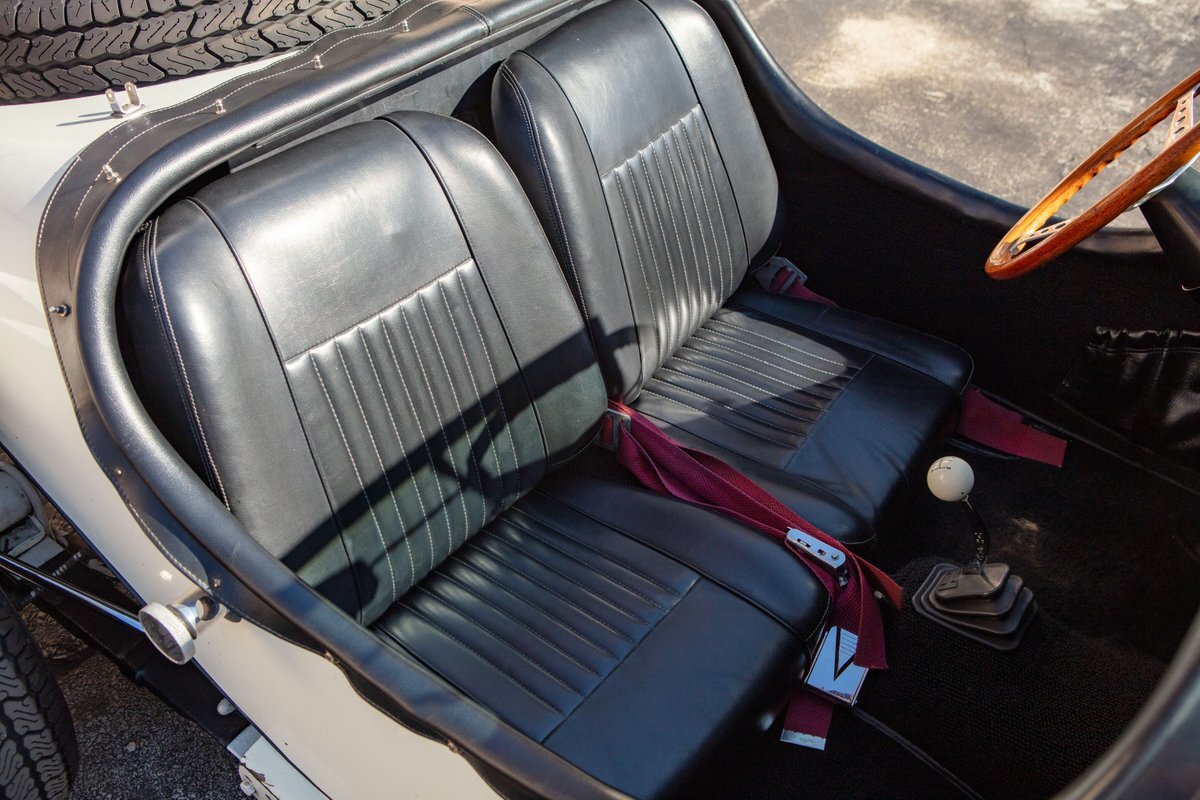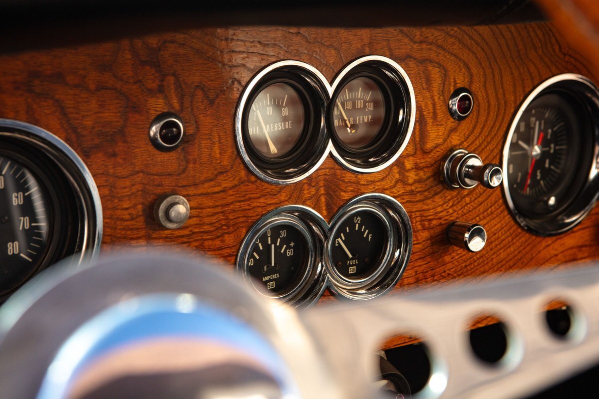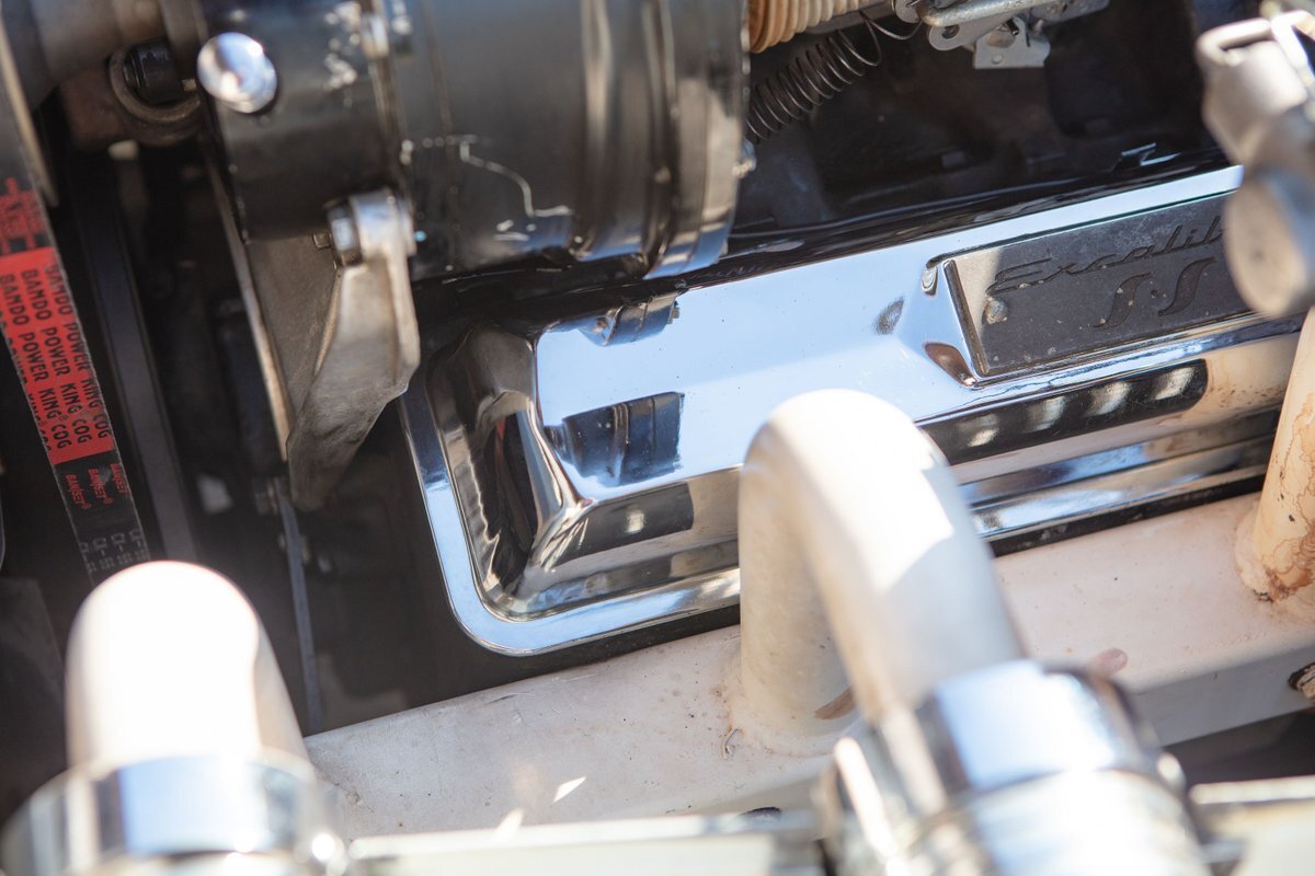 This car was originally purchased by Fred Mc Cauley, a pilot from Denver, CO. Mr. Mc Cauley shared stories of outrunning Shelby Cobras in his day, and after driving this car, we believe it. The car is extremely fast, with a 400hp engine and a weight of only about 2,000 pounds, making for an exhilarating ride. Mr. Mc Cauley also provided us with period photos of the Excalibur and a custom wood steering wheel that was fitted to the car when new. It came equipped with several optional features, including a center driving light, wind wings, air horns, heater, tonneau, tinted visors, radio, and a luggage rack. The luggage rack is included with the car, but not pictured. All of this is backed up by Mr. McCauley and the factory order sheet, with the original list price being about $8,600.