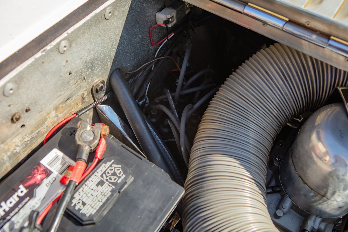 The car is in impeccable condition. The original paint is still intact, and the interior and carpets are excellent. It's evident that the car was kept in a garage since it was new. We have recently given the car a thorough servicing, which included the replacement of brake drums and brake shoes, new brake lines, and a flush system. We also replaced the clutch master cylinder, upgraded the ignition system to MSD (hidden box), replaced spark plugs, replaced the carburetor with the proper one and tuned it, replaced the 5 inner exhaust pipes and insulation installed new valve cover gaskets, changed the oil, and replaced the wipers. We also replaced the contact and wiring for the lights, among other things. The total cost of the services performed was over $17k.
