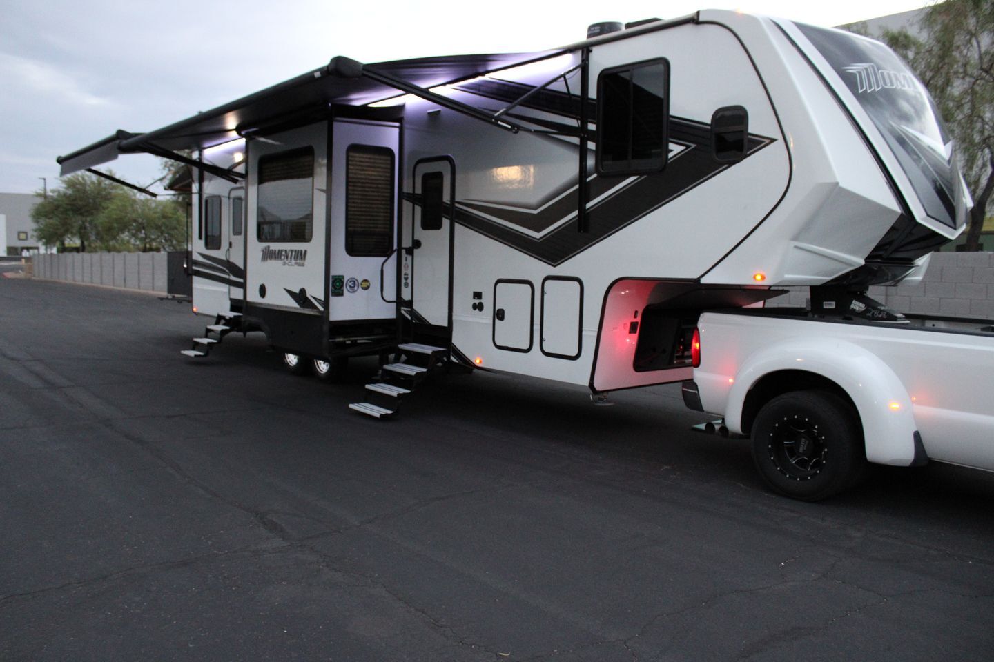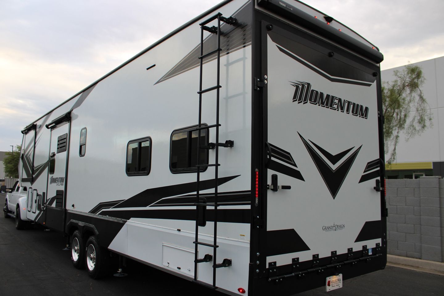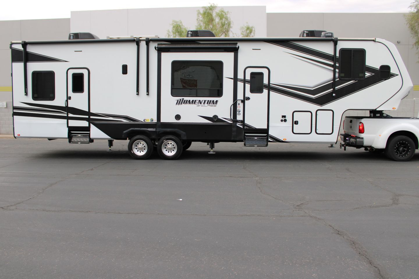 Arizona Classic Car Sales is thrilled to offer this amazing 2022 Momentum by Grand Design 350G 3 slide toy hauler. This is practically brand new with only 27 hours on the 5500 Onan generator and used twice..!! The actual pictures don't do this justice.! Rear bathroom, 3 A/C units, 3 TV,s , 4 Door Fridge, 6 Point Auto Levelers, Indoor / Outdoor Stereo, Rear Patio W/ Awning, Rear Sliding Doors, 2 Side Entry Doors, No Pets, Non-Smokers,  AND MORE..!! This is being sold due to an untimely death. Don't hesitate to make an offer..!  No Sales Tax.! Title in hand and ready to go..!!