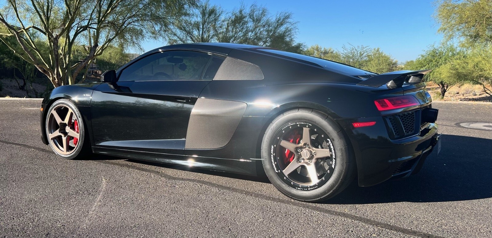 2017 Audi R8 V10 Plus Twin TurboMythos Black Metallic/black diamond stitched leather15,100 milesAll original paint, no paintwork, clean Carfax, Full front PPFVIN WUAKBAFX8H7903130Sheepey Elite 1500 package. (1500 WHP E85/800WHP Pump Gas) Map switching has settings 1-8. Car drives like stock and has no issues whatsoever. Near perfect condition. Car is setup for flex fuel but I have only run Ignite Red fuel for safety. Car has been to the 1/2 mile and 1/4 mile once. Did 207 mph in the 1/2 on setting 7 of 8. Car went 8.40@170mph in the 1/4 mile also on setting 7 of 8. I have videos of both for interested buyers. Car needs nothing. This is my second SheepeyRace built R8 and both have performed flawlessly. R8 Build: Sheepey Race Elite 1500 package Precision 6466 TurbosDual Turbosmart Gen V HypergatesDual Turbosmart Gen V BOV’sAir to Water IntercoolersHandcrafted Heat ExchangersExternal Water Tank w/55gpm pumpAll lines & fittings an/tested to 300psiProprietary TCU flash by UnitronicMotec M142 R8/Huracan kit w/ level 3 upgradeFlex fuel upgradeElement Fire Suppression KitSheepeyrace Billet Intake ManifoldTransmission: Sheepeyrace version 5 DL800 Trans buildDodson Promax 9 plate clutchDodson Billet Clutch CoverOne piece Billet Drive GearDodson Billet Outer CageDodson Billet A & B Clutch Basket AssemblyDodson Billet Full Gearset (1-7)Dodson Mag Speed Sensor (odd)Dodson Mag Speed Sensor (even)Dodson Mainshaft Case PlugDodson Billet Ring and PinionBillet StubsWavetrac ATB LSD for DL800Propietary Sheepeyrace Gear ModificationOther:Map Selection Ability to remote tune and datalogAuto UpshiftRolling Anti-lagTrue Flex FuelEthanol Content DisplayH&R Suspension (car is lowered about 1”)Wheels/Tires:Forgeline CF1R wheels with 19” w/Toyo R888R (front)Forgeline CF1R Beadlock with 18” w/MT ET Street SS (rear)Wheels and tires are brand new with about 100 miles on themFull expel on front end of car