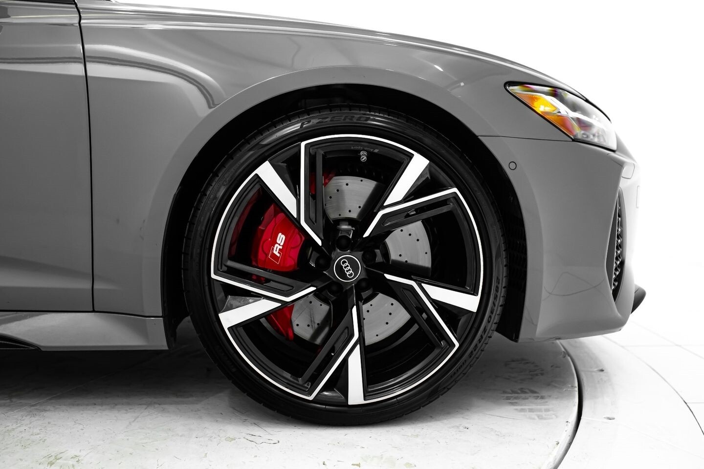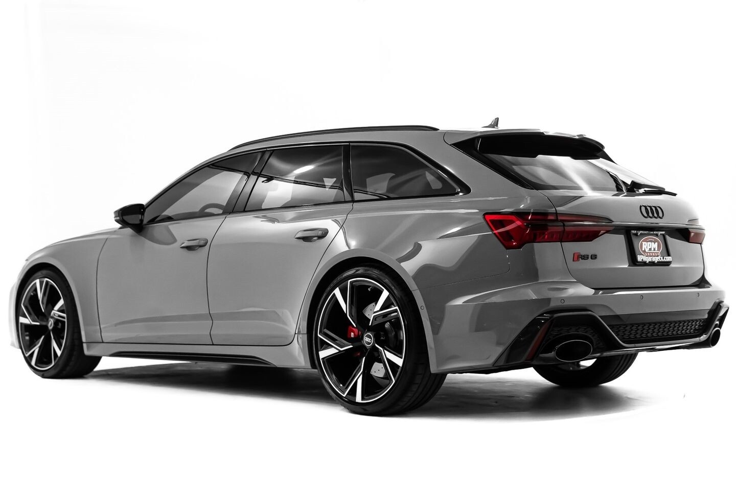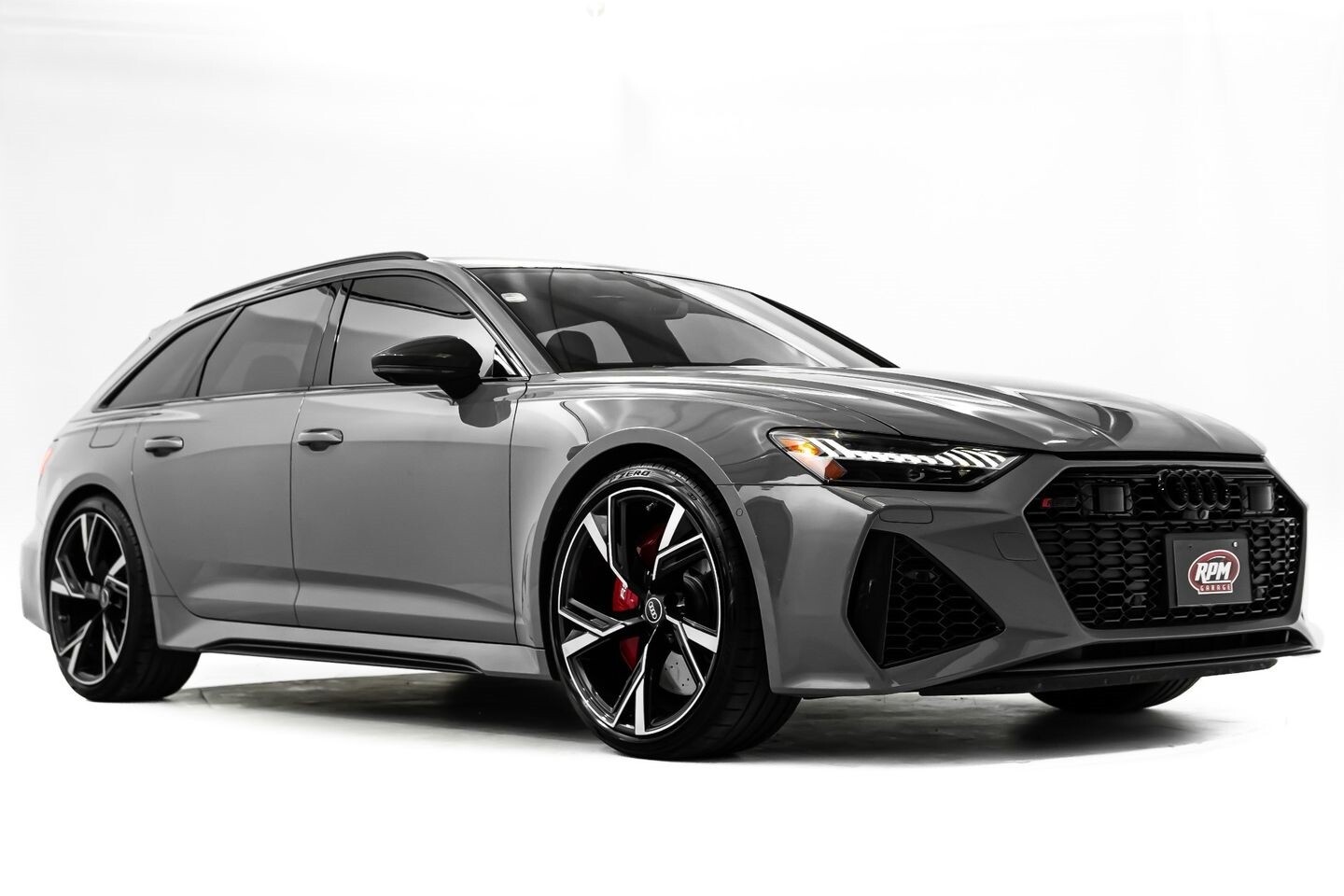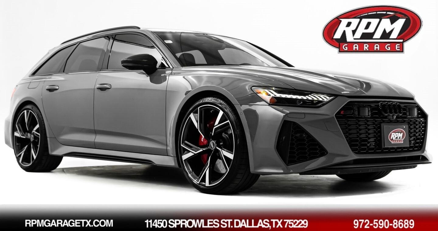 This 2023 Audi RS 6 Avant is the high-performance wagon outfitted with several amenities and features. Under the hood is a twin-turbocharged 4.0-liter V8 engine that produces 591 horsepower and 590 lb-ft of torque, all of which is sent through a eight-speed automatic transmission to all four wheels. The engine also produces an outrageous sound through the factory valved exhaust system, increasing the likelihood that this car will turn heads. This sleek vehicle comes equipped with 22" OEM Audi wheels and is finished in Nardo Gray, which has been protected by a full layer of Xpel paint protection film. In the interior, this RS 6 Avant offers heated and ventilated leather "RS" bucket seats, heated rear seats, a digital gauge cluster with multiple displays, digital climate controls, a heads-up display, selectable drive modes, multi-zone A/C, and an infotainment system with Bluetooth, navigation, apps, climate controls, phone connectivity, AUX, Apple CarPlay, Android Auto, a 360-degree camera, a backup camera, a front camera, a side camera, and multi-angle cameras, truly making this car the complete package.