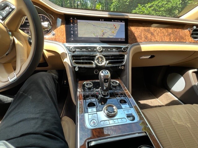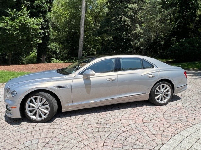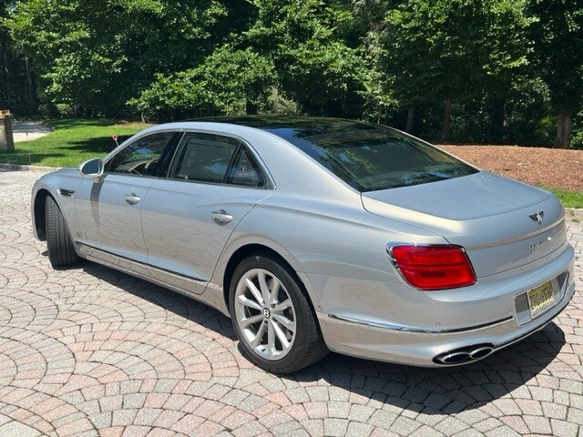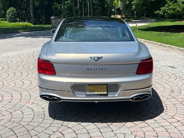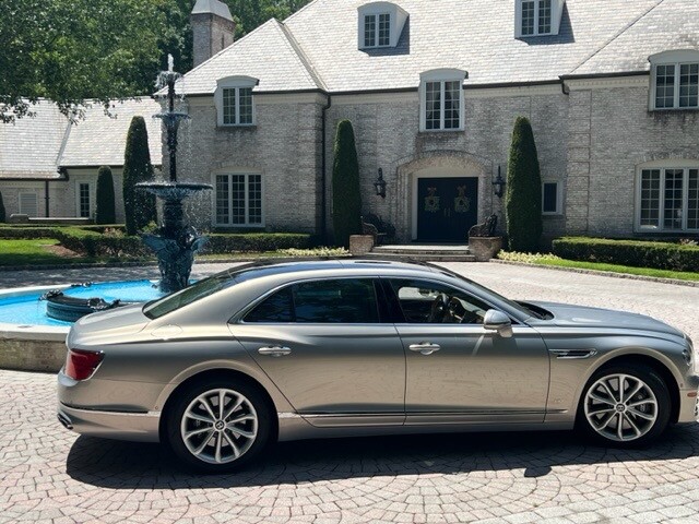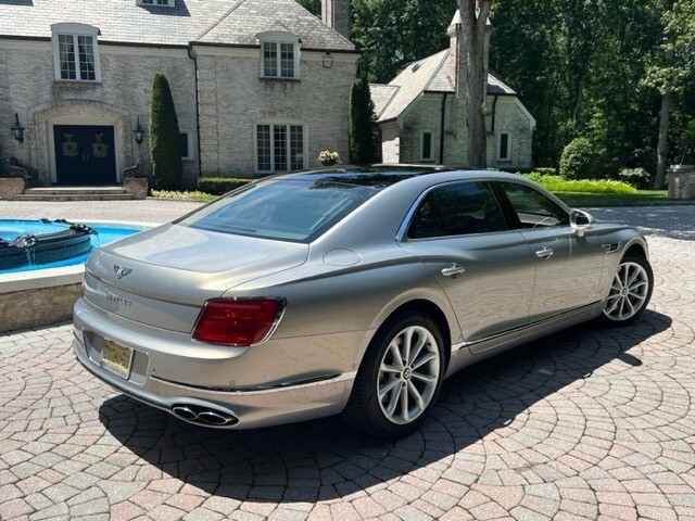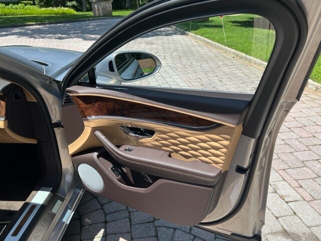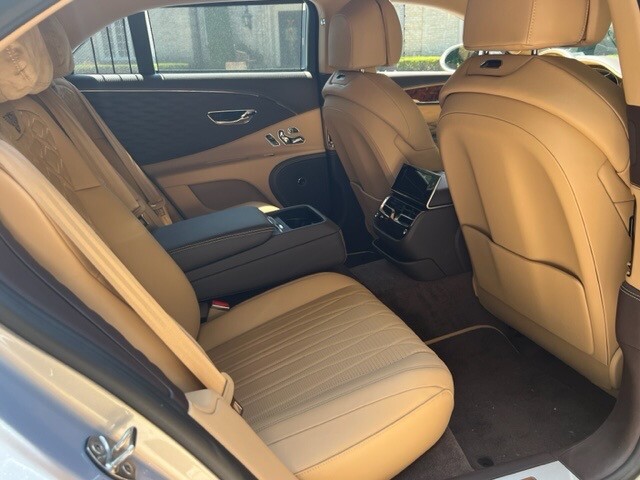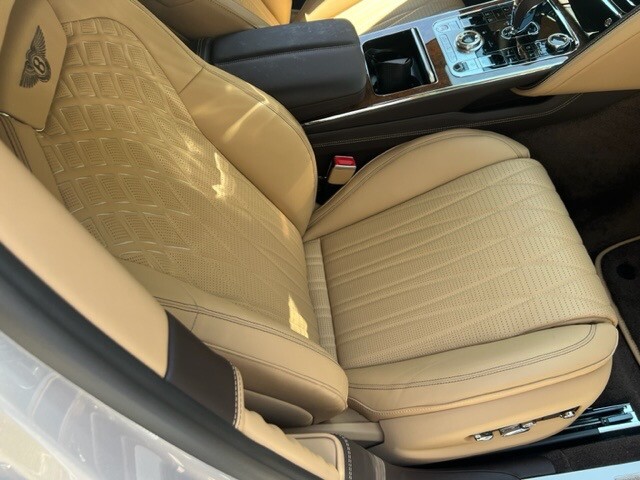Exterior: The White Sand Metallic paint exudes elegance and sophistication, setting this Flying Spur apart from the rest. The iconic Bentley grille, LED matrix headlamps, and gleaming chrome accents accentuate its timeless design.
