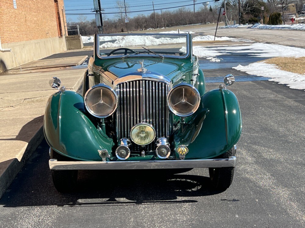 This 1936 Derby Bentley 4 1/4 Litre with Disappearing Drophead Coupe Body by Gurney Nutting is an extremely rare and desirable discovery that's been unknown and hidden away for decades. Green with tan leather interior, this handsome Derby Bentley is the perfect candidate and original car for a Pebble Beach restoration. Mechanically