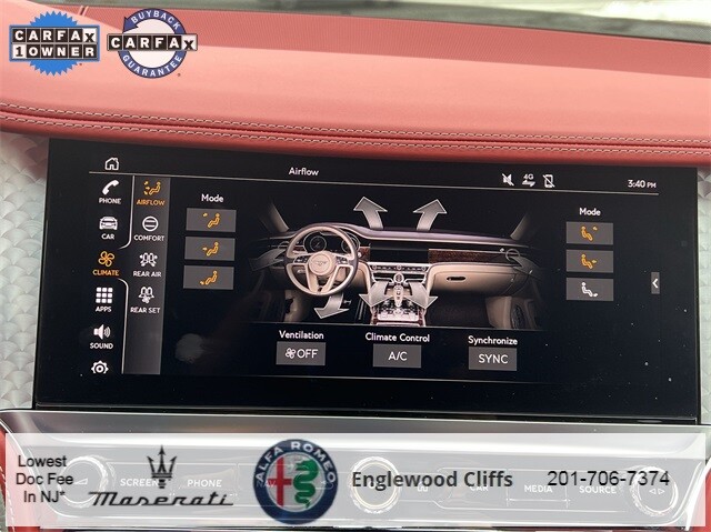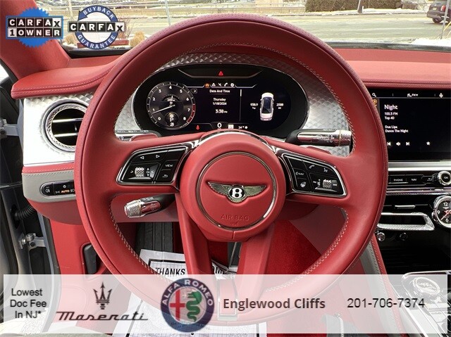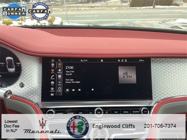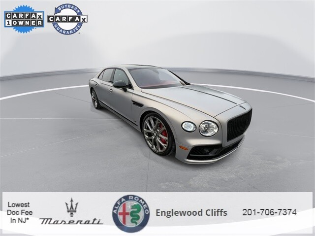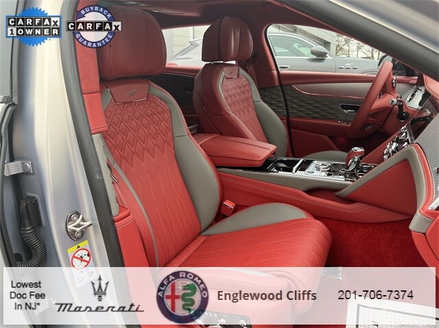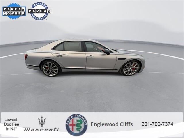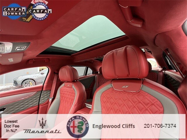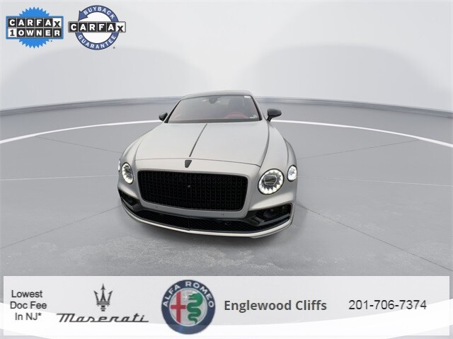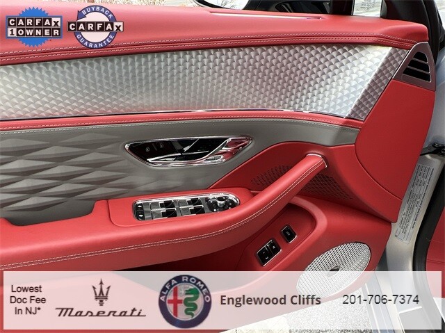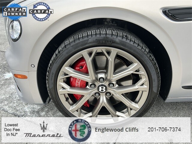 This Flying Spur S is nicely equipped with 10 Speakers, 4-Wheel Disc Brakes, ABS brakes, Adaptive suspension, Air Conditioning, Alloy wheels, AM/FM radio, Anti-whiplash front head restraints, Apple Carplay, Auto High-beam Headlights, Auto-dimming door mirrors, Auto-dimming Rear-View mirror, Auto-leveling suspension, Automatic temperature control, Brake assist, Bumpers: body-color, Compass, Door auto-latch, Driver door bin, Driver vanity mirror, Dual front impact airbags, Dual front side impact airbags, DVD-Audio, Electronic Stability Control, Emergency communication system, Exterior Parking Camera Rear, Four wheel independent suspension, Front anti-roll bar, Front Bucket Seats, Front Center Armrest w/Storage, Front dual zone A/C, Front fog lights, Front reading lights, Fully automatic headlights, Heated door mirrors, Heated front seats, Heated rear seats, Heated steering wheel, Illuminated entry, Leather Seat Trim, Leather steering wheel, Low tire pressure warning, Memory seat, Navigation System, Occupant sensing airbag, Outside temperature display, Overhead airbag, Overhead console, Passenger door bin, Passenger vanity mirror, Power adjustable front head restraints, Power adjustable rear head restraints, Power door mirrors, Power driver seat, Power passenger seat, Power steering, Power windows, Radio data system, Radio: AM/FM Digital/Satellite, Rain sensing wipers, Rear air conditioning, Rear anti-roll bar, Rear audio controls, Rear dual zone A/C, Rear fog lights, Rear reading lights, Rear seat center armrest, Rear side impact airbag, Rear window defroster, Remote CD player, Remote keyless entry, Security system, Speed control, Speed-sensing steering, Speed-Sensitive Wipers, Steering wheel memory, Steering wheel mounted audio controls, Tachometer, Telescoping steering wheel, Tilt steering wheel, Traction control, Trip computer, Turn signal indicator mirrors, Variably intermittent wipers, Ventilated front seats, Ventilated rear seats, and Wheels: 21 5 Tri-Spoke Gloss Black & Bright Machined.