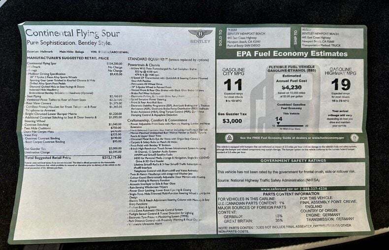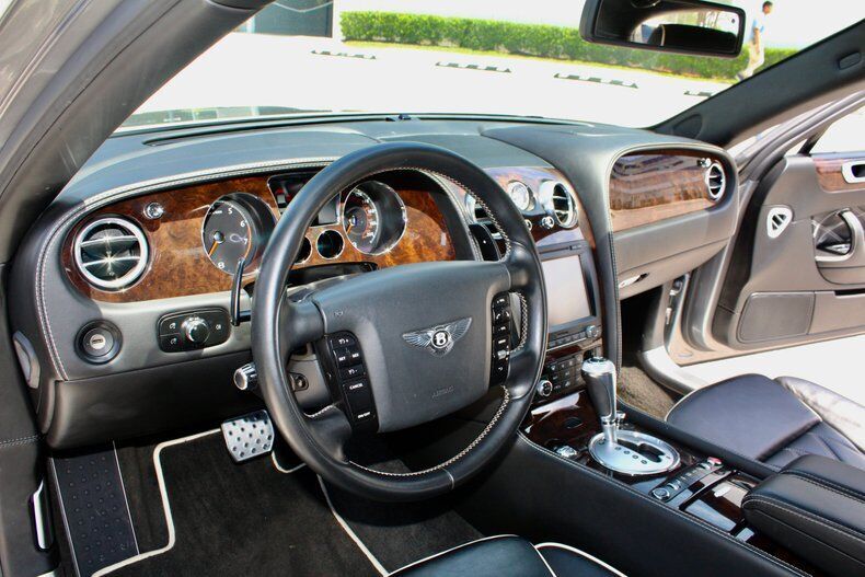 2012 Bentley Continental Flying Spur This 2012 Flying Spur factory equipment includes the Mulliner Driving Specification, bi-xenon headlights, soft-close doors, leather upholstery, power-adjustable heated front seats, power-adjustable rear seats, rear picnic tables, a 4-zone automatic climate control. Power comes from a twin-turbocharged 6.0-liter W12, rated at 552 horsepower and 479 lb-ft of torque. Output is sent to all four wheels via a 6-speed automatic transmission and a permanent all-wheel drive system. Mulliner Driving Specification (20-inch 7-spoke wheels, sporting gear lever with knurled chrome and leather, drilled sport pedals, diamond-quilted seating surfaces and door panels, embroidered Bentley badges on the headrests, indented leather headliner) Carfax history report shows no accidents or mileage discrepancies in this Flying Spur's past. It also confirms that this Bentley is a three-owner car. Silver exterior over black leather interior A partial list of notable equipment includes: aˆc Adjustable air suspension with adaptive dampers aˆc Bi-xenon headlights with washers aˆc Power-operated sunroof aˆc Soft-close doors and trunk aˆc Leather upholstery aˆc Burred Walnut veneer interior trim aˆc Chromed metal bulls-eye air vents with organ stop controls aˆc Deep pile carpets aˆc Power-adjustable heated front seats aˆc Power-adjustable rear seats aˆc Rear picnic tables aˆc Infotainment system with an 8-inch touchscreen display aˆc 12-speaker, 10-channel sound system aˆc Navigation system aˆc 4-zone automatic climate control aˆc Rear-view camera aˆc Park Distance Control aˆc Rain-sensing windscreen wipers aˆc Cruise control Call us at941-208-6886, a live person answers the phones from 9am - 9pm (EST) Financing is available on our website We can ship this vehicle world wide door to door Our indoor showroom is located at 7910 25th Court East Unit 107 Sarasota, FL 34243