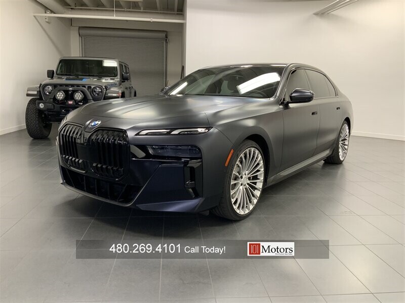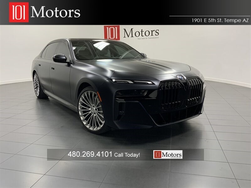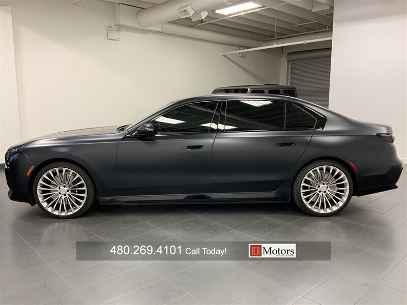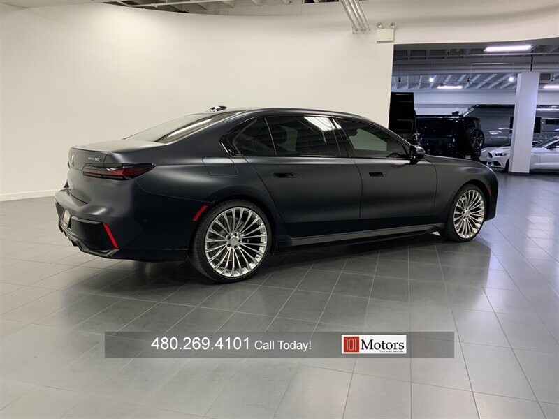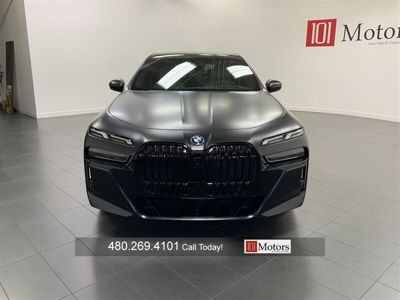 101 Motors is proud to present this stunning 2023 BMW i7 xDrive60 finished in Carbon Black Metallic wrapped in Kavaca Matte Paint Protection Film. This dual-motor electric luxury sedan makes 536 horsepower and earns an EPA estimated 308 miles of range on a full charge. This i7 sits on 22 inch Breyton wheels wrapped in Pirelli P Zero performance tires. Extended Merino Leather, M Sport Package, surround view w/ 3D, carbon fiber trim, head-up display, panoramic roof and much more. You don’t want to miss this incredible opportunity, call today!!