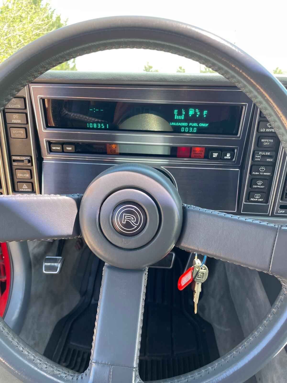 Red with perfect grey leather interior. 100% stock with no modifications. With the exception of window tint. Original sales receipt and all original book work. (Including Buick ink pen) Complete and comprehensive folder of receipts. Brand new rims bought from Buick with brand new Uniroyal tires put on recently. I have the original wheels and tires the may come with it if you figure out the logistics of shipping. Also has locking wheel lugs.Seller's Notes