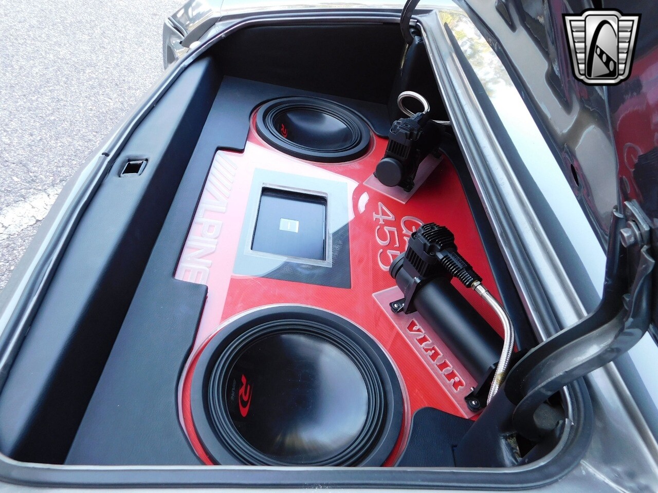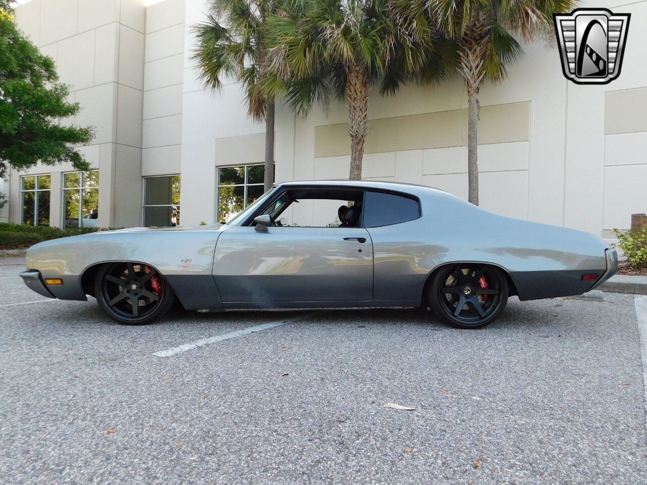 Gateway Classic Cars of Tampa is proud to offer this super slick 1972 Buick GS. A great deal of time and effort went into building this highly custom GS restomod. The seller states the car was completely disassembled and restored using only top shelf parts such as Wildwood brakes, Hotchkis suspension, and Acuair E leveling air ride. Each body panel was professionally prepped, sprayed with PPG Gray Metallic paint, and polished to a beautiful luster. Under the hood, you'll find a fresh 455 w/ TA roller rockers and a large cam with heavier pushrods. The seller states is built to 1970 specs, and backed by the bullet proof Turbo 400 transmission, and a Strange built Dana rear differential. This sinister GS rides on air and adjusts to your liking with just the simple push of a button. Inside the driver's quarters, you'll find custom black leather interior, full Alpine audio, and a 10'' screen for your Nav system. Worried about the heat? No need to be as the aluminum radiator and electric fans keep the big block cool outside and Vintage Air keeps you nice and comfortable inside. If you're looking for classic car design with modern day amenities then look no further. [ omitted ]. [ omitted ]. Our Tampa Showroom is located at 361 30th Street NE Ruskin, FL 33570. [ omitted ].