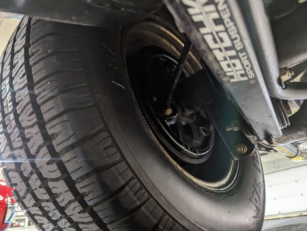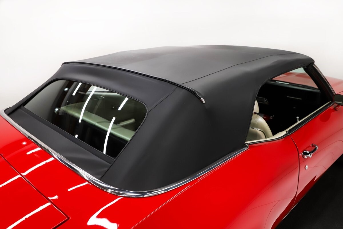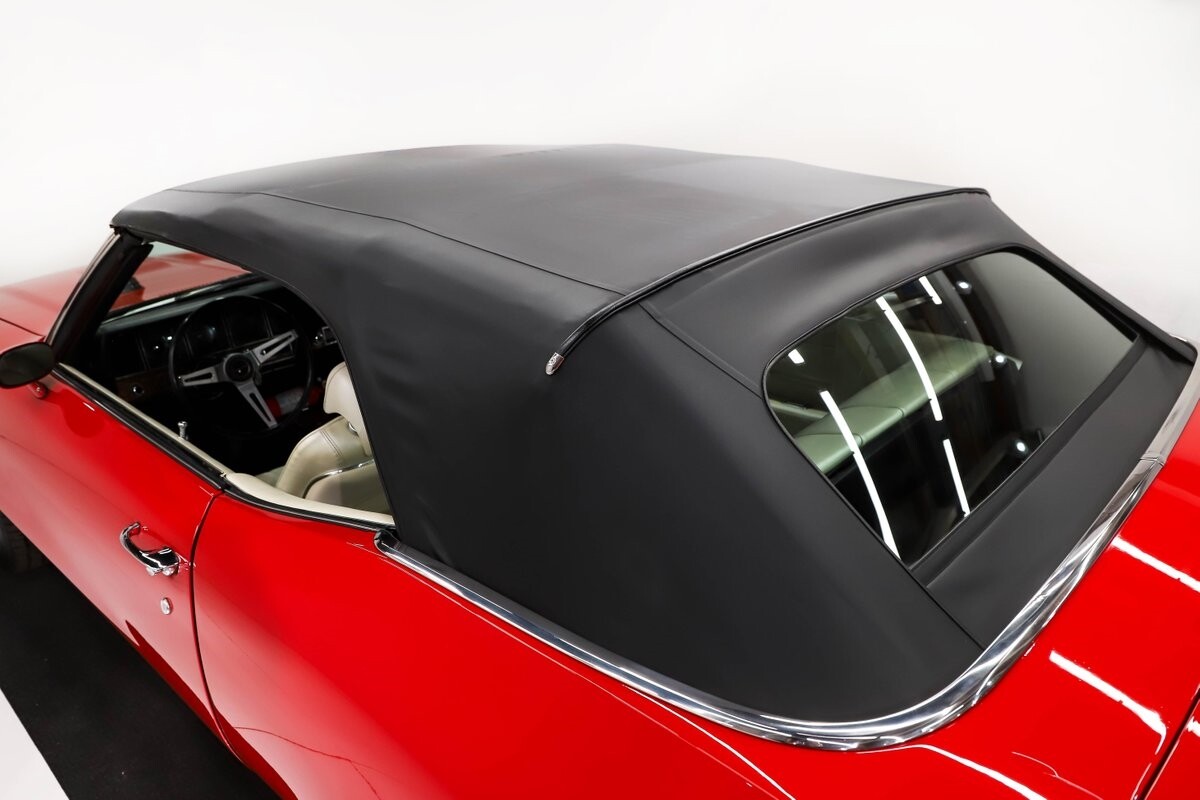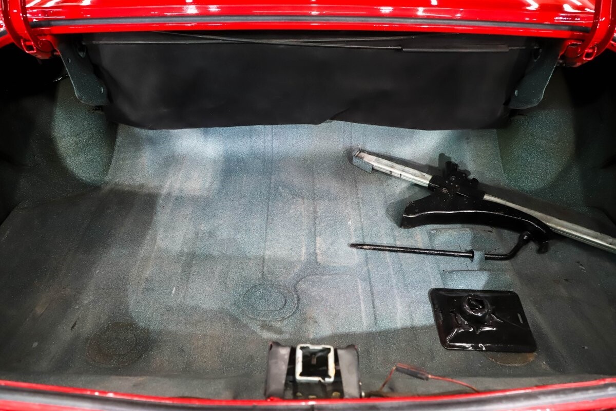 TRUNK COMPARTMENT: The underside of the lid and jamb have both been painted body color and are smooth and shiny just like the exterior. A reproduction sticker was added and the well liner and weatherstrip was replaced. Inside is clean, and solid painted with a factory style spatter paint. A jack assembly and lug wrench are included.