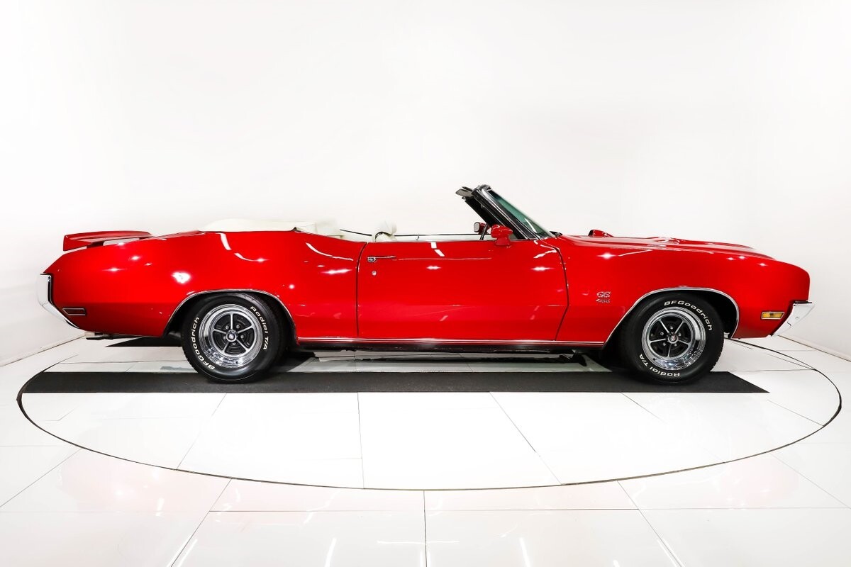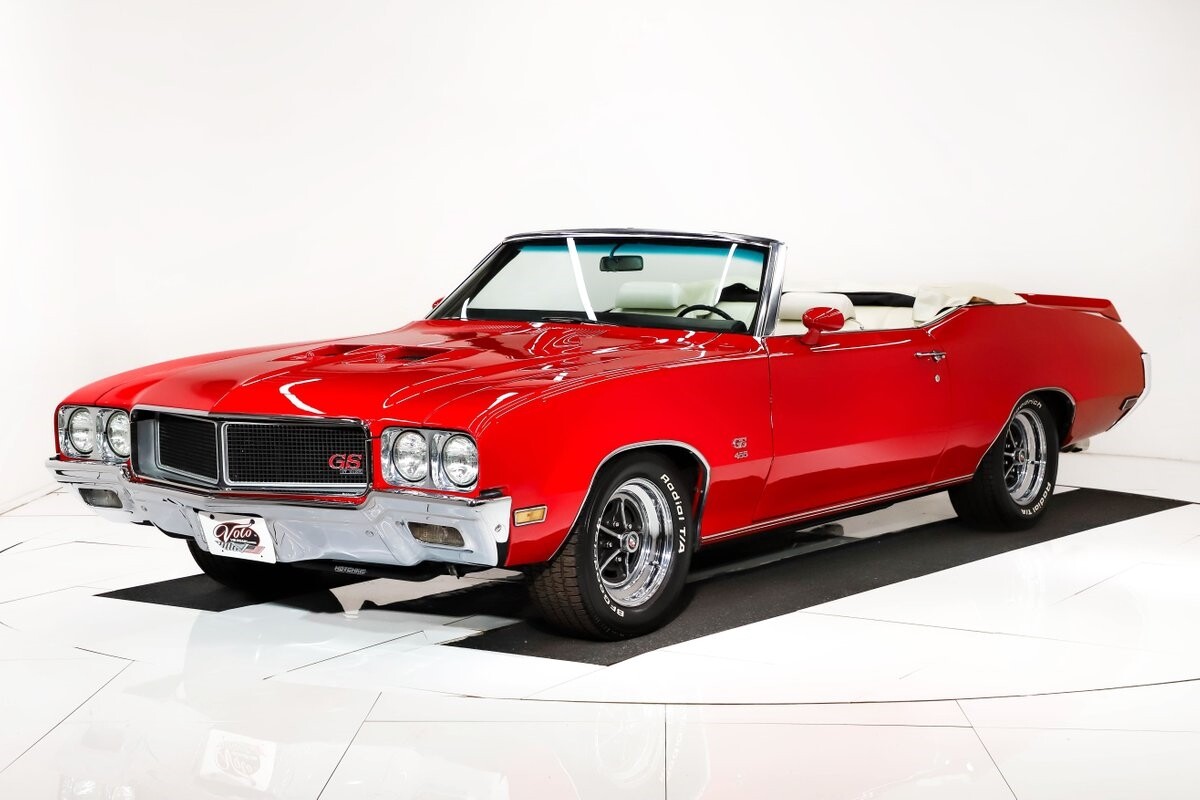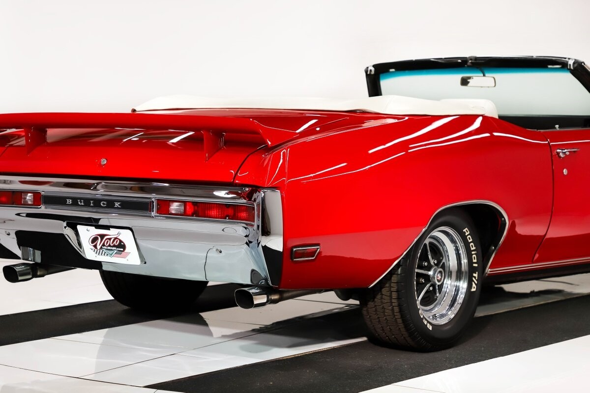 EXTERIOR: These rare factory colors are verified by the cowl tag. Whoever ordered this car definitely chose wisely! Not your standard brown or cream colored Buick. The paint on this car looks fabulous! It was sprayed with great attention to detail and is laid out nicely. It was then wet sanded and polished to a very reflective and smooth finish. Looking down the side of the body It is laser straight. The panels are all aligned nicely and even the big heavy doors don't sag when opened and closes easily like a new car. It has dual sport mirrors and a rear spoiler that are painted body color. The functioning ram air hood also has a tachometer mounted to it that is functioning. The black power top has been replaced and is in very nice shape. The convertible boot is Pearl Ivory color and matches the interior as it should. The grille appears to be real nice. The front and rear bumpers have been rechromed, emblems and the rest of the trim is in great shape. It has factory style 15 inch chrome Buick mags wrapped in BFG radial T/A tires with raised white lettering.