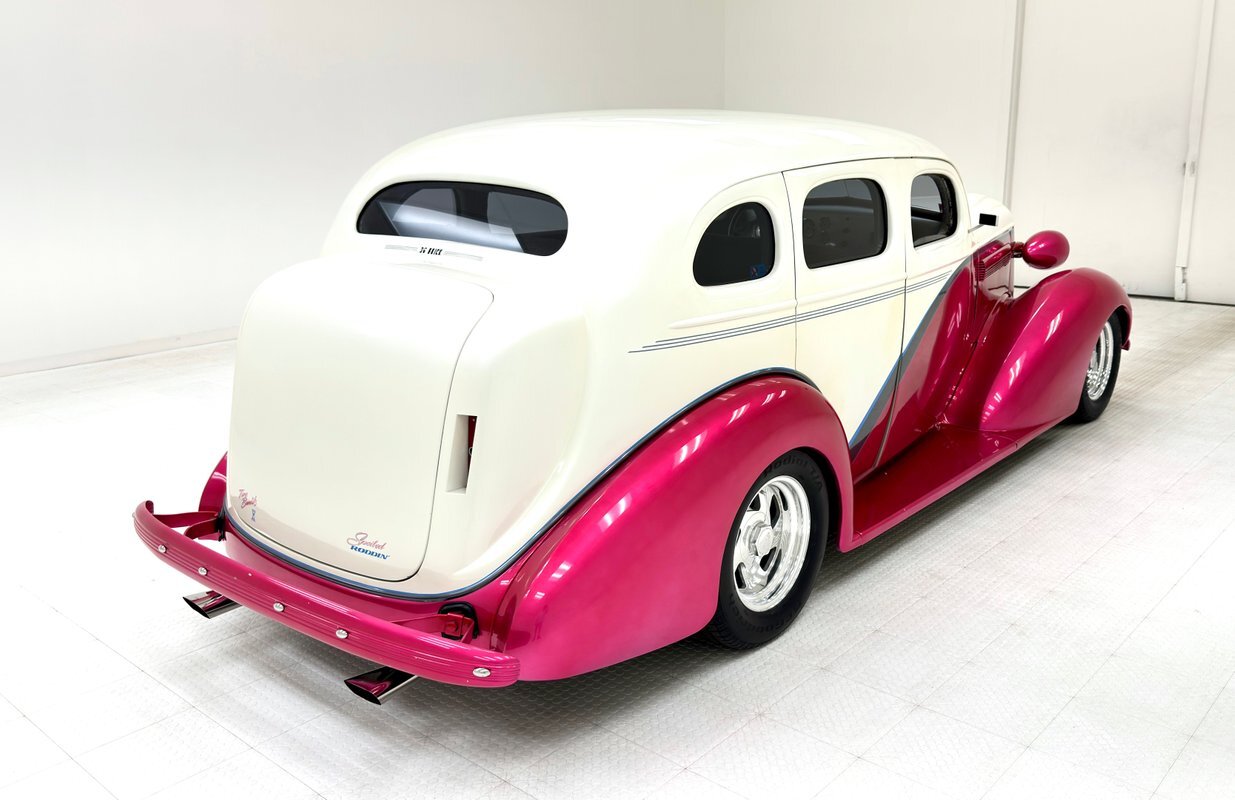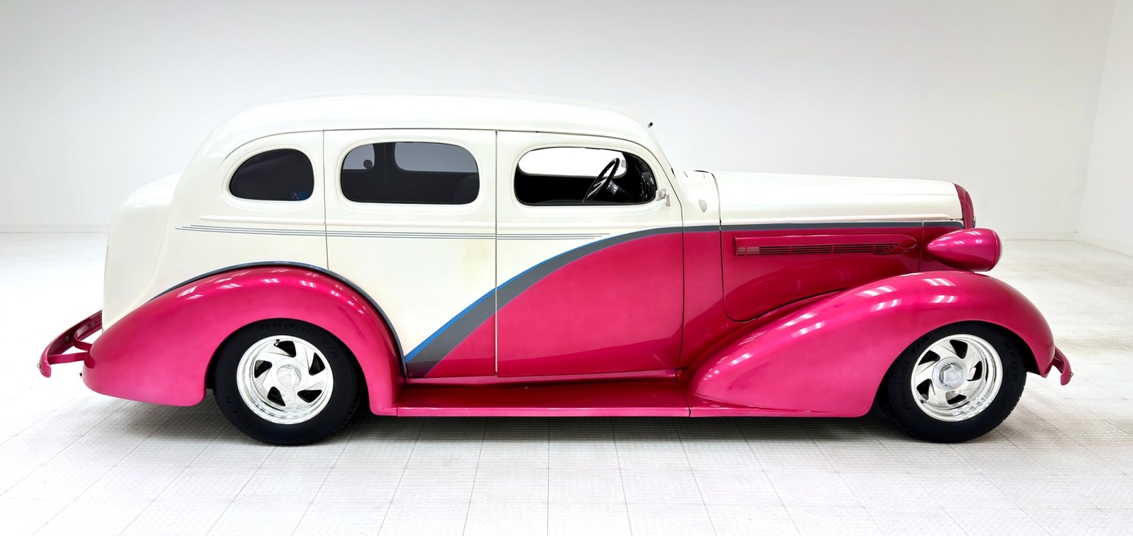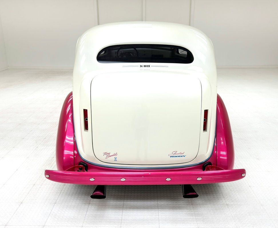 What's pink and white and tweed all over? This amazing '36 Buick Special. It's big, it's bright, and it's got room for your whole family including cousins and their luggage! It has a spectacular presence and will never be able to sneak into shows, or anywhere for that matter. A beautiful street rod that is looking for a new garage.