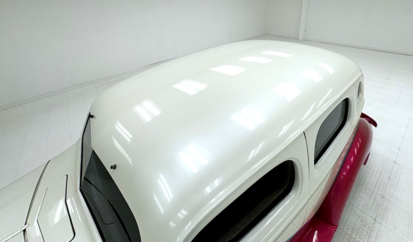 For consignment, a 1936 Buick Series 40 Special 4 door sedan that's been reborn as a street rod. It will come with a folder of build receipts and photos so you can see how it went from cool old car to super rad show car that's been chopped, frenched, shaved, lowered, and painted in colors and patterns that would have not entered the American psyche in 1936. In fact, shades of gray, beige, dark blues, dark greens, and of course black were the primary choices back in the day.