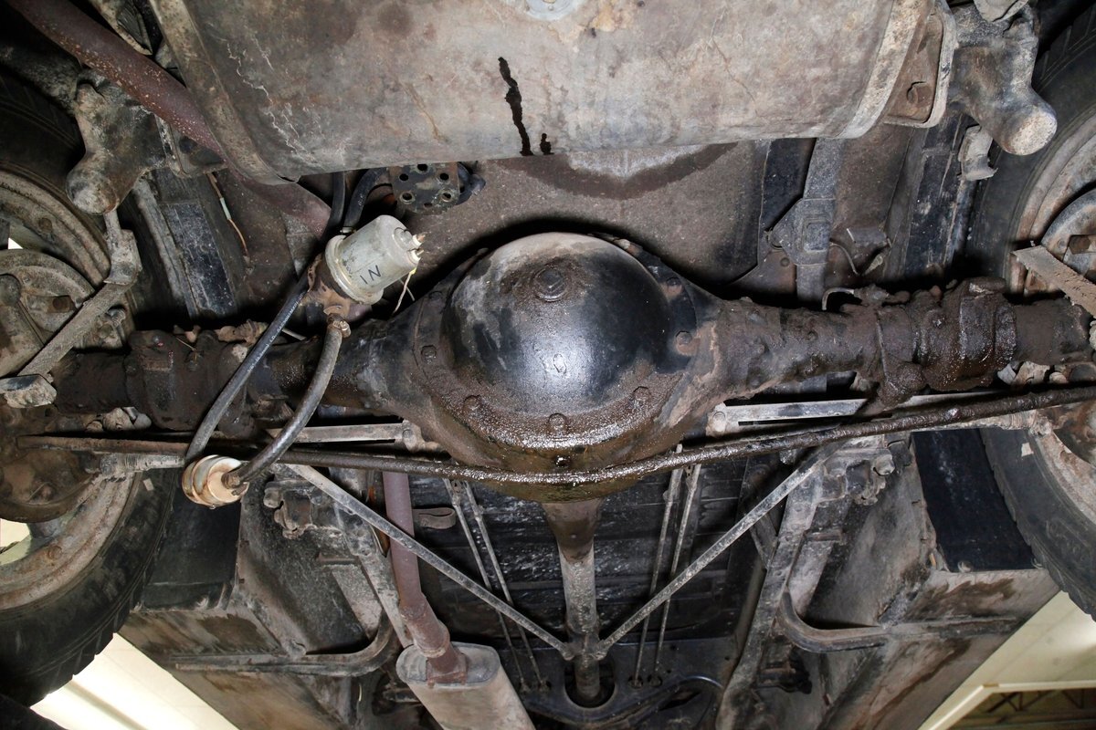 Under the cowled hood is an inline 6 cylinder in 239.1ci. It has a 1-barrel carburetor and a selective sliding gear 3 speed manual transmission. 4.90 is the rear axle on this model.