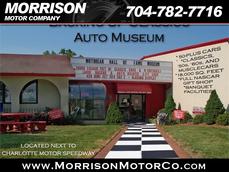 Located just 10 minutes north of Charlotte Motor Speedway in the heart of NASCAR racing country, this family-owned business has been a vital part of the local automotive scene since its founding in 1970. The modest lot - packed to capacity with Corvettes, Mustangs, Camaros, Harleys, trucks and SUVs - is a "must-see" stop for any performance enthusiasts visiting the area. It is the goal of this Web site to display the entire Morrison inventory in an up-to-date fashion; however, should you have a question about a car, truck or bike not represented on these pages, please call (704) 782-7716 or e-mail one of the Morrison staff.