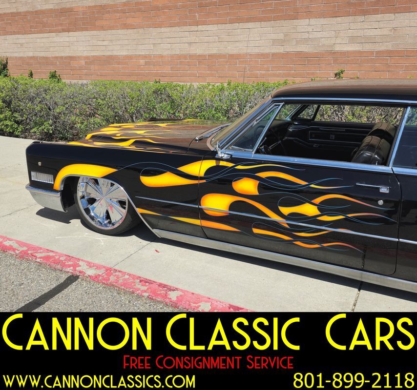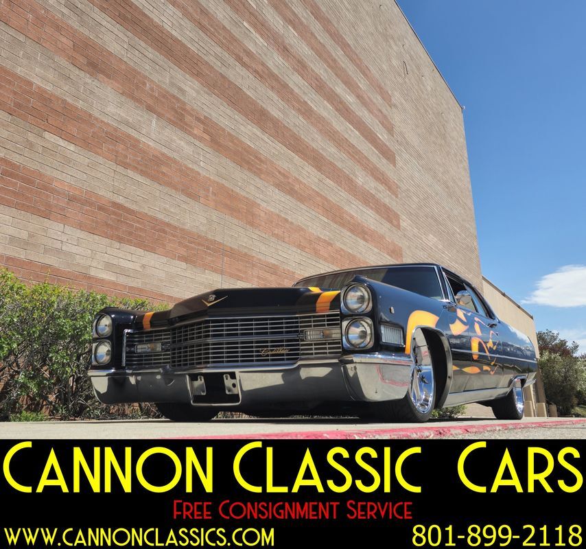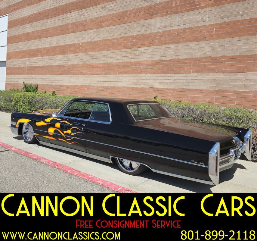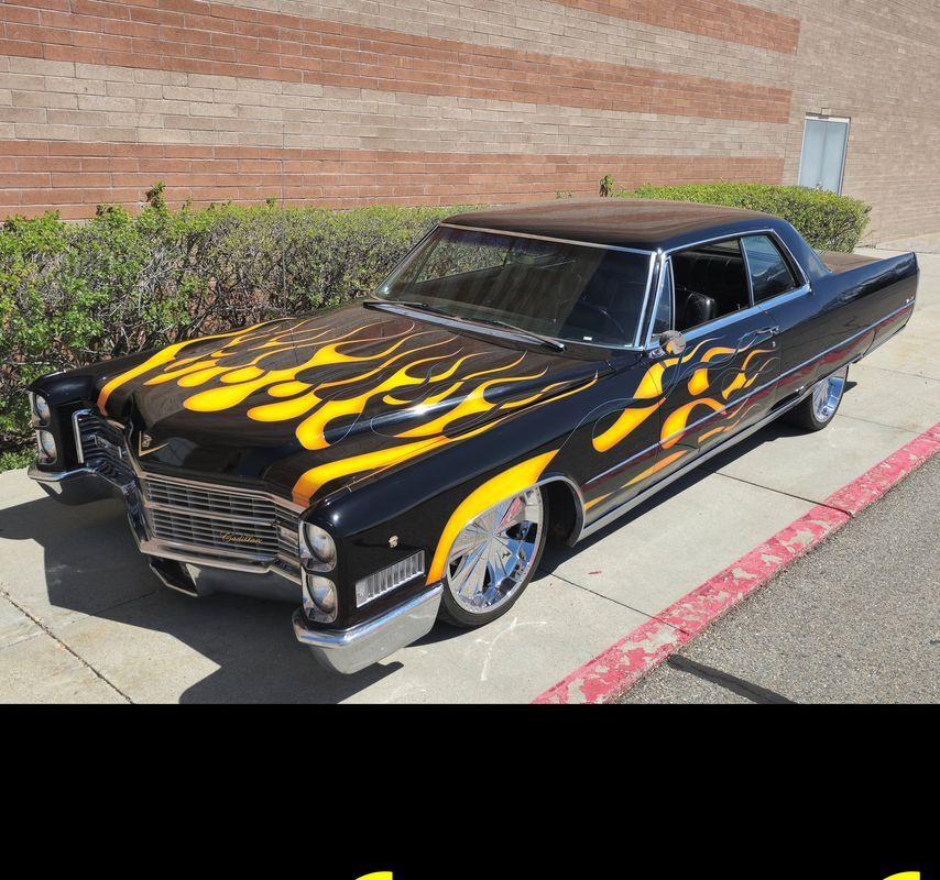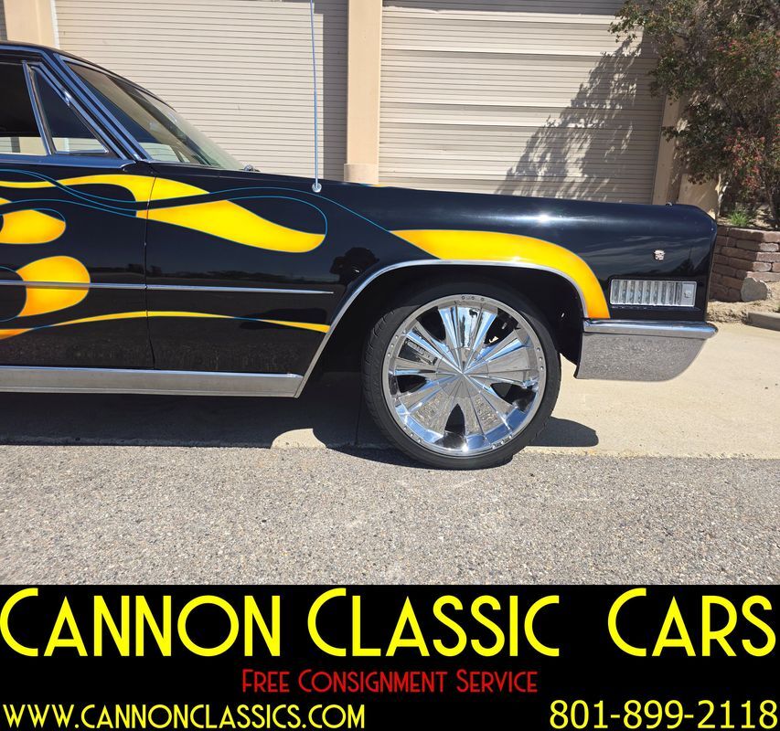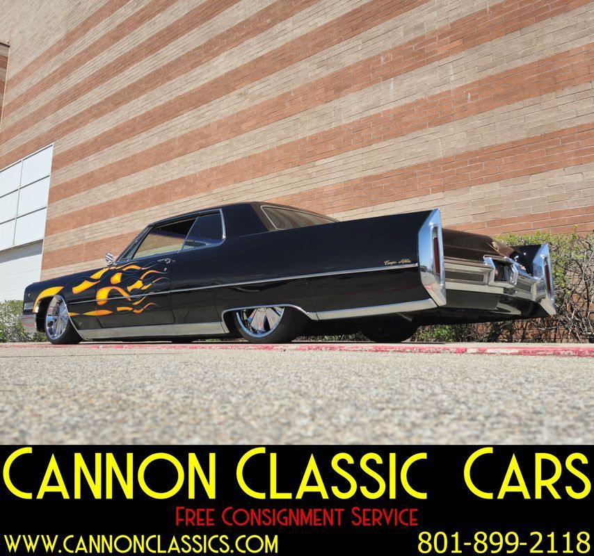 Step into the world of classic luxury with this unique 1966 Cadillac De Ville coupe. This striking 2-door coupe features hand-painted flames and rides on 21' chrome wheels. Equipped with an air suspension system both front and rear, controlled manually from inside the car, it promises a smooth and adjustable ride. Recently, the air bags and suspension lines were replaced for optimal performance.