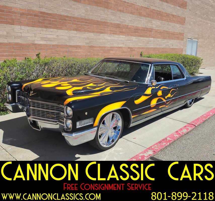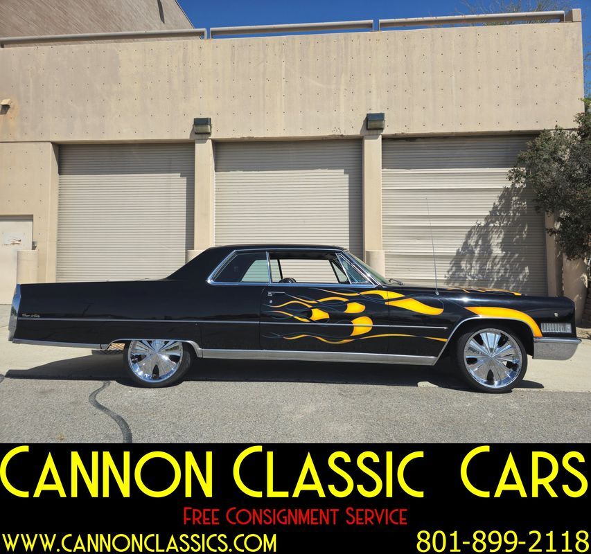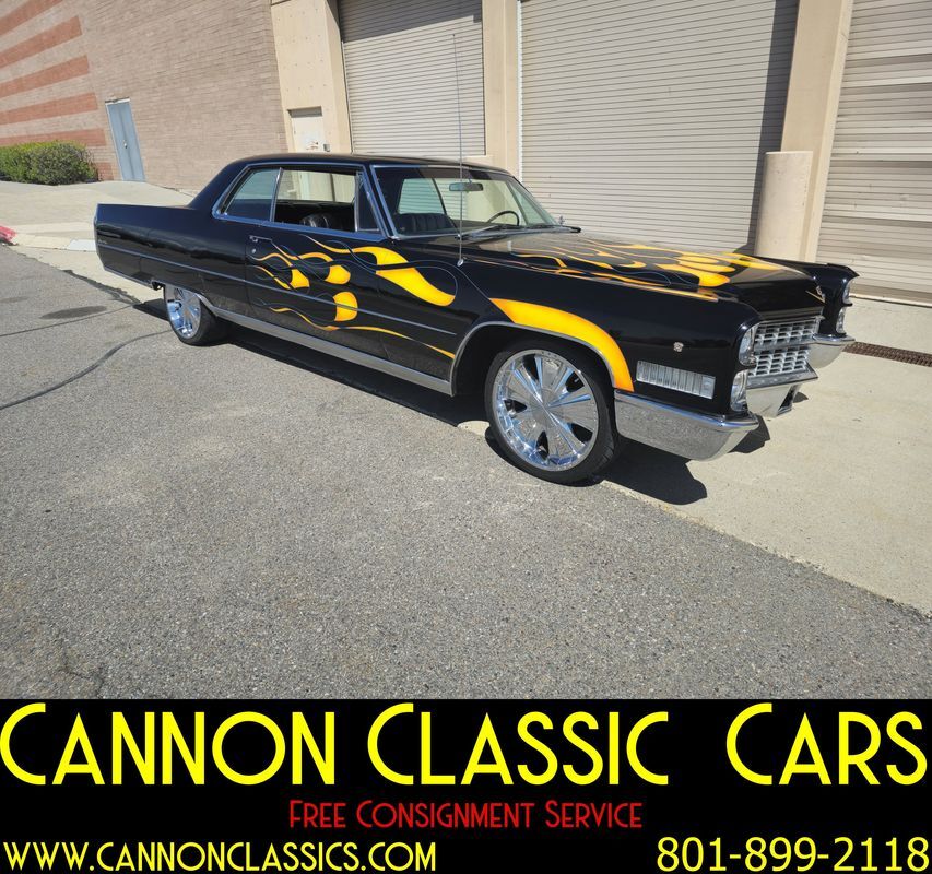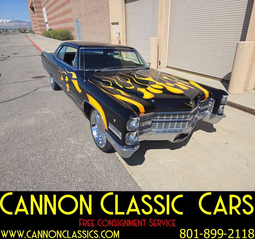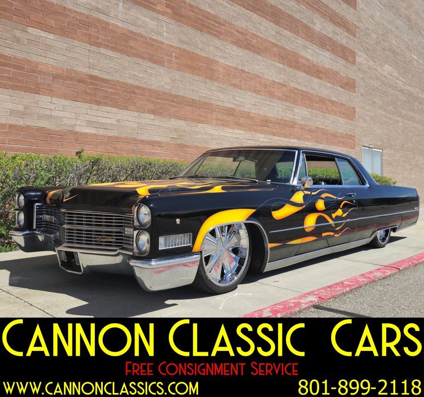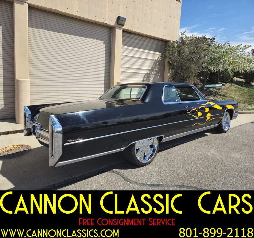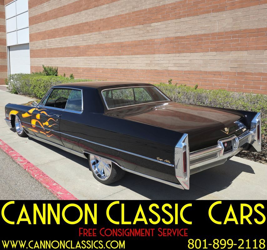 Step into the world of classic luxury with this unique 1966 Cadillac De Ville coupe. This striking 2-door coupe features hand-painted flames and rides on 21' chrome wheels. Equipped with an air suspension system both front and rear, controlled manually from inside the car, it promises a smooth and adjustable ride. Recently, the air bags and suspension lines were replaced for optimal performance.