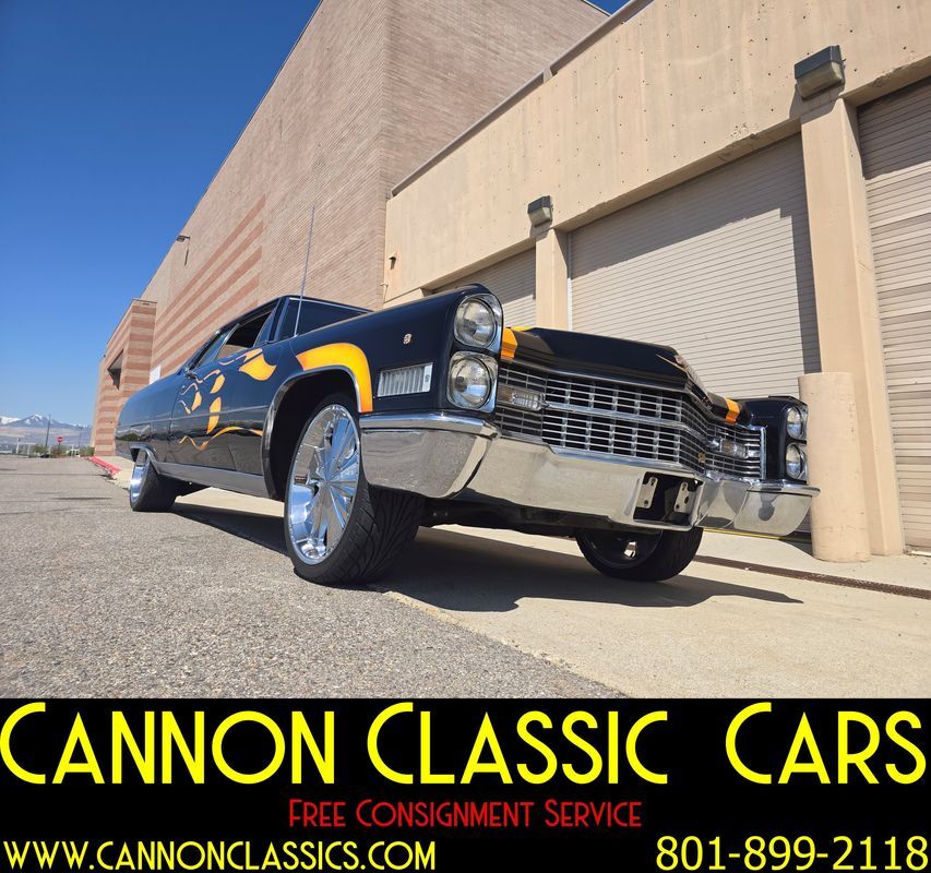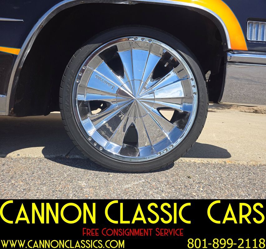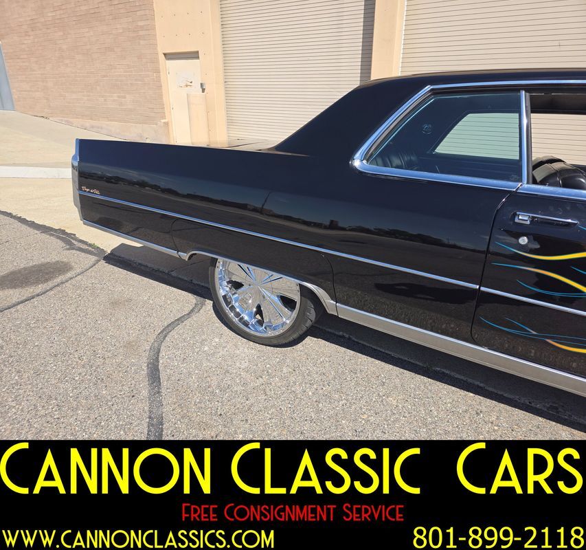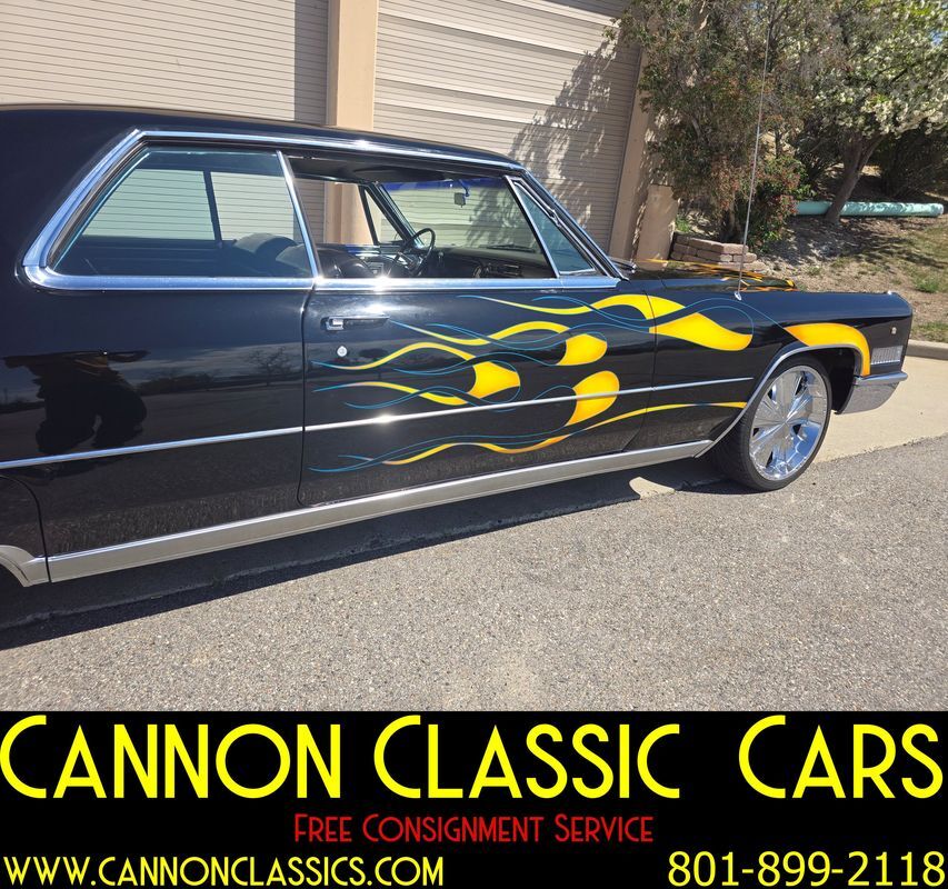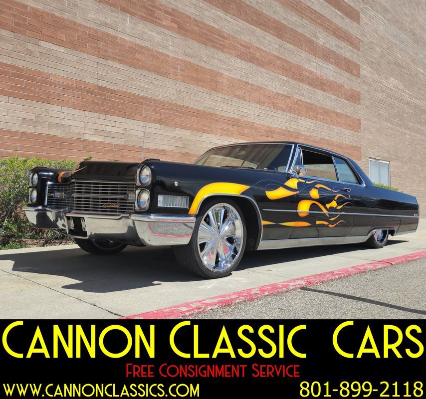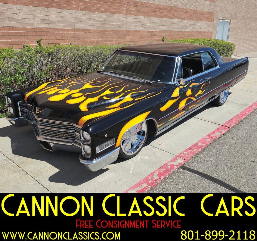 Step into the world of classic luxury with this unique 1966 Cadillac De Ville coupe. This striking 2-door coupe features hand-painted flames and rides on 21' chrome wheels. Equipped with an air suspension system both front and rear, controlled manually from inside the car, it promises a smooth and adjustable ride. Recently, the air bags and suspension lines were replaced for optimal performance.