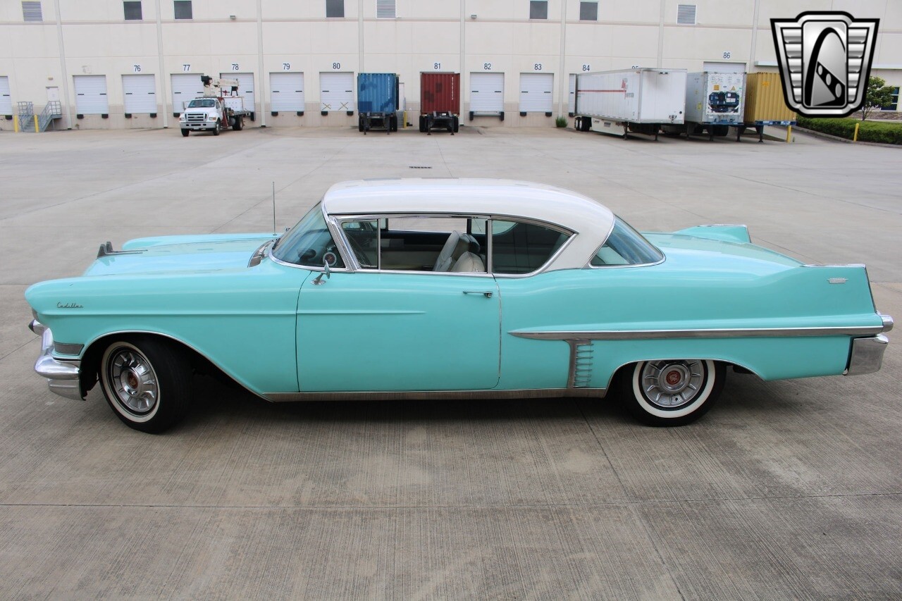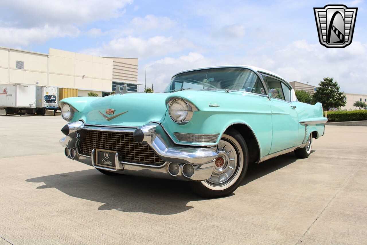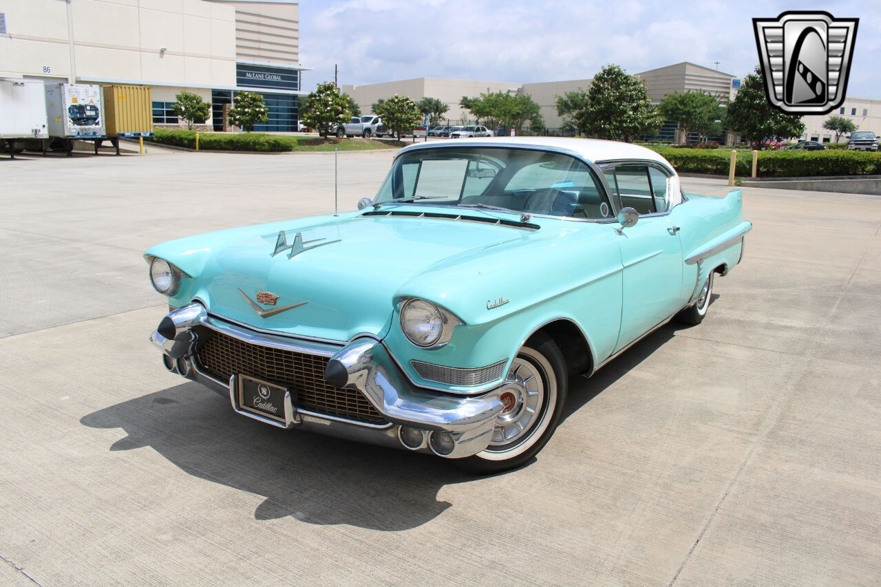 Gateway Classic Cars Houston Showroom is pleased to present this classic 1957 Cadillac Series 62 Hardtop Coupe. For 1957, Cadillac's new "X-braced frames" gave them a platform with increased stiffness and safety, as well as new sheetmetal designs that captured the hearts of luxury car buyers, which resulted in Cadillac outpacing Lincoln almost 4:1 in sales. This Series 62 hardtop coupe is finished in a muted color scheme: with its white top over the light green (think "Seafoam Green") body, it just oozes "vintage luxobarge" from every pore. To make up for the sedate colors, there is plenty of chrome to go around! And, when that massive front grille appears in someone's rearview mirror, it will encourage them to move over and let this bad boy pass. Powered by a 365 CID V8 that was rated at 300HP, along with a smooth-shifting automatic transmission, this Caddy is ready to motor down the highway. Inside, it has gray woven cloth seating surfaces, which are augmented by white vinyl trim for a nice contrast. The carpet and headliner are in decent shape, and the blue over gray over white door and dash color scheme adds a nice touch. This '57 Cadillac Series 62 comes with Power Brakes, Power Steering, and Power Windows, which all serve to make driving this yacht a pleasure. [ omitted ].