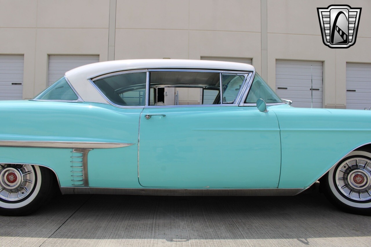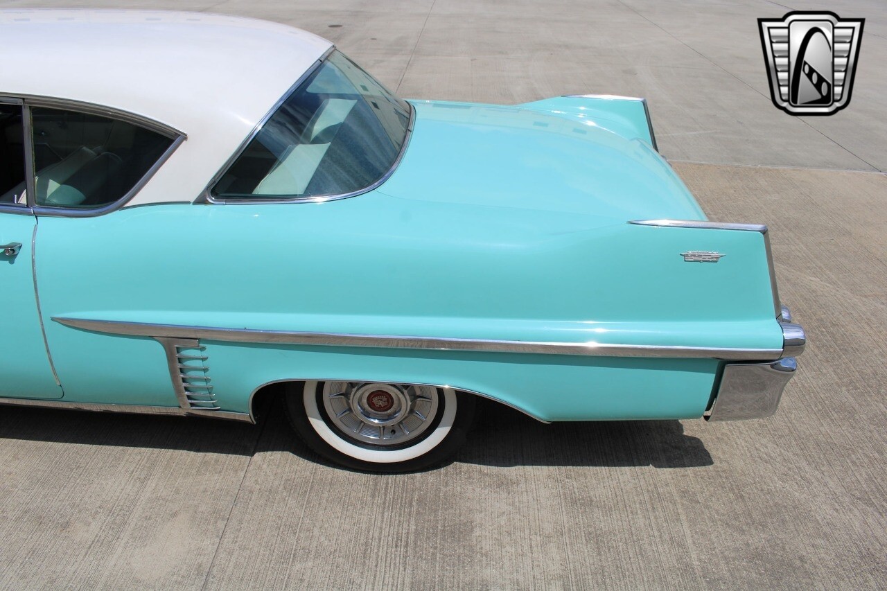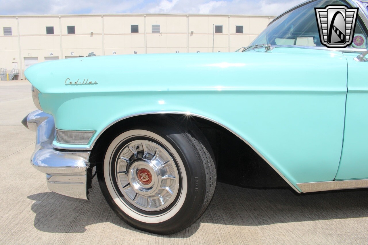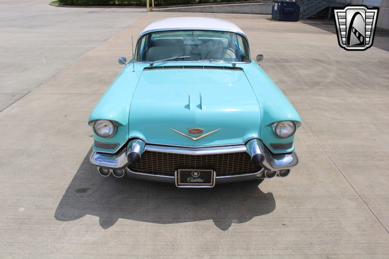 Gateway Classic Cars Houston Showroom is pleased to present this classic 1957 Cadillac Series 62 Hardtop Coupe. For 1957, Cadillac's new "X-braced frames" gave them a platform with increased stiffness and safety, as well as new sheetmetal designs that captured the hearts of luxury car buyers, which resulted in Cadillac outpacing Lincoln almost 4:1 in sales. This Series 62 hardtop coupe is finished in a muted color scheme: with its white top over the light green (think "Seafoam Green") body, it just oozes "vintage luxobarge" from every pore. To make up for the sedate colors, there is plenty of chrome to go around! And, when that massive front grille appears in someone's rearview mirror, it will encourage them to move over and let this bad boy pass. Powered by a 365 CID V8 that was rated at 300HP, along with a smooth-shifting automatic transmission, this Caddy is ready to motor down the highway. Inside, it has gray woven cloth seating surfaces, which are augmented by white vinyl trim for a nice contrast. The carpet and headliner are in decent shape, and the blue over gray over white door and dash color scheme adds a nice touch. This '57 Cadillac Series 62 comes with Power Brakes, Power Steering, and Power Windows, which all serve to make driving this yacht a pleasure. [ omitted ].