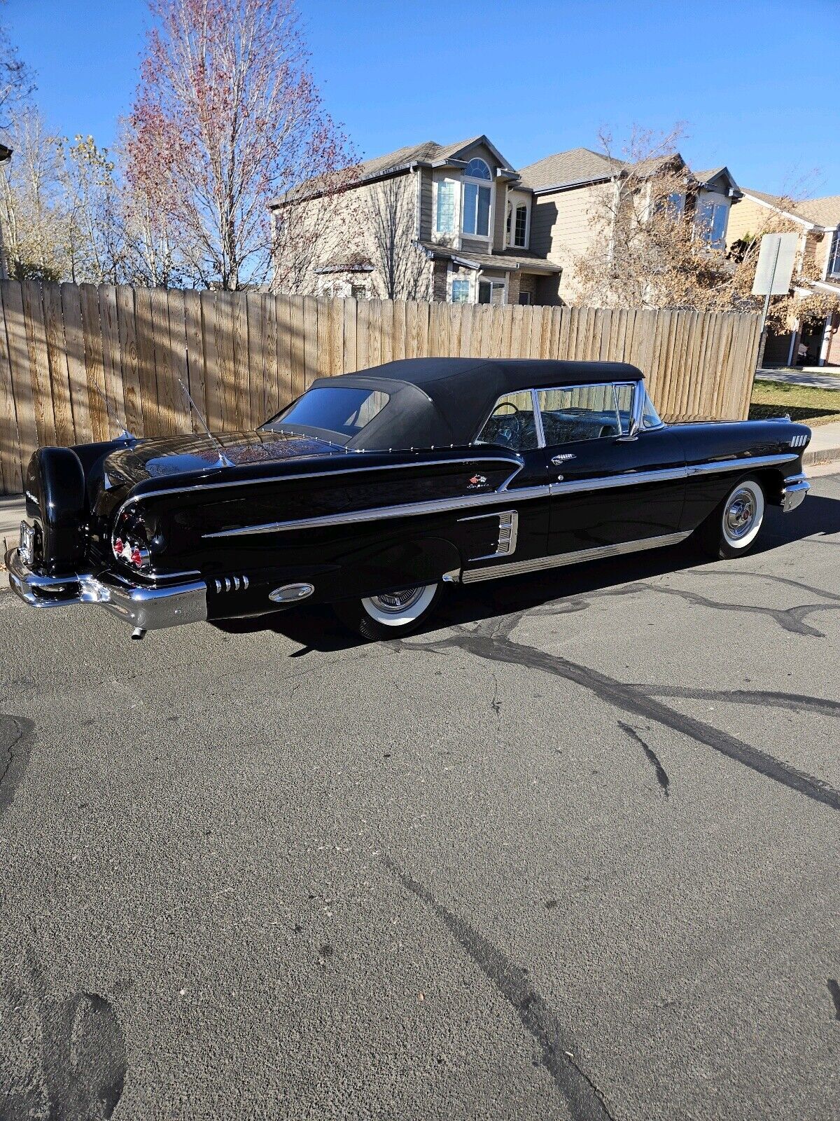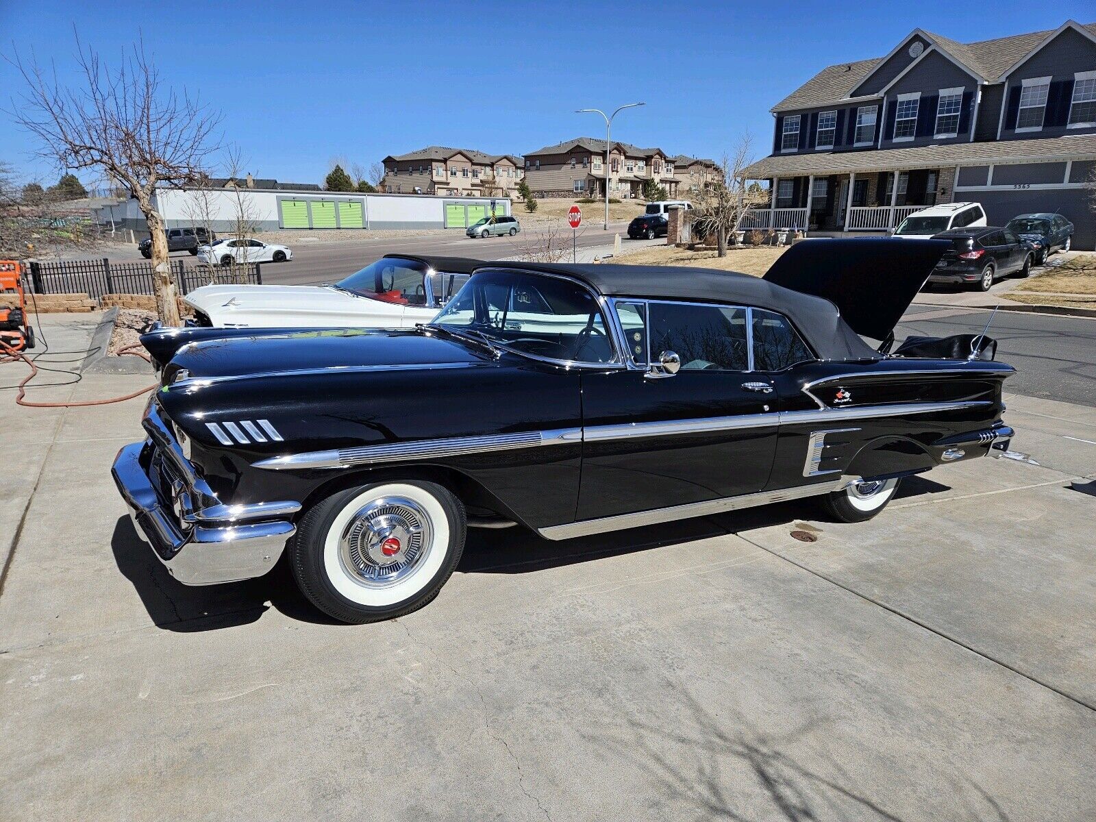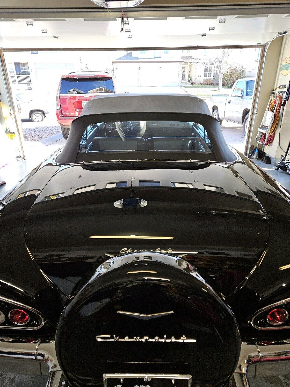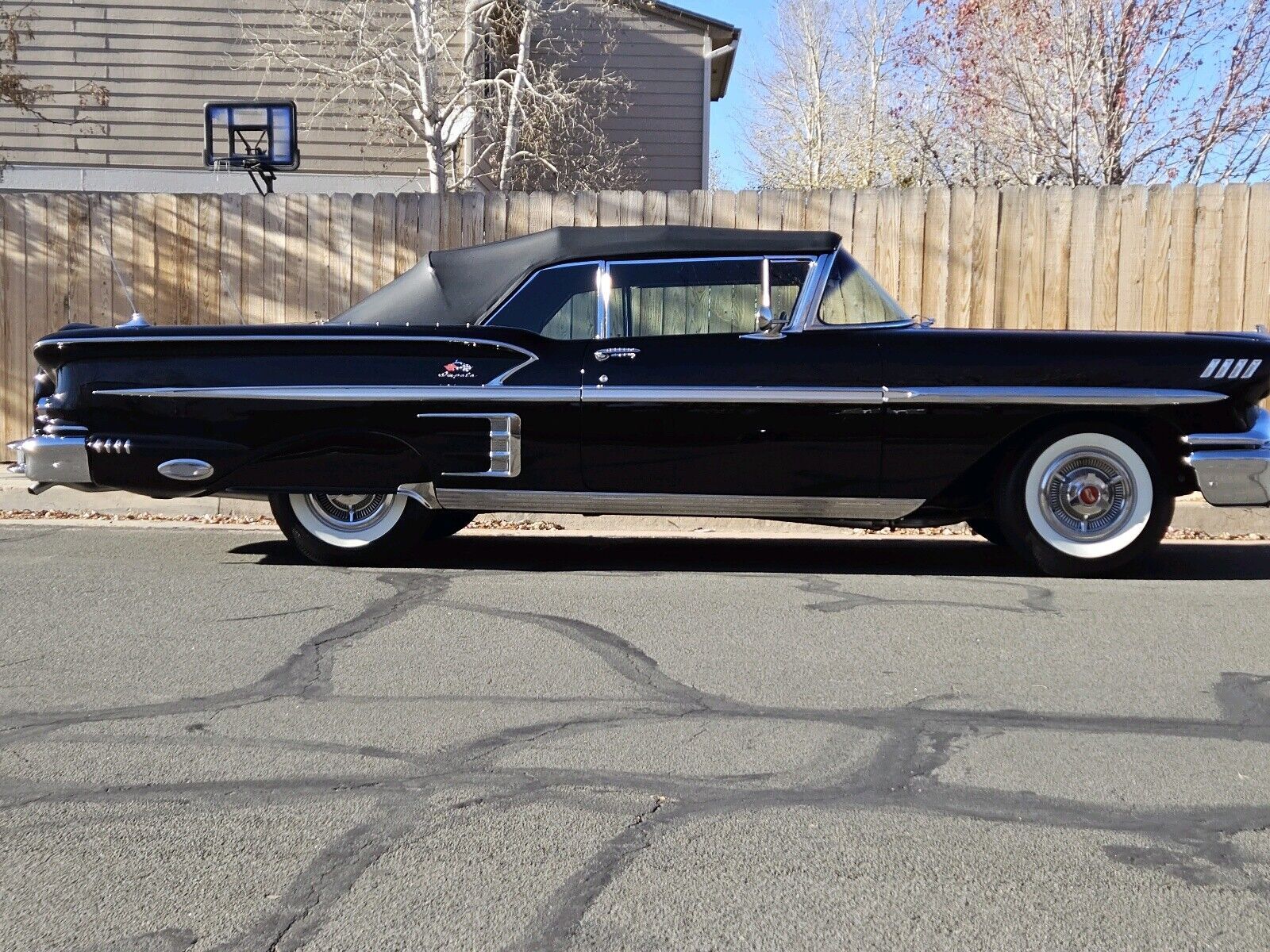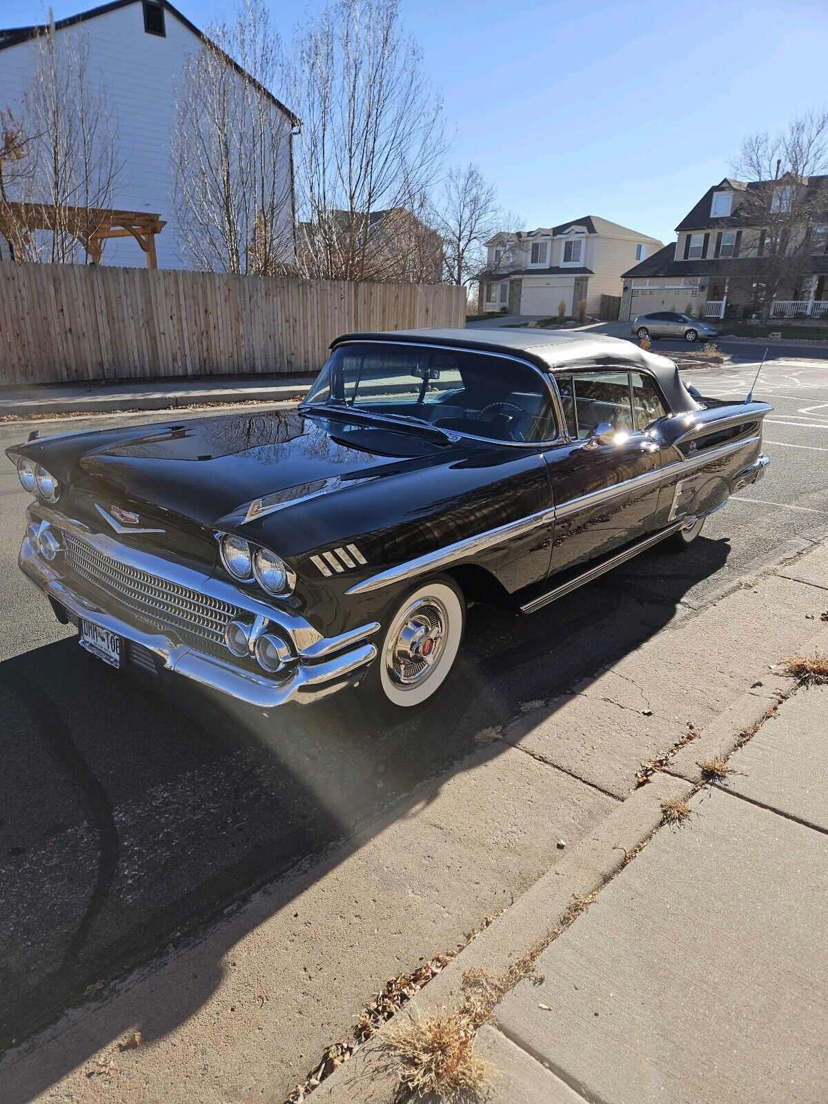 Beautiful rotisserie correct restoration on this real 1958 Impala Convertible with only 55,989 produced. Only 98 miles since restoration, this restoration was done a few years back. This beauty was put back to it original color 900A code in the gorgeous Onyx Black exterior, black convertible top. This Impala was restored to the GM original specifications. Rebuilt 348 ci V-8 with the correct tri-power, backup with the automatic turbo glide transmission. Has power steering, power brakes, power top, wonder bar radio. Correct in every way. National show winner. This vehicle is coming out of a collection that was stored a few years after previous owner passed. Did all the required services and maintenance. This vehicle was restored with all the original correct parts, with minimal reproduction parts. All glass is Ez eye glass. Original continental kit, teardrop fender skirts, beautiful mirror finish Tuxedo Black paint with the Tri-color Trim code- 807 gray, black, turquoise, material cloth and vinyl interior. 900 code car. Red oxide floorboards, new BF Goodrich tires. Factory 14" hubcaps with accessorie spinners. Beautiful bright work with one small ding on driver side front fender spear. Car will need carburetors dialed in and timed due to the Colorado altitude. Brakes need minor adjustment to linkage from brake pedal to power brake booster. Power brake booster was professionally Rebuilt. This car has over the money spent in the restoration of the asking price. This classic only has 98 miles since the restoration. Car has always been in a climate controlled environment with a car cover over it. Previous owner restored and did not get to finish and enjoy it. I got this vehicle to enjoy and fulfill a life time dream. It's unfortunate I don't have the time to enjoy this beautiful car and ready to part with it. This car is ready for a collector or car enthusiasts. This is the breakdown for this cowl tag