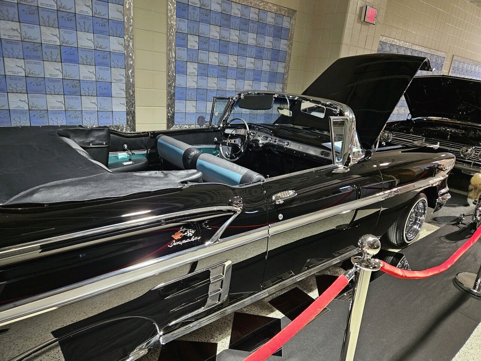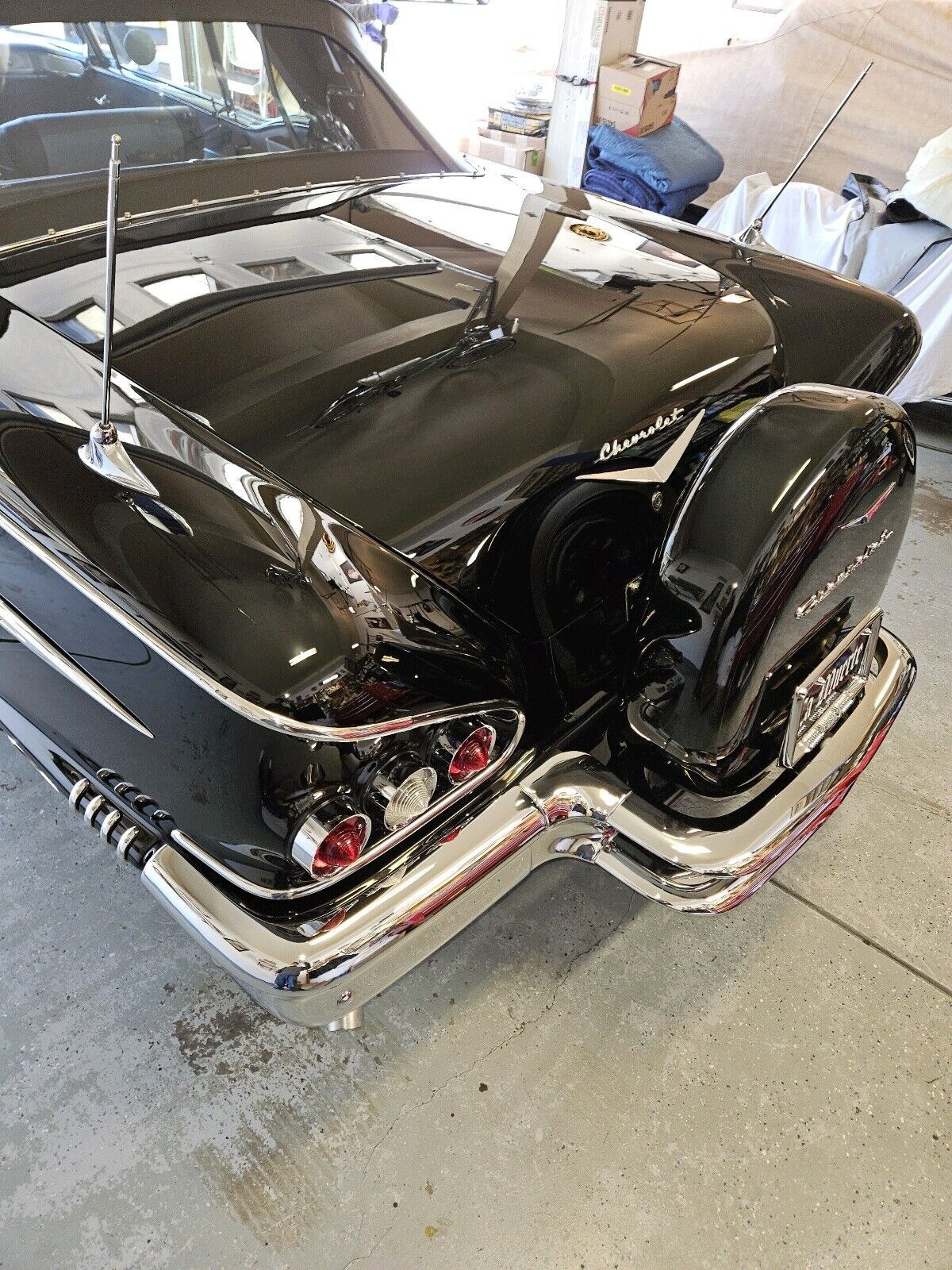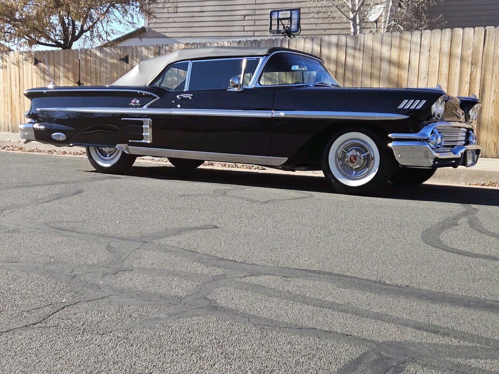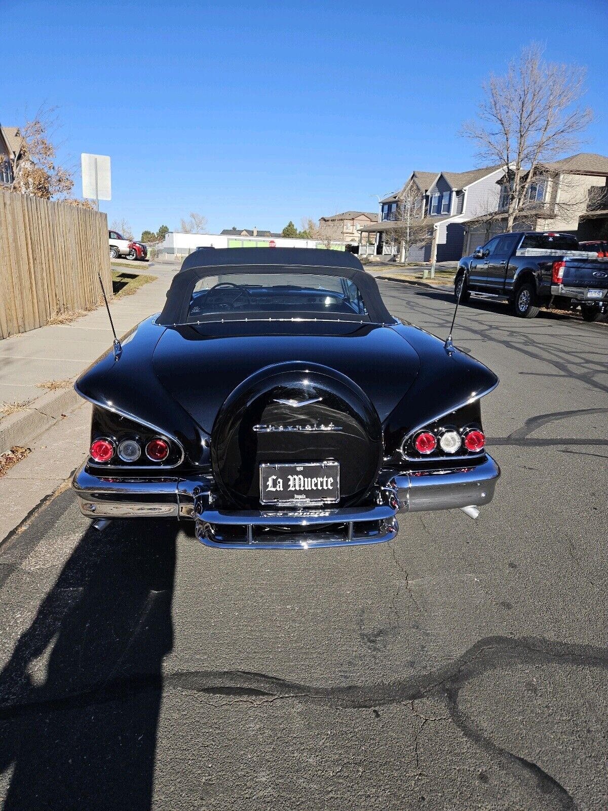 Beautiful rotisserie correct restoration on this real 1958 Impala Convertible with only 55,989 produced. Only 98 miles since restoration, this restoration was done a few years back. This beauty was put back to it original color 900A code in the gorgeous Onyx Black exterior, black convertible top. This Impala was restored to the GM original specifications. Rebuilt 348 ci V-8 with the correct tri-power, backup with the automatic turbo glide transmission. Has power steering, power brakes, power top, wonder bar radio. Correct in every way. National show winner. This vehicle is coming out of a collection that was stored a few years after previous owner passed. Did all the required services and maintenance. This vehicle was restored with all the original correct parts, with minimal reproduction parts. All glass is Ez eye glass. Original continental kit, teardrop fender skirts, beautiful mirror finish Tuxedo Black paint with the Tri-color Trim code- 807 gray, black, turquoise, material cloth and vinyl interior. 900 code car. Red oxide floorboards, new BF Goodrich tires. Factory 14" hubcaps with accessorie spinners. Beautiful bright work with one small ding on driver side front fender spear. Car will need carburetors dialed in and timed due to the Colorado altitude. Brakes need minor adjustment to linkage from brake pedal to power brake booster. Power brake booster was professionally Rebuilt. This car has over the money spent in the restoration of the asking price. This classic only has 98 miles since the restoration. Car has always been in a climate controlled environment with a car cover over it. Previous owner restored and did not get to finish and enjoy it. I got this vehicle to enjoy and fulfill a life time dream. It's unfortunate I don't have the time to enjoy this beautiful car and ready to part with it. This car is ready for a collector or car enthusiasts. This is the breakdown for this cowl tag