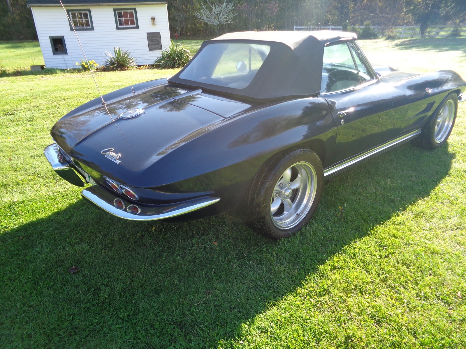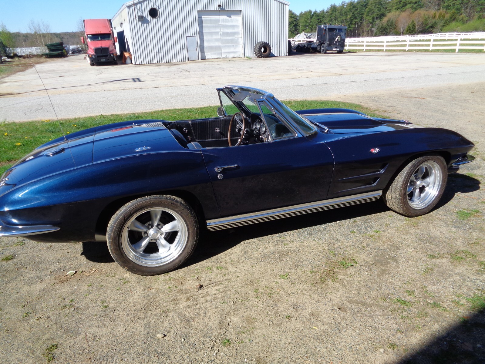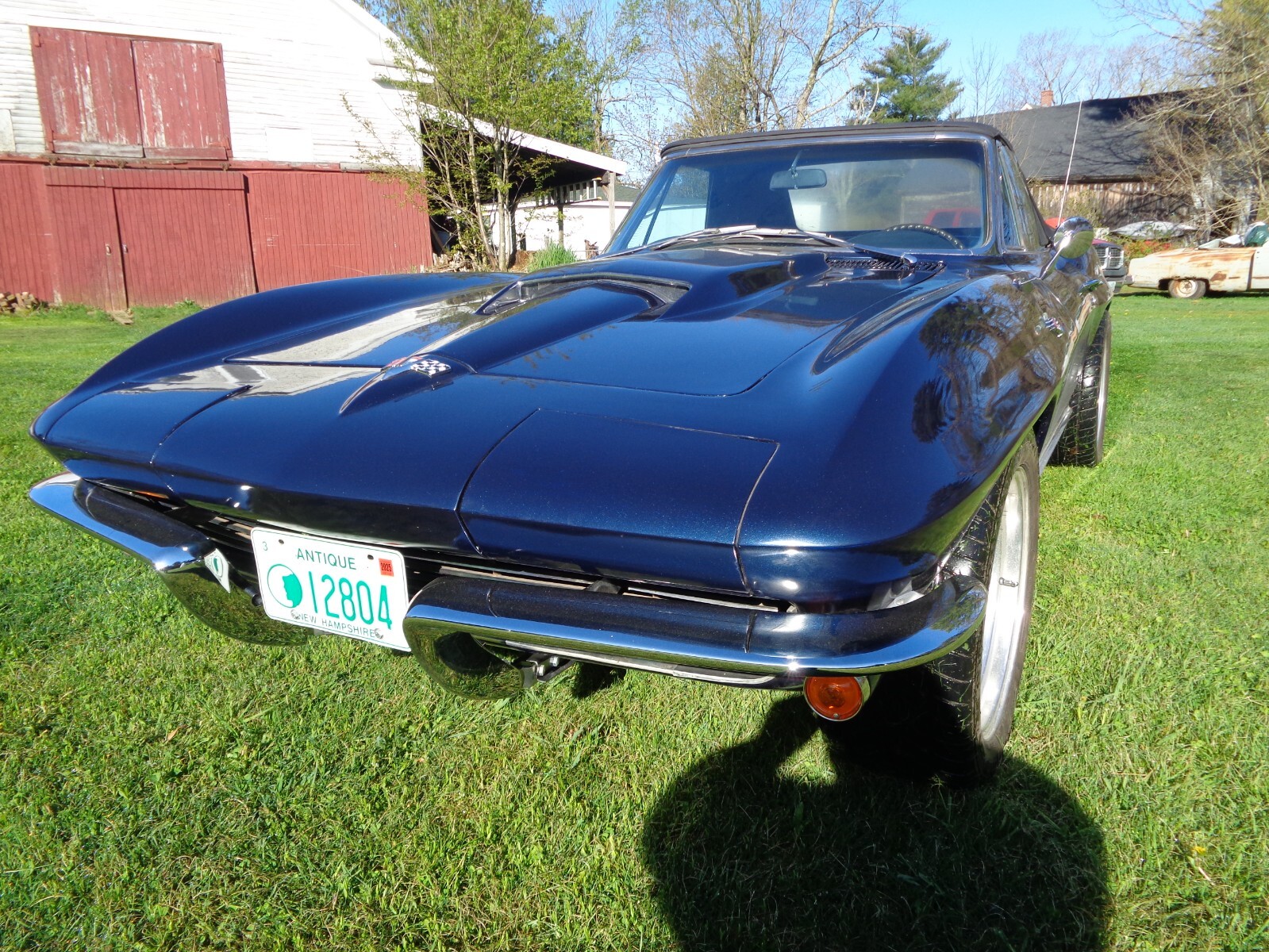 1964 Chevrolet Corvette 350 with factory 4 speed. The car has updated drive train, front single leaf, tubular control arms with Wildwood disc brakes. Rear end has single leaf spring, tubular control arms, duel master cylinder with power steering, complete new exhaust includeing exhaust manifolds. Car has a 74 Corvette 350 with 54000 original miles, all new gaskets, Munci 4 speed, new clutch, pressure plate and throw out bearing.. Nice straight body, new rocker moldings, front bumpers, complete new headlight system with both new engine and light harnesses.. New engine hoses, alternator with new both regulator and horn relays, emblems and front directional lights. Car has factory am/fm radio, nice original interior, good top and original color.. It has all the safety upgrades done to make it a much safer driver (front disc brakes, power steering, duel master cylinder and more)... I have been driveing this car every nice day and she goes great and I would drive it anywhere.. Any more questions call me at 603-617-6160