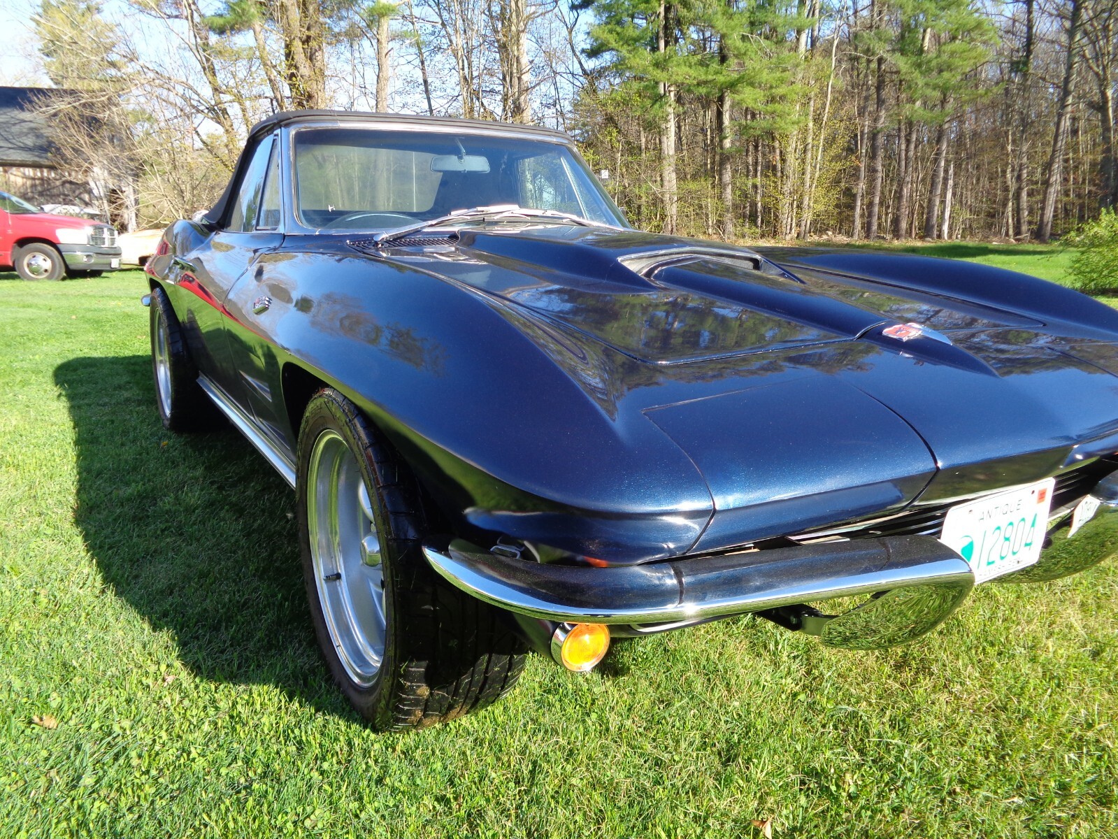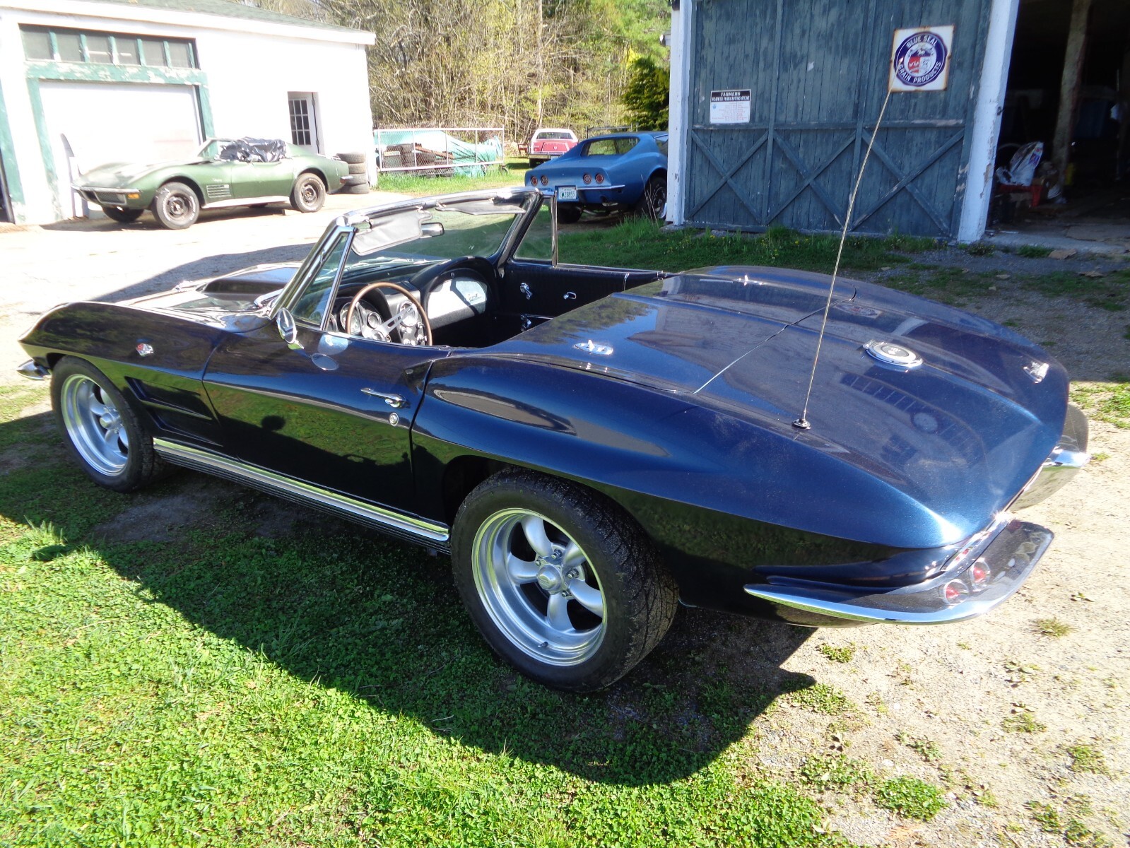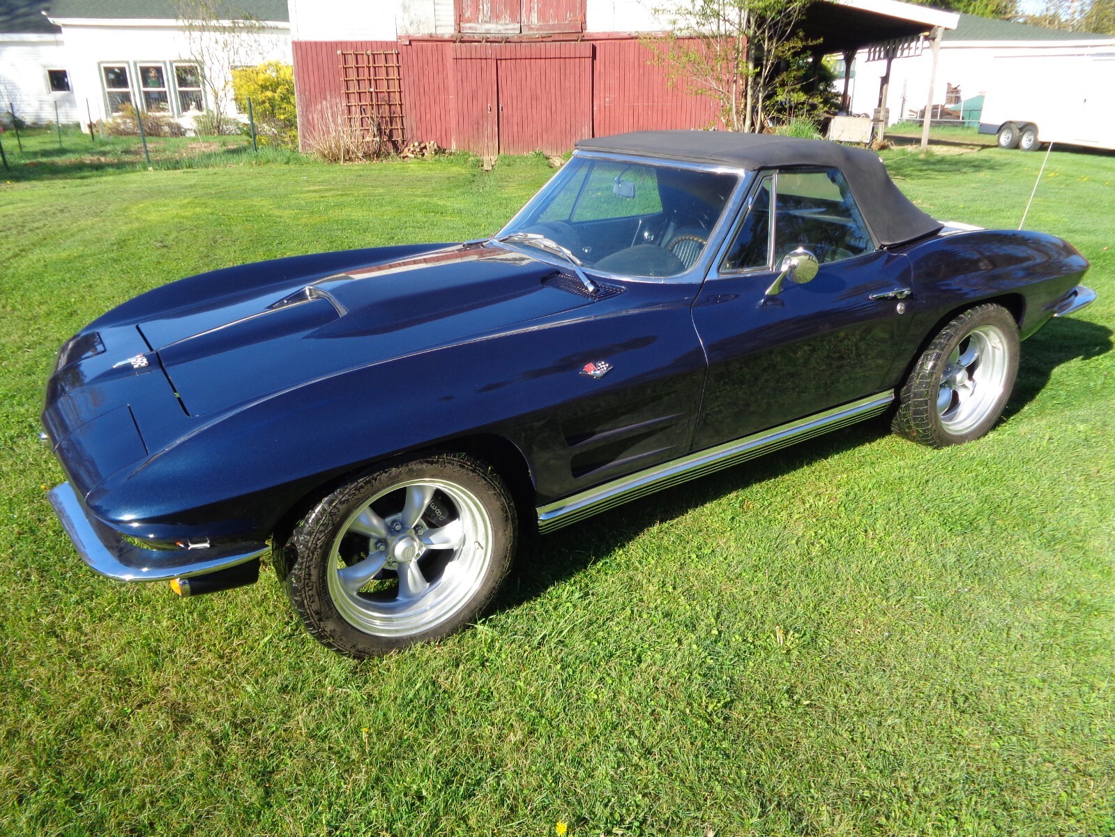 1964 Chevrolet Corvette 350 with factory 4 speed. The car has updated drive train, front single leaf, tubular control arms with Wildwood disc brakes. Rear end has single leaf spring, tubular control arms, duel master cylinder with power steering, complete new exhaust includeing exhaust manifolds. Car has a 74 Corvette 350 with 54000 original miles, all new gaskets, Munci 4 speed, new clutch, pressure plate and throw out bearing.. Nice straight body, new rocker moldings, front bumpers, complete new headlight system with both new engine and light harnesses.. New engine hoses, alternator with new both regulator and horn relays, emblems and front directional lights. Car has factory am/fm radio, nice original interior, good top and original color.. It has all the safety upgrades done to make it a much safer driver (front disc brakes, power steering, duel master cylinder and more)... I have been driveing this car every nice day and she goes great and I would drive it anywhere.. Any more questions call me at 603-617-6160