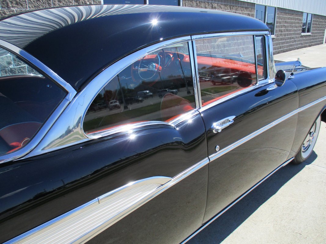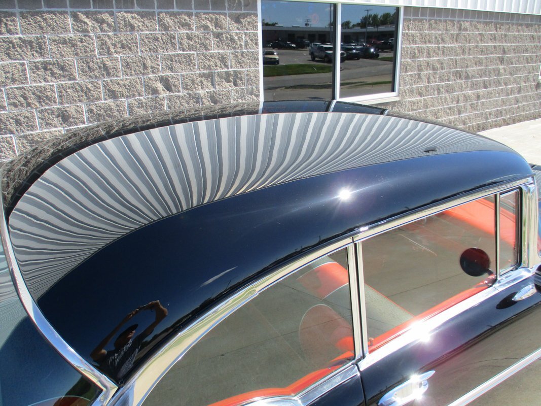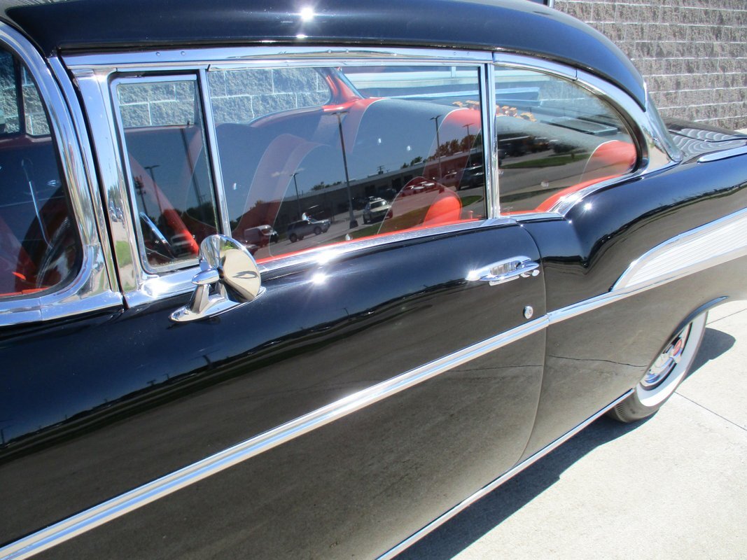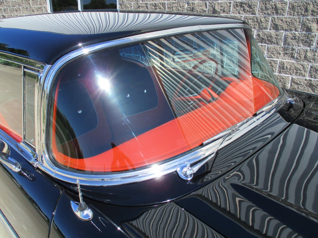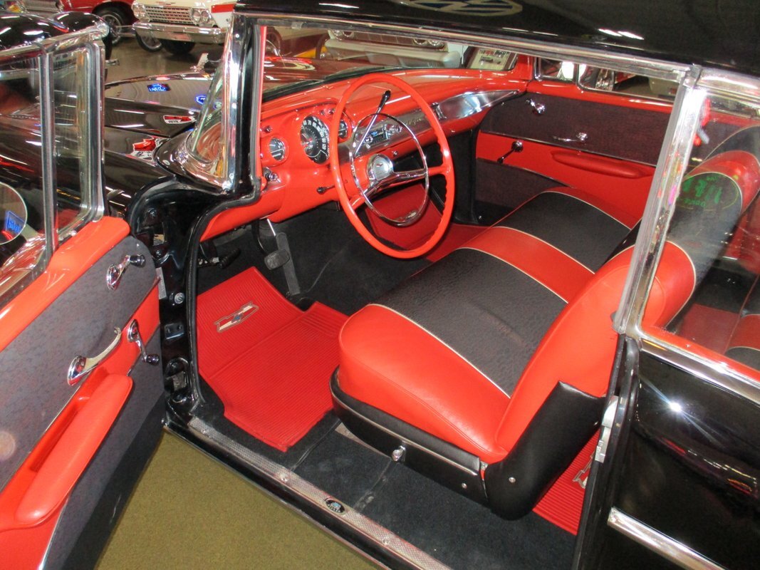 This is a very nicely restored 1957 Chevrolet Bel Air Sport Coupe, a classic American icon that epitomizes the golden era of automotive design. This striking example is finished in a sleek Black exterior, complemented by a beautiful Red and Black cloth interior. Originally built in Oakland, California, this Bel Air remained a California treasure until 1992, preserving its heritage and condition. Under the hood, it boasts a robust 283 cubic inch V8 engine with a four-barrel carburetor, paired with a smooth two-speed Powerglide automatic transmission.