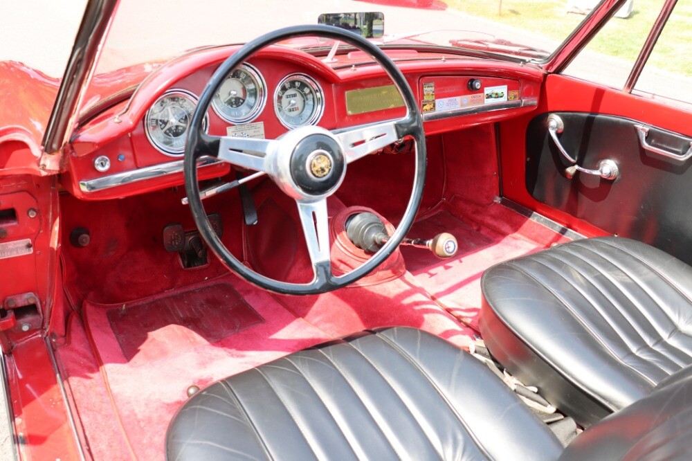 This 1959 Alfa Romeo Giulietta Spider wears a very nice older restoration. Red with black interior. An attractive car that runs and drives well. Out of long term ownership. It started life as a 1300 normal example but currently has a later 1600 motor installed with dual Weber carburetors and 5-speed gearbox. A welcome upgrade in terms of performance and drivability. Very presentable paint, chrome and a clean interior. An overall strong driver quality example. This is an excellent opportunity to acquire what many consider to be one of the most fun, attractive, and drivable sports cars of the 1960s.