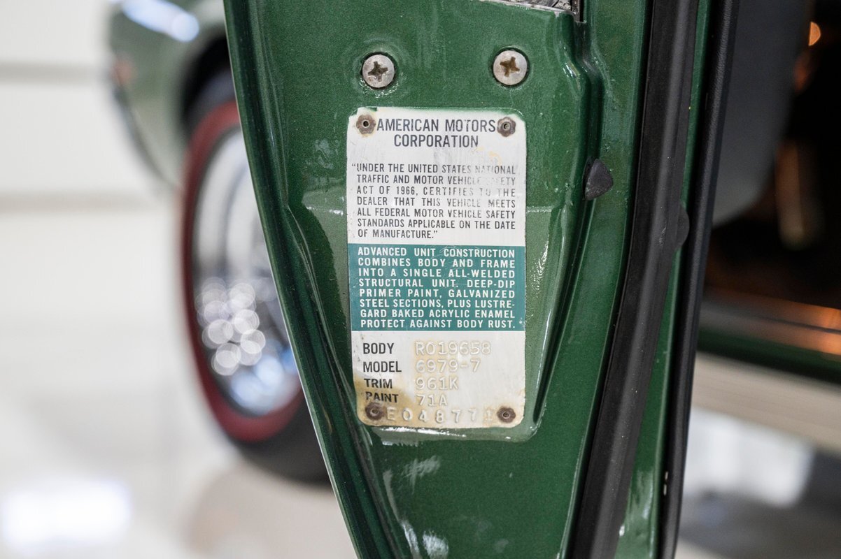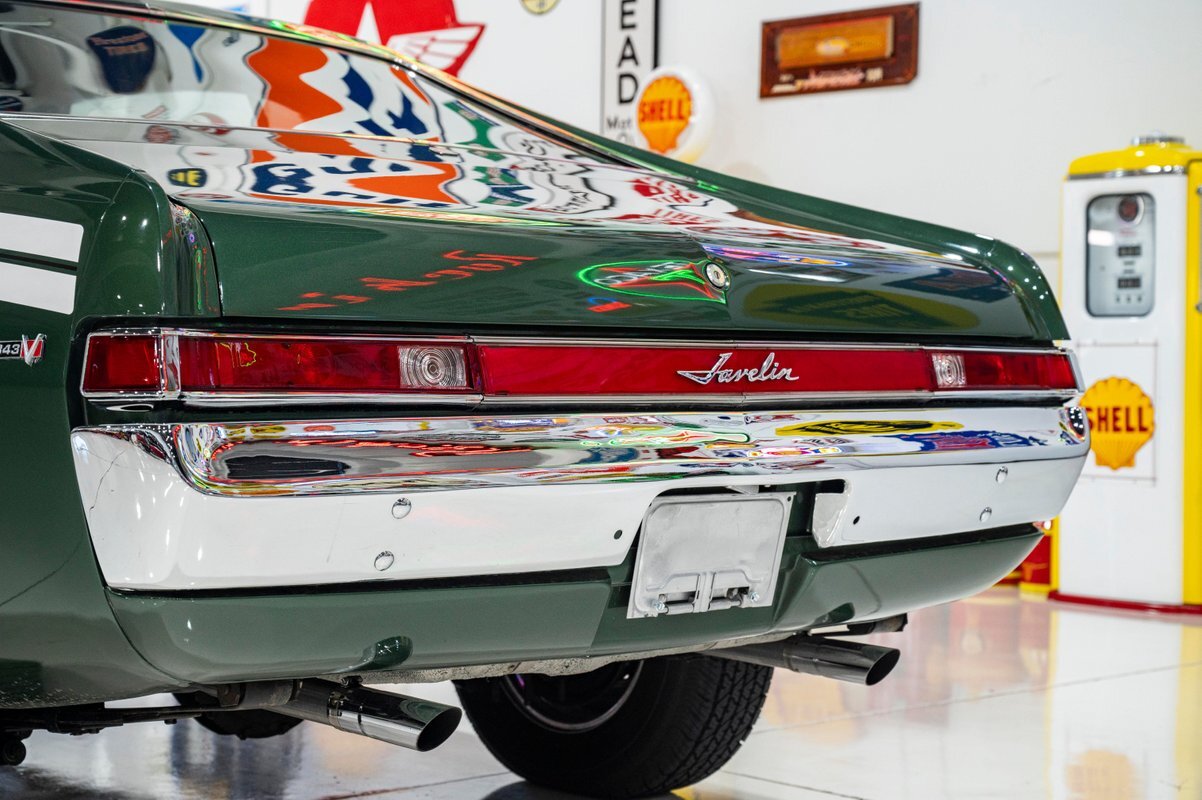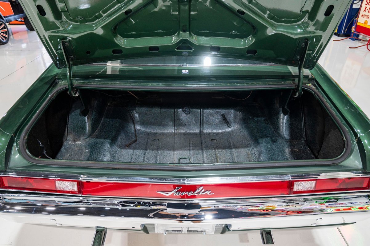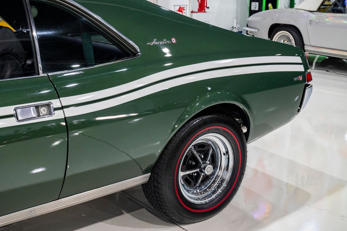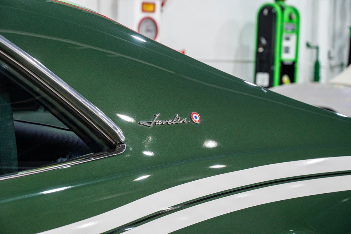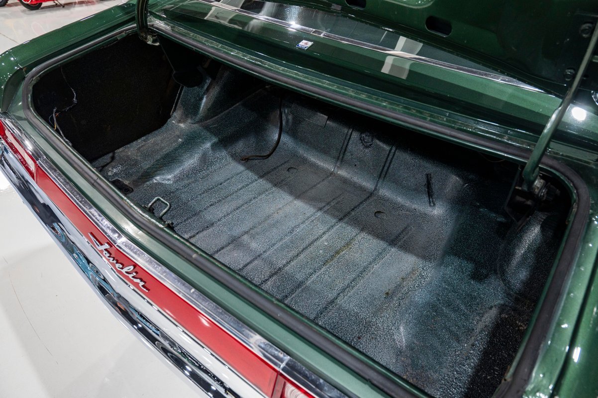 The comprehensive restoration of this highly original car was completed just 100 miles ago. The original engine, carb, intake and exhaust manifolds were all painstakingly rebuilt. Even the air cleaner is original, and the new, Coker 15-inch Redline tires means this is a drivable classic that looks showroom original. Hard to find an original Javelin as authentic as this one that also looks fantastic inside and out, top to bottom, front to back.